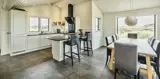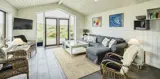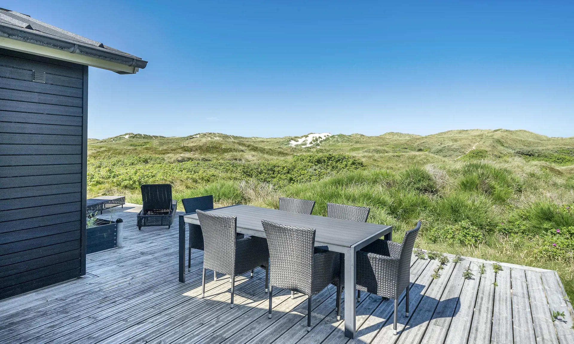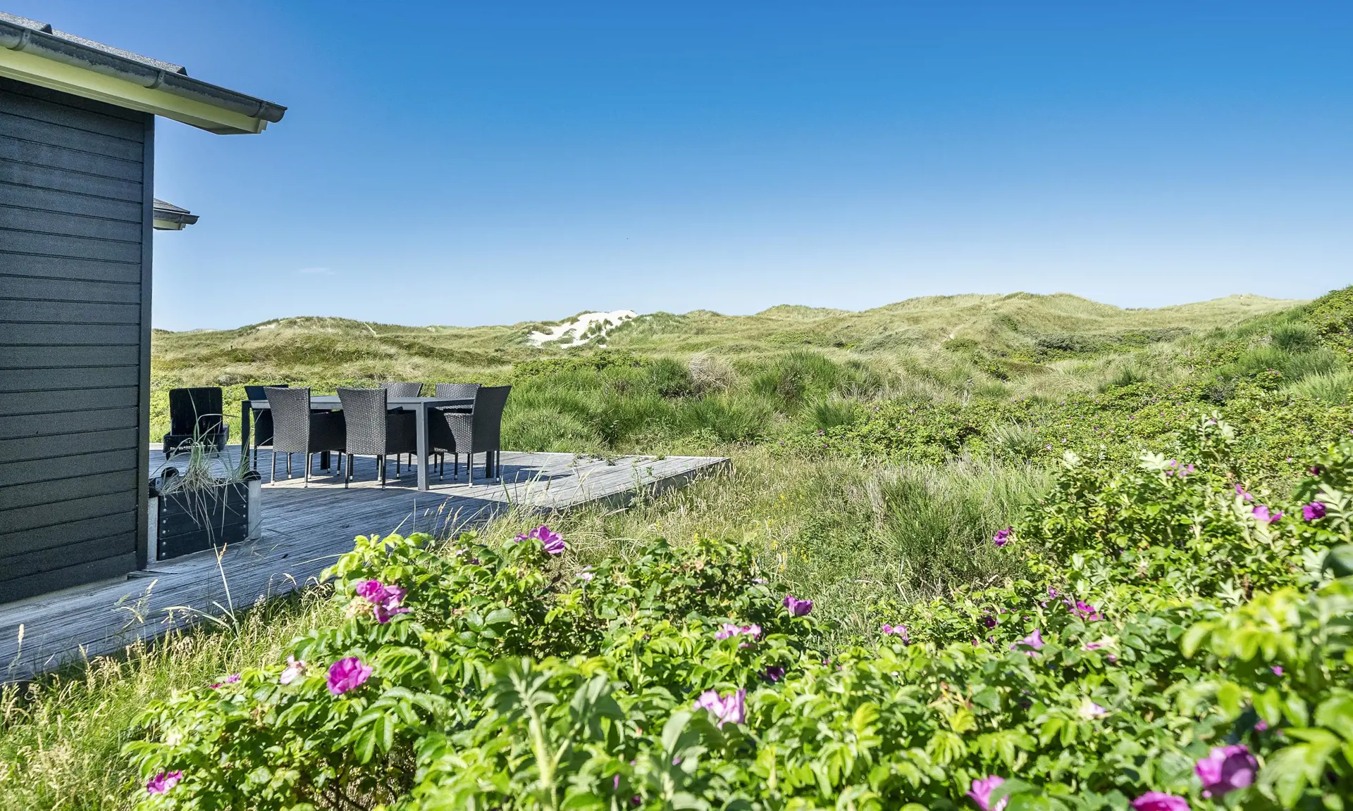 In 2016 neu gebautes Energiesparhaus in Mitten der Dünenlandschaft gelegen und nur 75 Meter vom Strand entfernt. Der Fußweg der am Haus vorbeiführt, führt Sie direkt zum Strand. Das Ferienhaus bietet für 8 Personen reichlich Platz. Der Blick auf die wunderschöne Dünenkette ist von jedem Fenster aus möglich. Von der Terrasse aus, haben Sie einen wundervollen Panoramablick über die gesamte Dünenkette und das Ferienhausgebiet. Rundum das Ferienhaus befindet sich die Terrasse, ein kleiner Teil davon ist auch überdacht. Das ganze Ferienhaus ist mit einer Fußbodenheizung ausgestattet. Alles im Hauses ist farblich abgestimmt und passt wundervoll zusammen und hat dadurch seinen eigenen Stil. Das Wohnzimmer ist geschmackvoll eingerichtet und großzügig mit dem Essbereich und der Wohnküche verbunden. Es ist hell und freundlich. Das Fernsehprogramm empfangen Sie über Stofa, daher sind es nur 5-8 deutsche Kanäle die Sie empfangen können. Der Kamin im Wohnzimmer spendet eine wohlige Wärme und gleichzeitig eine tolle Atmosphäre. Die Küche ist mit einem Herd mit Cerankochfeld, einem Backofen, einer Mikrowelle, einer Quooker, einer Geschirrspülmaschine und einer Kühl- und Gefrierkombination ausgestattet. An dem breiten Tresen der Küche befinden sich drei nette Barhocker. Von hier können Sie dem Koch bei seiner Arbeit zusehen. Es gibt 2 Bäder im Haus. Das eine größere Bad verfügt über ein WC, ein Handwaschbecken, eine Dusche, einer Sauna mit großen Glaselementen und dem Whirlpool. Das zweite kleinere Badezimmer hat ein WC, ein Handwaschbecken und eine Dusche. Desweiteren ist die Waschmaschine mit integriertem Trockner hier untergebracht. Vier Schlafzimmer: DB + DB + 3/4 DB + 3/4 DB. Bei einem der Doppelbetten befindet sich auf dem Boxerbett eine Topmadratze im Mass von 180 cm. Es befindet sich ein Internetanschluss (W-Lan) im Ferienhaus. Ein ekstra Schuppen steht für Sie auch bereit. Rauchen ist nicht erlaubt. Katzen sind auch nicht erlaubt. Es ist auch nur ein Hund erlaubt, der aber nicht auf die Möbel und in die Betten darf. Eine Aussendusche befindet sich auch auf einem Terrassenbereich, die dann in den Sommermonaten genutzt werden kann. Bei diesem Ferienhaus fallen Zusatzkosten für den Wasserverbrauch an. Das Ferienhaus ist 2016 erbaut.
