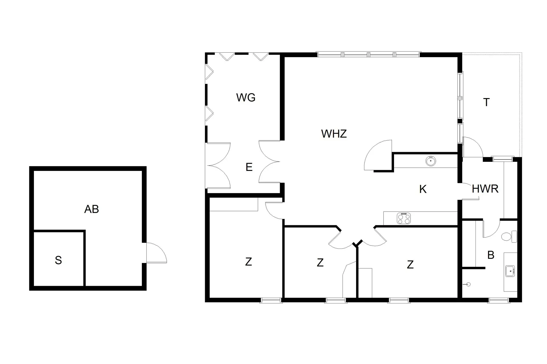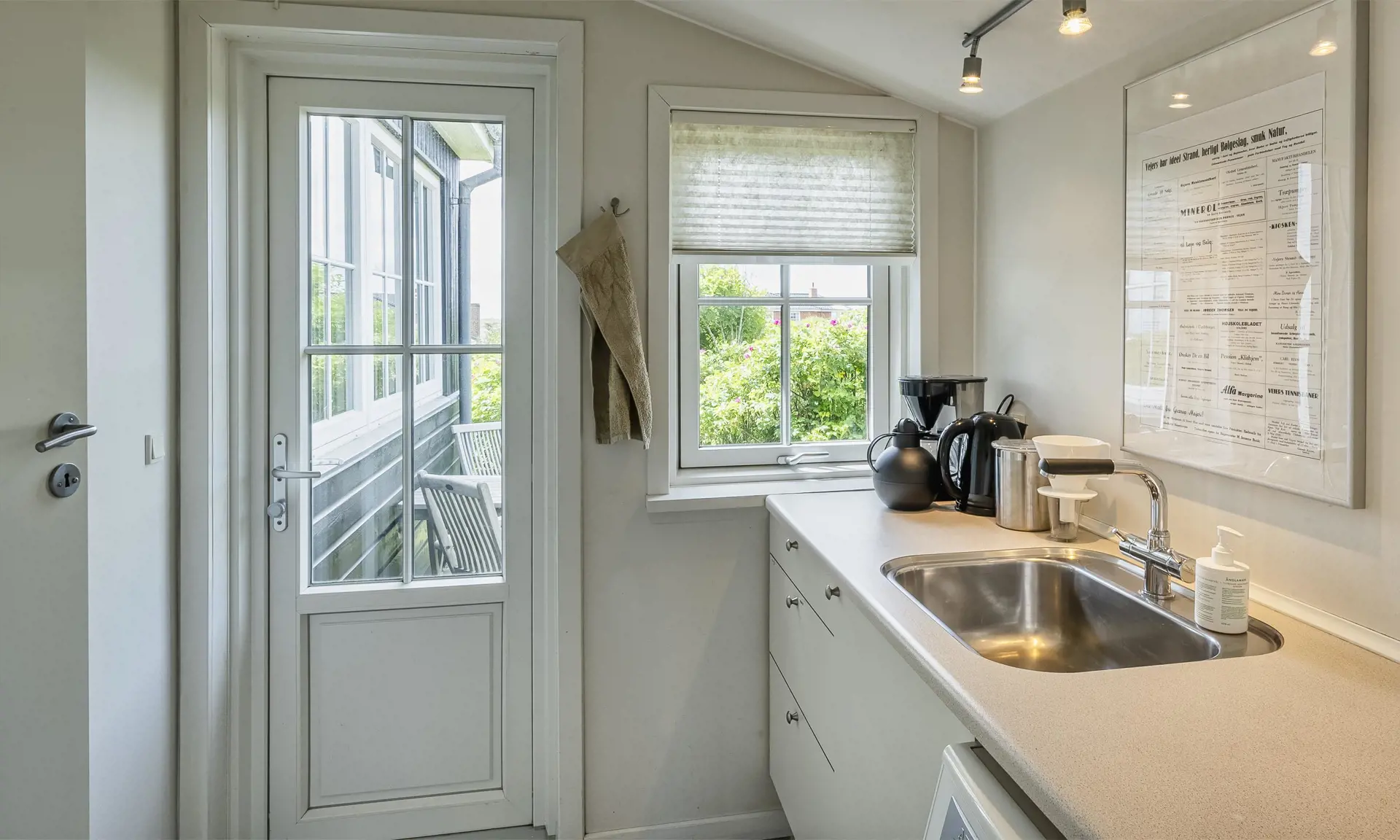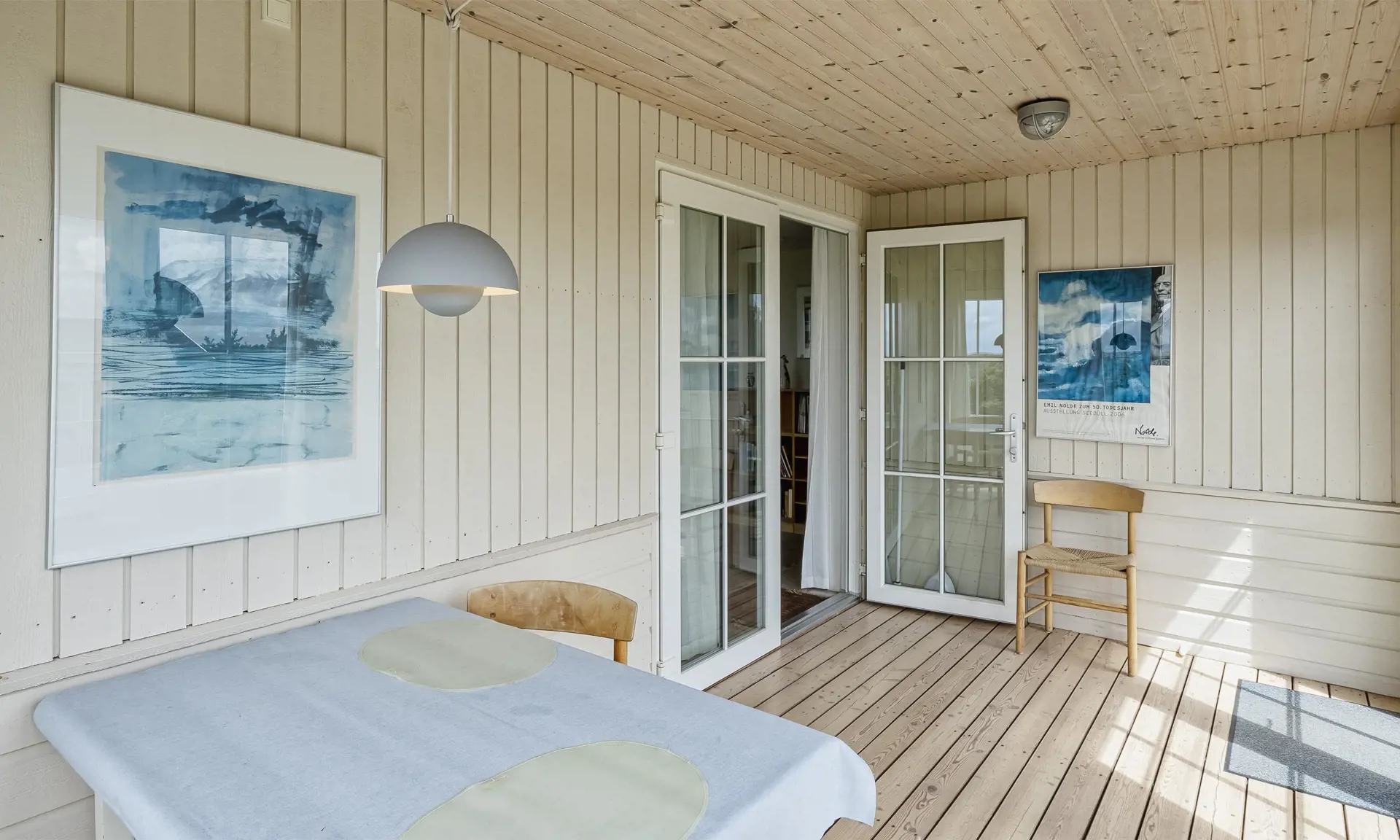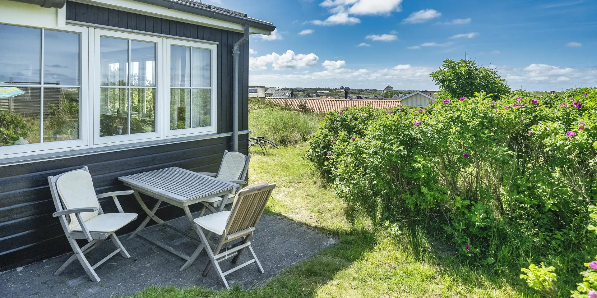 Auf einer Düne liegt dieses kleine dänisch eingerichtete Ferienhaus für 6 Personen und nur 150 Meter vom Strand entfernt. Das Ferienhaus liegt völlig ungestört und hier haben Sie vom Wohnzimmer aus einen wundervollen Meeresblick. Der Wintergarten, der noch mit schönen Holzdielen belegt ist, hat grosse Schiebetüren, wobei eine schöne warme Brise in lauer Sommernacht durch das Haus fluten kann. Die Wohnkücke ist mit dem grosszügige Wohn- und Esszimmer integriert. Vom Wohnbereich aus, kann man das Feuer im Kamin lodern sehen. Dies bringt eine wohlige Wärme ins Ferienhaus. Es befindet sich eine Warmepumpe im Ferienhaus. Mit dieser Warmepumpe haben sie die Möglichkeit die Stromkosten zu senken, denn die Warmepumpe ist energiesparend. Deutsche Fernsehprogramme werden über eine Parabol-Antenne empfangen sowie auch Chrome cash. Da ist ein Grammofon. Das Fernsehgerät hat einen HDMI-Empfang für einen Computer und Drucker. Die offene Wohnküche verfügt über einen Herd mit Cerankochfeld, einem Backofen, einen Geschirrspüler und einem Kühlschrank. Ein kleiner zusätzlicher Gefrierschrank befindet sich im Schuppen. 3 Schlafzimmer: DB + DB + 2B. Hinter dem Essbereich gelangen Sie durch eine Tür zum Hauswirtschaftsraum und dem Ausgang zur Terrasse. Die Waschmaschine befindet sich hier im Hauswirtschaftsraum. Von hier gelangen Sie dann auch in das Badezimmer, mit Dusche, WC, und einem Handwaschbecken. Hinter dem Haus befindet sich dann die Terrasse und eine gemütliche Sitzgruppe zwischen den Hagebutten-Sträuchern. Über einen weiteren Auskuck können Sie das Meer erblicken und auch über einen Teil des Ferienhausgebietes. Desweiteren befindet sich ein Gästehaus auf dem Grundstück das mit einer Sauna mit ca. 17 qm, dem Trockner und als Abstellraum gedacht ist. Zusätzliche befindet sich dort eine aussen gelegene Dusche (nur mit kaltes Wasser). Rauchen ist nicht erlaubt. Internetanschluss (W-Lan) auch verfügbar. Es sind max. 2 Haustiere erlaubt.Es stehen den Gästen 2 Fahrräder am Ferienhaus zur Verfügung, wobei wir keine Haftung übernehmen bezüglich der Benutzung und Brauchbarkeit. Ferienhaus ist 2007 erbaut worden.