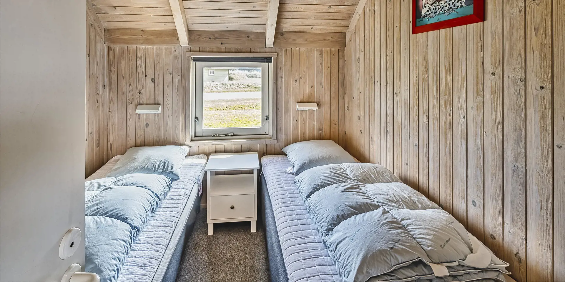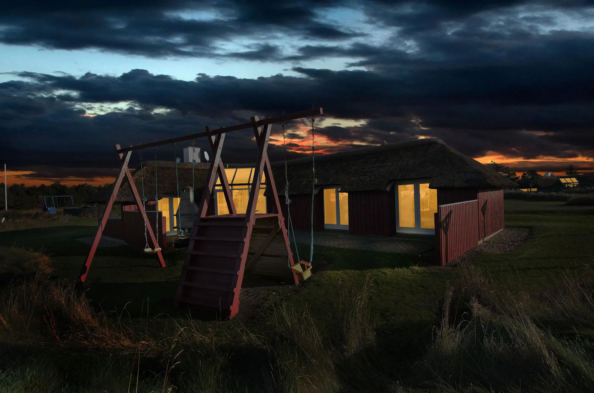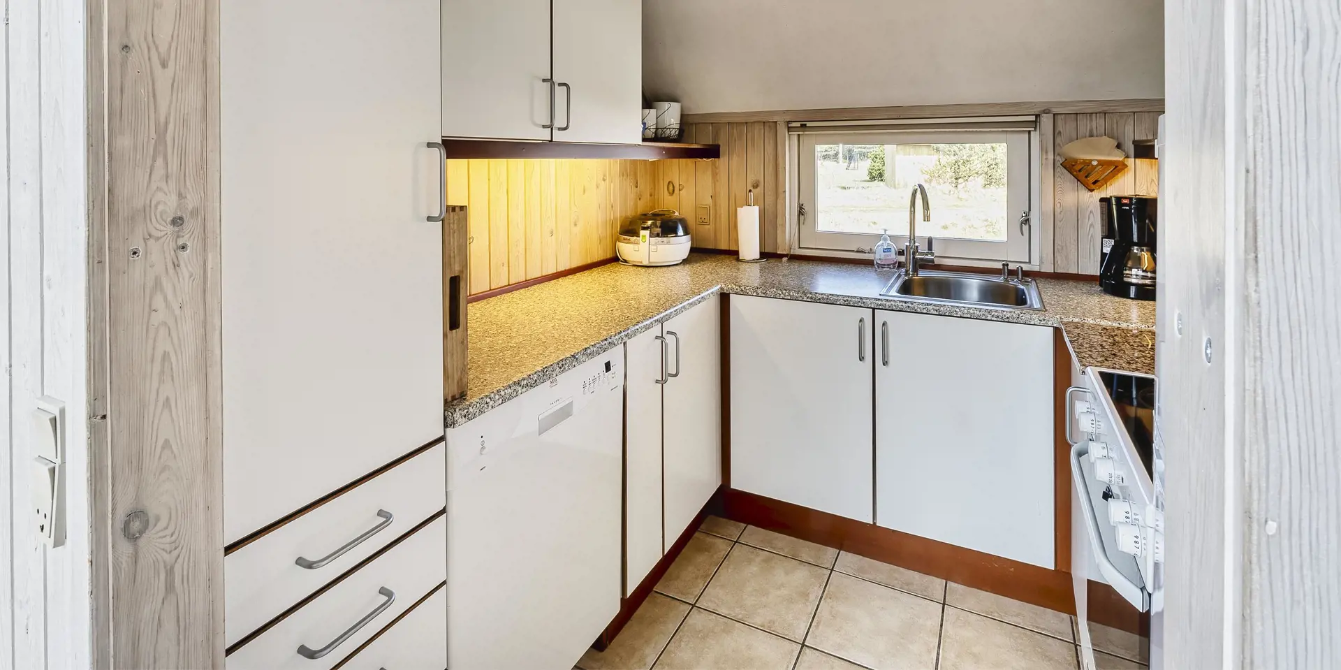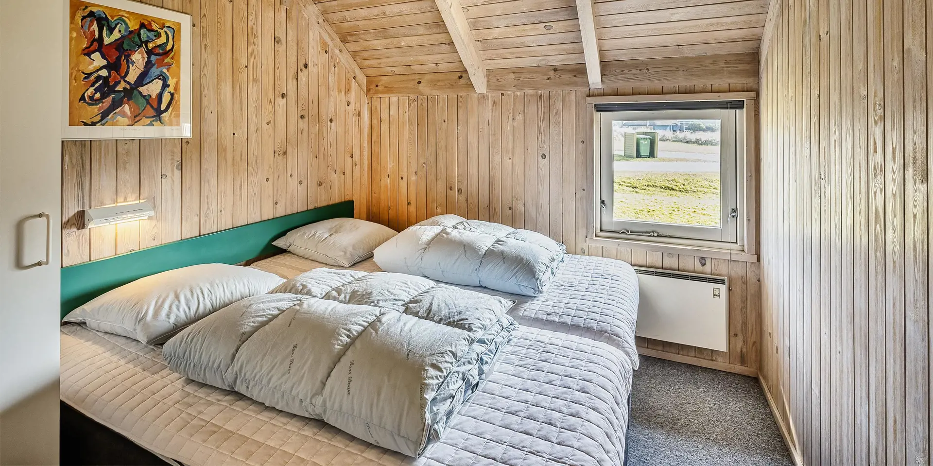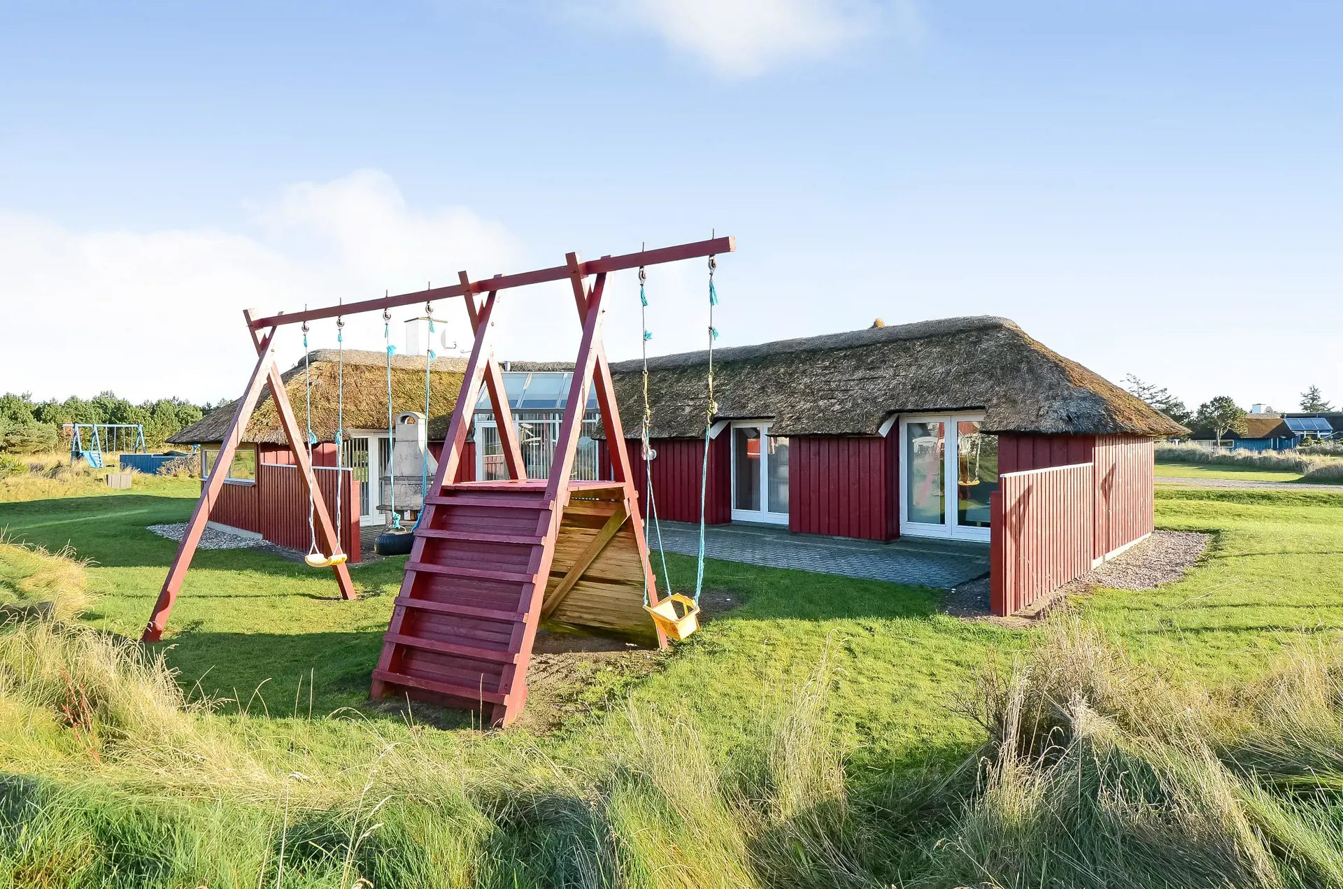 Geschmackvolles Ferienhaus für 8 Personen auf einem grossen mit gras- bewachsenen Grundstück an dem Wald und dem Fahrradweg zu Grærup Strand gelegen. Von dem Waldgebiet kommen die Hirsche und das Rotwild bis an die Ferienhäuser ran, um sich von den Gästen mit Obst und Gemüse verwöhnen zu lassen. Auf der grosszügigen Terrasse befindet sich ein Stein-Aussengrill, den Sie nicht nur zum Grillen, sondern auch als Lagerfeuerstelle für gemütliche Sommerabende nutzen können.Das Ferienhaus verfügt über ein gemütliches Wohnzimmer mit heller Holzvertäfelung, im Ferienhaus-Stil, und über einem eingebauten Kamin. Es befindet sich eine Warmepumpe im Ferienhaus. Mit dieser Warmepumpe haben sie die Möglichkeit die Stromkosten zu senken, denn die Warmepumpe ist energiesparend. Das Fernsehprogramm empfangen Sie über Stofa, daher sind nur 5-8 deutsche Kanäle zu empfangen. Über eine kleine Stufe vom Wohnzimmer gelangen Sie in den offenen Essbereich, der durch das Oberlicht sehr hell und freundlich erstrahlt. Die Küche ist mit einem Herd mit Cerankochfeld, einem Backofen, eine Mikrowelle, einer Geschirrspülmaschine und einer Kühl- und Gefrierkombination (2 Fächer) ausgestattet. Das Badezimmer verfügt über ein WC, ein Handwaschbecken einer Dusche und einem Whirlpool. Ebenso ist die Waschmaschine hier im Badezimmer aufgestellt. Es gibt 4 Schlafzimmer im Ferienhaus: DB + DB + 2B + 2B. Auch die kleinen Gäste fühlen sich auf dem Grundstück wohl, denn Sie haben ein Schaukelstativ mit Rutsche ind sogar ihr eigenes kleines Spielhäuschen. Das Ferienhaus verfügt über einen Internetanschluss. Das Rauchen ist nicht gestattet. Es sind max. 2 Haustiere erlaubt. Das Ferienhaus ist 1988 erbaut.