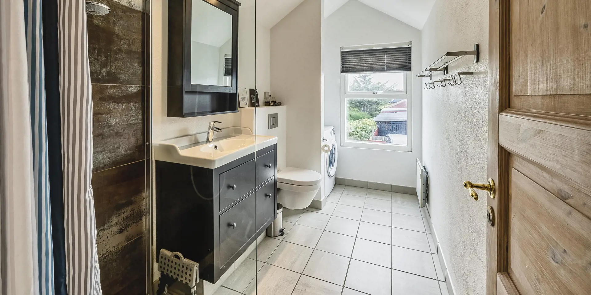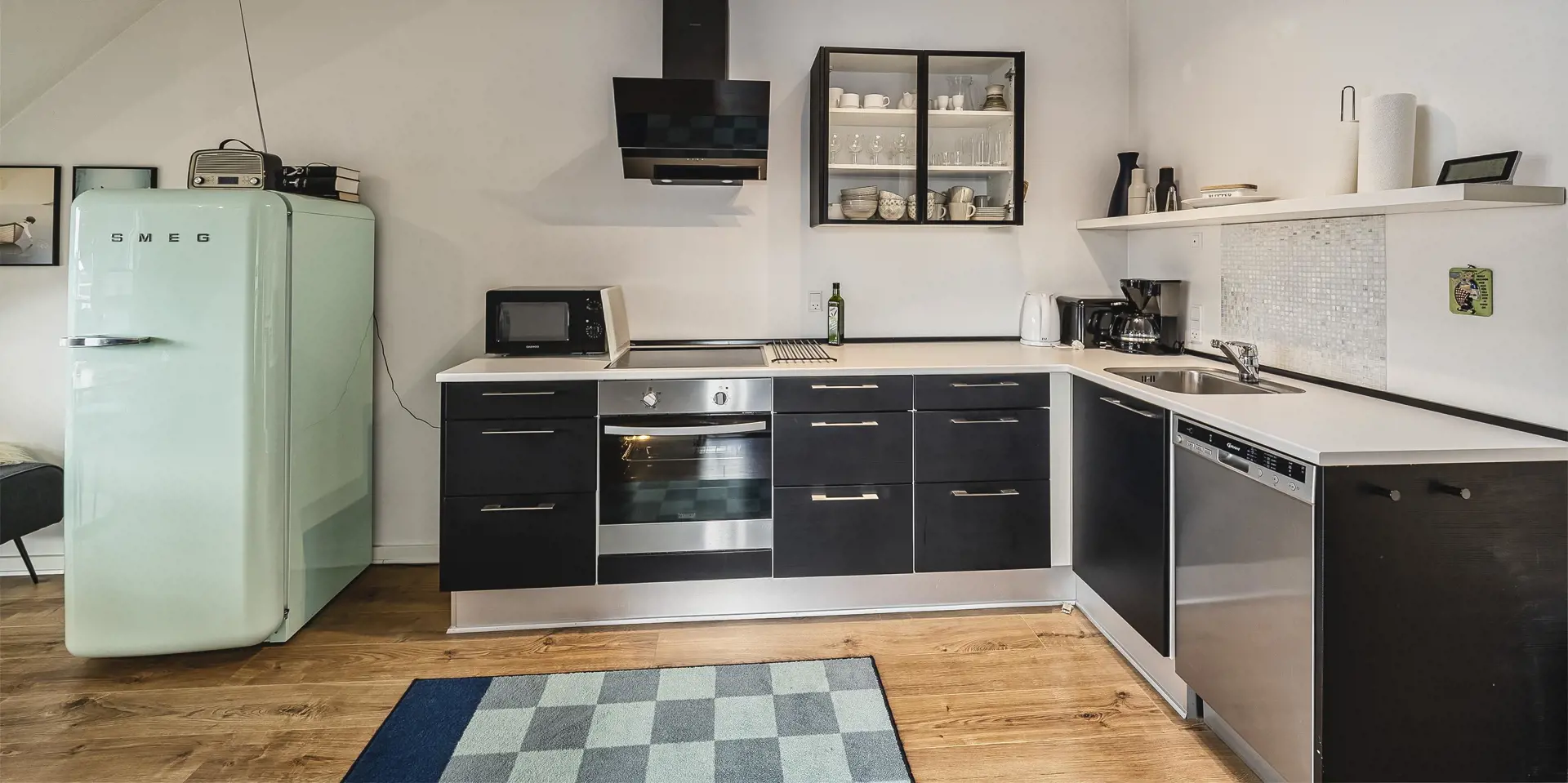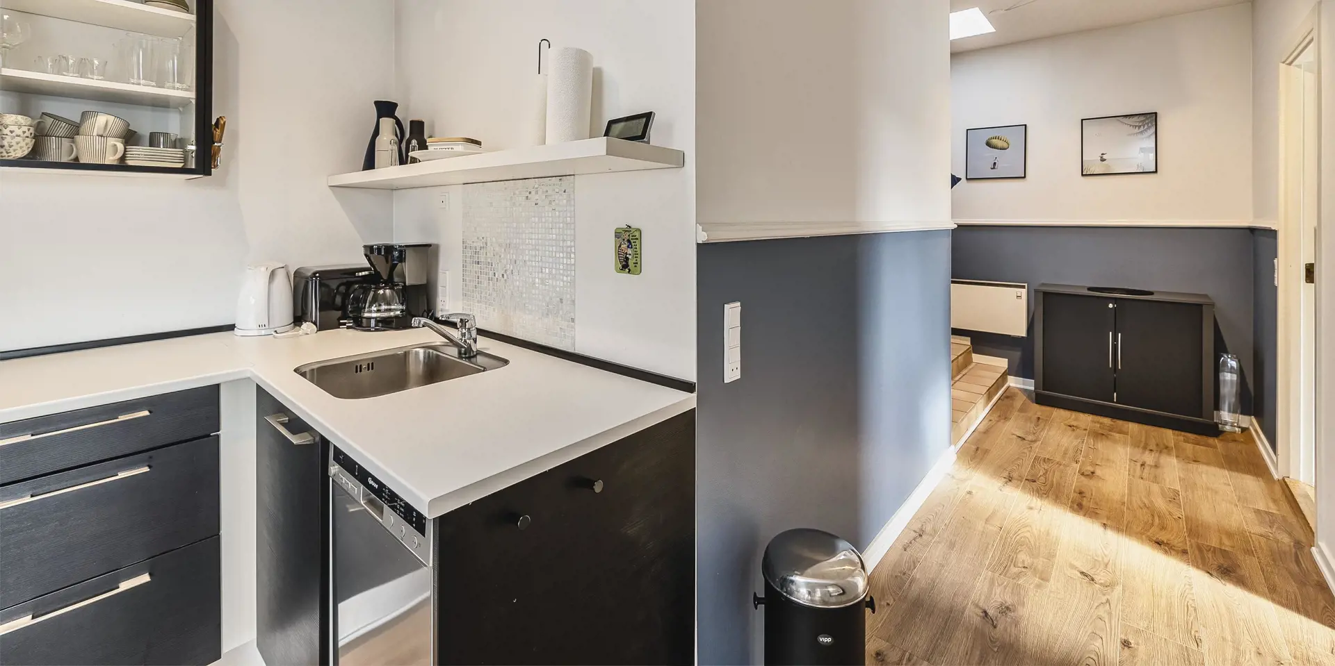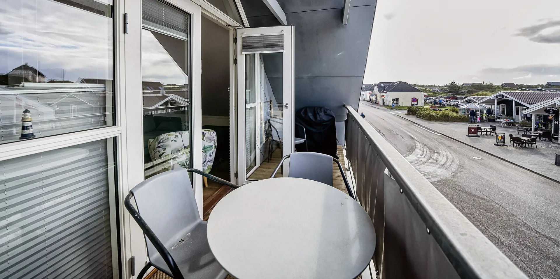 Diese helle und freundliche Ferienwohnung liegt Mitten im Herzen von Vejers Strand über der Dropskogeri. Sie ist geschmackvoll eingerichtet und bietet für 4 Personen genügend Platz. Die Wohnung erreichen Sie über die Metalltreppe, die sich auf der Rückseite der Dropskogeri befindet. Sie ist mit großen Löchern versehen und weniger geeignet beim Aufstieg von ein Hund. Vom Balkon der zum Ortsinneren zeigt, sind Sie hautnah am Geschehen von Vejers Strand dabei. Großzügiger Eingangsbereich mit ein paar Stufen und einem guten Garderobenplatz. Das Wohnzimmer ist mit Laminatboden verlegt. Die Sofagarnitur ist sehr gemütlich und hat seinen gewissen Stil, und mit ein Radio und einem Fernseher. Neue Küche in Verbindung zum Wohnbereich, die mit einem Herd mit Cerankochfeld, einem Backofen, eine Mikrowelle, einer Geschirrspülmaschine und einer freistehend Kühl- und Gefrierkombination im amerikanischen Stil ausgestattet ist. 2 Schlafzimmer: DB + 2B. Das großzügige neu renovierte Badezimmer hat ein WC, eine Dusche, ein Handwaschbecken und ein Waschmaschine. Es sind max. 1 kleine Hund erlaubt. Rauchen sind nicht erlaubt. Es sind Parkmöglichkeiten am Nordvej vorhanden. Gasgrill. Das Haus ist 1993 erbaut und in 2018 renoviert worden.