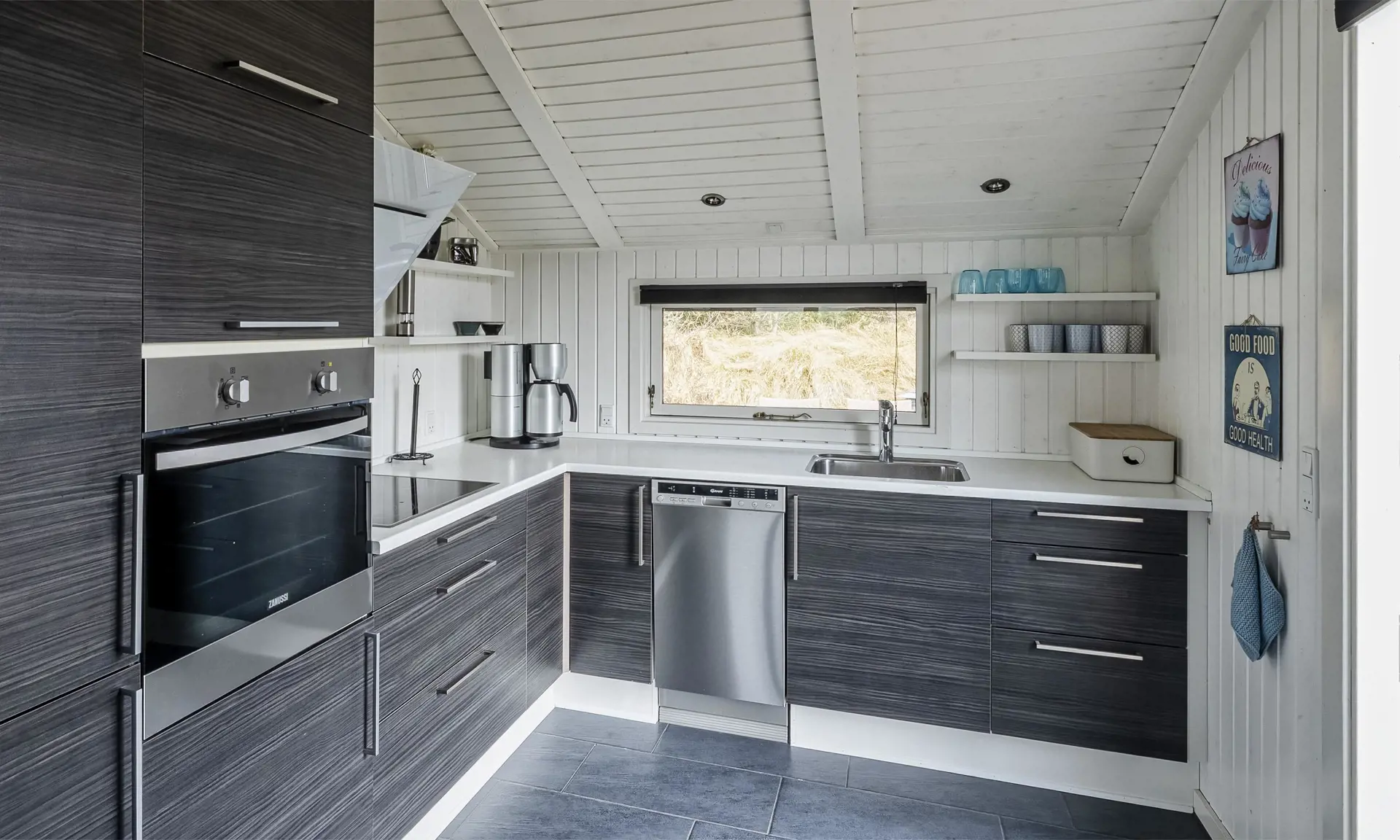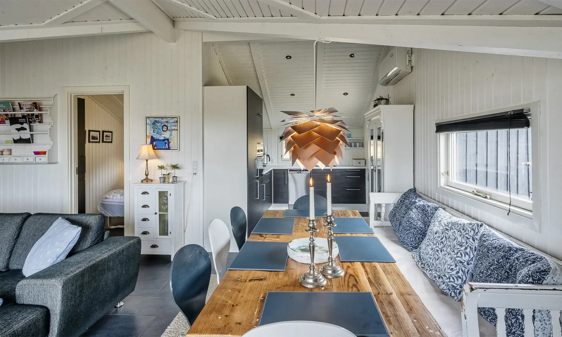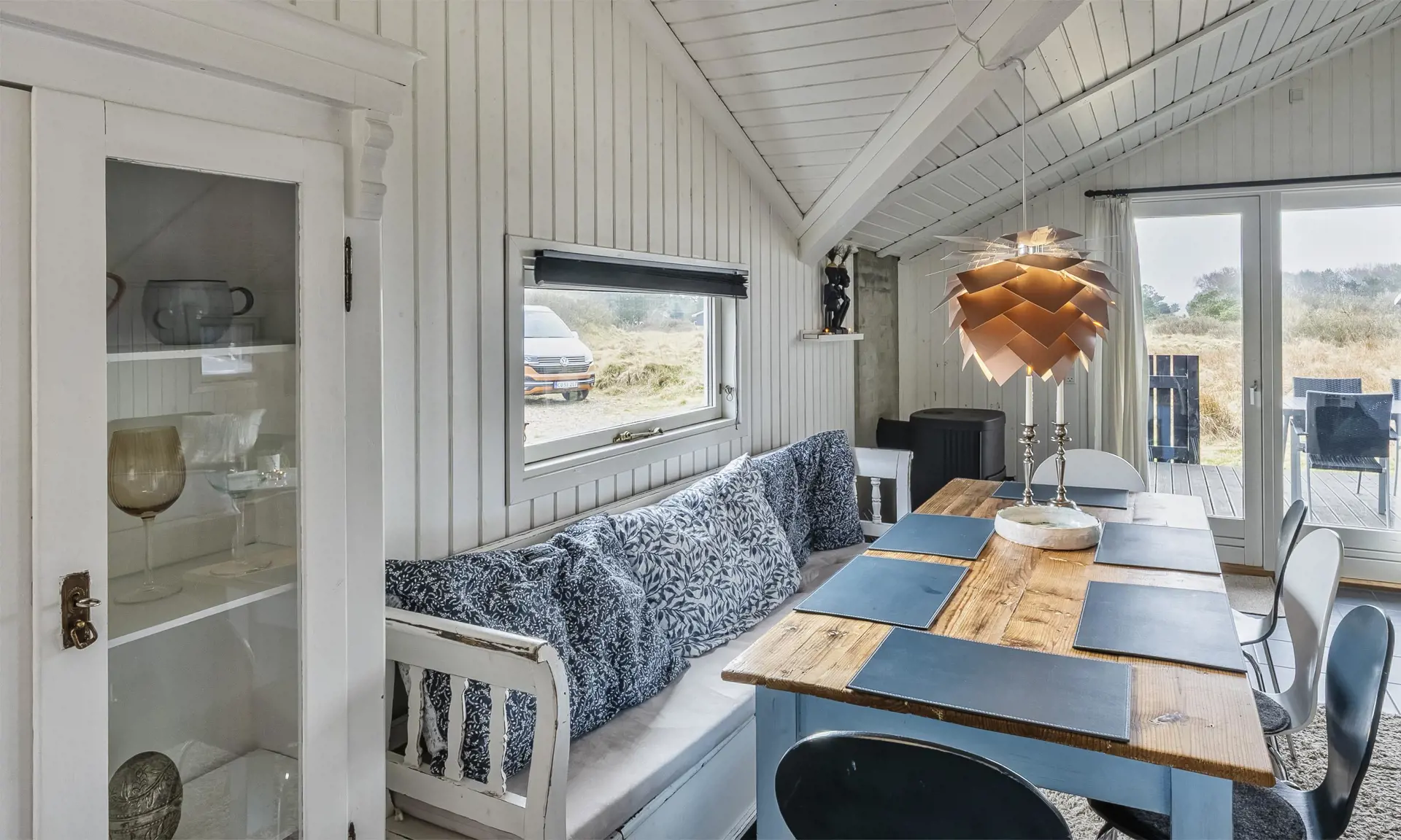 Dieses schnuckelige Ferienhaus mit Namen "Smør-Hullet" ist für 5 Personen liegt auf einem ca. 2.900 m2 großem Grundstück. Der Strand ist rund 1 Km vom Ferienhaus entfernt. Das Ferienhaus ist liebevoll und persönlich von den Eigentümern eingerichtet und strahlt einen besonderen Charme aus. Die Räumlichkeiten sind alle gefliest bis auf die Schlafzimmer. Ein gemütliches Sofa lädt zum entspannen ein und von hier haben Sie direkten Blick den Gartenbereich. Das deutsche Fernsehprogramm empfangen Sie über Stofa, daher sind nur 5-8 deutsche Kanäle zu empfangen. Der Essbereich ist zur Küche hin offen. Hier steht der kleine ”unscheinbare” Kamin, der eine angenehme Wärme in den Wohn- und Essbereich strahlt. Es befindet sich eine Warmepumpe im Ferienhaus. Mit dieser Warmepumpe haben sie die Möglichkeit die Stromkosten zu senken, denn die Warmepumpe ist energiesparend. Die Küche bietet alles was Sie zum Kochen brauchen. Einen Herd mit Cerankochfeld, einem Backofen in Arbeitshöhe, einer Mikrowelle, einer Geschirrspülmaschine und einer Kühl- und Gefrierkombination. Das Badezimmer verfügt über ein WC, ein Handwaschbecken und eine Duschkabine. In einem Hauswirtschaftsraum befindet sich die Waschmaschine. Es gibt drei Schlafbereiche im Ferienhaus: DB + DB + B. Der Terrassenbereich ist offen und ein Teil der Holzterrasse ist sogar überdacht. Folgend der Sonne haben Sie die Möglichkeit Ihr Sonnenbad zu nehmen, da eine relativ neue Holzteeasse rund um das Ferienhaus gebaut wurde. Das Wildnisbad ist privat. Großzügigem Naturgrundstück. Das Ferienhaus verfügt über einen Internetanschluss (W-Lan). Das Rauchen im Haus ist nicht erlaubt. Haustiere sind nicht erlaubt. Das Ferienhaus ist 1985 erbaut worden und in 2014 renoviert.