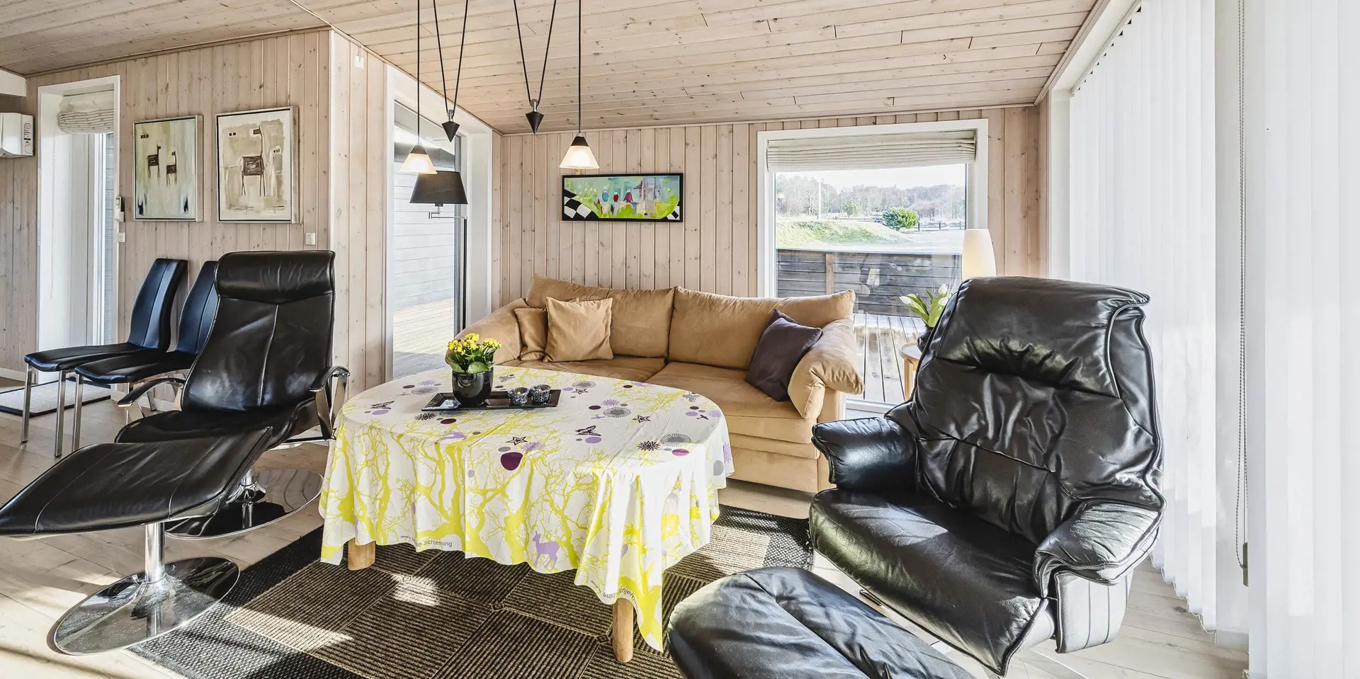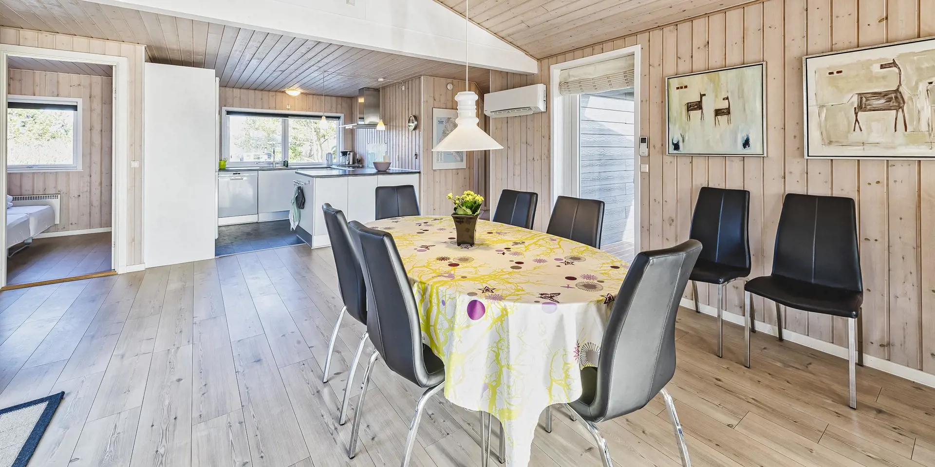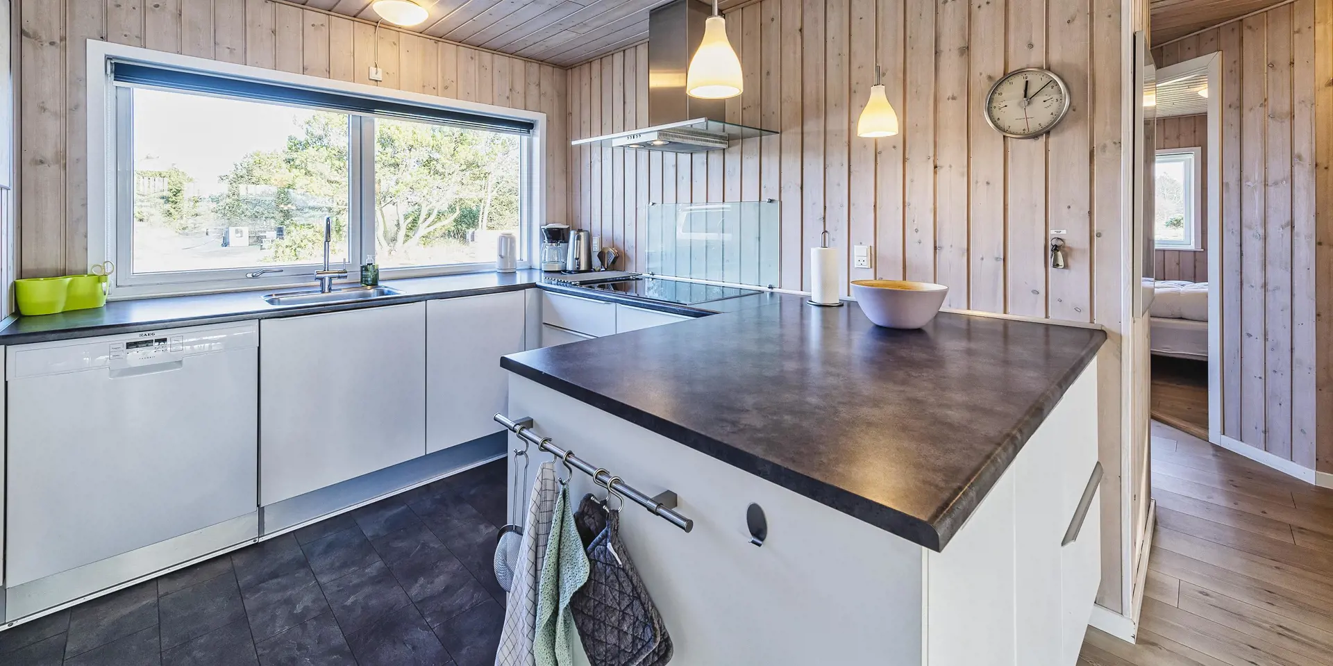 Gemütliches und gepflegtes Ferienhaus auf einem schönen Naturgrundstück gelegen. Dicht zum Wald und zu dem Fahrradweg, der von Vejers Strand zum Grærup Strand führt. Hier können Sie in Ruhe Ihren Spaziergang machen, ohne den normalen PKW-Verkehr. Der ist hier nämlich nicht erlaubt. Das Ferienhaus ist für 6 Personen ausgestattet. Der Strand ist ca. 1 Km vom Haus entfernt. Der Wohnbereich ist mit dem Essbereich zusammen und offen zur Küche gehalten. Im Wohn- und Essbereich ist der Kamin aufgestellt. Es befindet sich eine Warmepumpe im Ferienhaus. Mit dieser Warmepumpe haben sie die Möglichkeit die Stromkosten zu senken, denn die Warmepumpe ist energiesparend. Das deutsche Fernsehprogramm empfangen Sie über eine Parabolantenne.Desweiteren steht Ihenen Chrome Cast zur Verfügung. Die Küche verfügt über einen Herd mit Cerankochfeld/Induktionsfeld, einem Backofen in Arbeitshöhe, einer Geschirrspülmaschine, einer Mikrowelle und einer Kühl- und Gefrierkombination. Das Badezimmer hat ein WC, ein Handwaschbecken und eine Dusche. Im Ferienhaus befindet sich eine Waschmaschine und ein Trockner, die gerne benutzt werden dürfen. Insgesamt stehen den Gästen drei Schlafzimmer zur Verfügung: DB + DB + DB. Der Terrassenbereich am Ferienhaus ist teilweise überdacht und geschlossen. Auf dem großen Rasengrundstück ist für kleinen Gäste des Hauses genügend Platz zum Spielen. Das Rauchen im Ferienhaus ist nicht erlaubt. Das Ferienhaus verfügt über einen Internetanschluss (W-Lan). Es sind zwei Haustiere erlaubt. Der kann auf der Terrasse zwischendurch mal Luft schnappen, ohne das er gleich stiften gehen kann. Das Ferienhaus ist 1984 erbaut worden und in 2010 umgebaut.