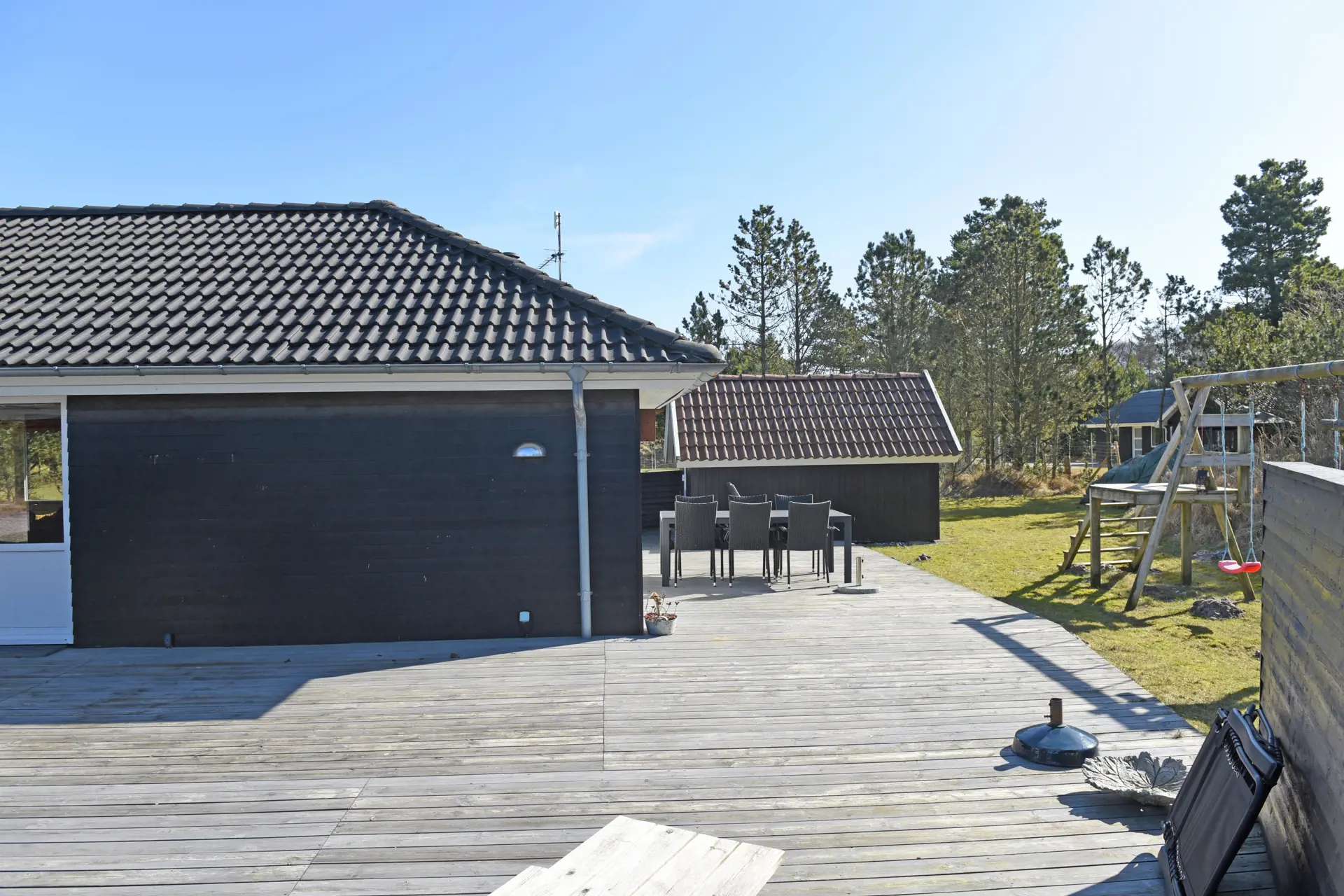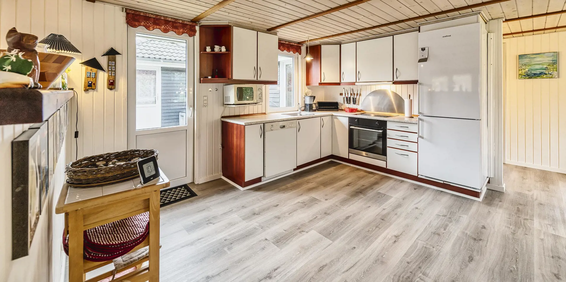 Flottes und gemütliches Ferienhaus mit Namen "Fyrrely" auf einem schönen großem geschlossenem Grundstück in Waldlage gelegen. Das Ferienhaus ist für 4-6 Personen ausgestattet. Der Strand ist ca. 1,8 Km vom Haus entfernt. Der Wohnbereich ist zur Küche und dem Speiseplatz hin offen gehalten. Im Wohnbereich befindet sich ein Kamin, der sich gegenüber der Rundsitzecke befindet. Er strahlt eine gemütliche Wärme aus. Eine kleine gemütliche Sitzecke mit Korbsesseln lädt zum verweilen ein. Es befindet sich eine Warmepumpe im Ferienhaus. Mit dieser Warmepumpe haben sie die Möglichkeit die Stromkosten zu senken, denn die Warmepumpe ist energiesparend. Das Fernsehprogramm empfangen Sie über eine Parabolantenne. Die großzügige Küche verfügt über einen Herd mit Cerankochfeld, einem Backofen, eine Geschirrspülmaschine, eine Mikrowelle und einer Kühl- und Gefrierkombination. Das Badezimmer verfügt über ein Handwaschbecken, ein WC, eine Dusche und einen Whirlpool. Es stehen den Gästen drei Schlafzimmer zur Verfügung: DB + DB + DB. In dem Technikraum im Ferienhaus steht Ihnen eine Waschmaschine zur Verfügung, unter anderem ist dort auch der Warmwasserbehälter untergebracht. Am Haus befindet sich eine große Holzterrasse und bietet allen Gästen genügend Platz um auch mal Ihr Sonnenbad geniessen zu können. Für die Kleinen Gäste steht auf dem Grundstück ein Schaukel/Klettergerüst und eine Sandkiste zum Spielen bereit. Das Ferienhaus verfügt über einen Internetanschluss (W-Lan). Nicht-raucher Haus. Es sind max. 2 Haustiere erlaubt. Das Ferienhaus ist 1968 erbaut worden und ca. 2005 umgebaut worden.