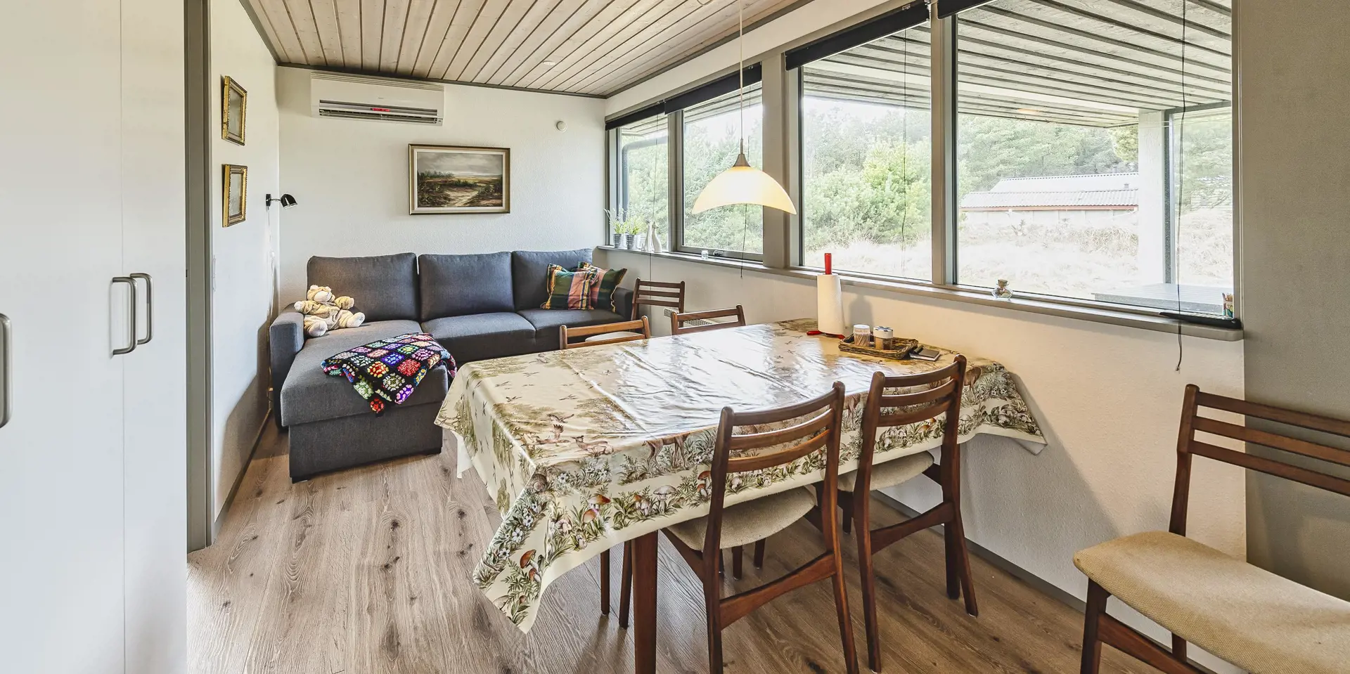 Gemütliches Ferienhaus auf einem naturschönen offenen Rasengrundstück mit Namen "Engsøminde". Das Ferienhaus ist für 4-6 Personen ausgestattet und bietet allen Bewohnen ausreichend Platz. Der Strand ist ca. 900 Meter vom Ferienhaus entfernt. Bis auf einem Schlafzimmer, dem Eingangsbereich und dem Badezimmer ist das Ferienhaus mit einem Dielenboden verlegt. Der Eingangsbereich und ein Schlafzimmer mit Laminat ausgelegt. Der Wohnbereich ist zum Essbereich offen gehalten. Im Wohnbereich befindet sich ein Kamin und spendet angenehme Wärme, desweiteren ist ein Schlafsofa hier im Wohnbereich aufgestellt. Es befindet sich eine Warmepumpe im Ferienhaus. Mit dieser Warmepumpe haben sie die Möglichkeit die Stromkosten zu senken, denn die Warmepumpe ist energiesparend. Das Fernsehprogramm empfangen Sie über Stofa, daher empfangen Sie nur 5-8 deutsche Kanäle. Die Küche verfügt über einen Herd mit Cerankochfeld, einem Backofen in Arbeitshöhe, einer Geschirrspülmaschine, einer Mikrowelle und einer Kühl- und Gefrierkombination. Eine Waschmaschine steht den Gästen auch zur Verfügung und ist hier in der Küche untergebracht. Das Badezimmer verfügt über ein Handwaschbecken, ein WC und eine Dusche. Es gibt insgesamt zwei Schlafzimmer im Ferienhaus: DB + DB. Beide sind mit je einem Doppelbett ausgestattet. In einem der Schlafzimmer befindet sich auch ein kleiner Safe. Das Ferienhaus verfügt über einen Internetanschluss (W-Lan). Am Ferienhaus ist ein kleiner Terrassenbereich überdacht, dort können Sie in Ruhe im Trockenen sitzen und Ihren Kaffee geniessen. Schuppen. Auf dem grosszügigen Rasengrundstück haben die Kleinen Bewohner genügend Platz zum Bolzen oder Toben. Es ist max. ein Haustier erlaubt, aber keine Katzen. Das Rauchen ist nicht gestattet. Das Ferienhaus ist 1973 erbaut worden und laufend renoviert. Gratis Eintritt fürs Oksbøl Badeland 2025.