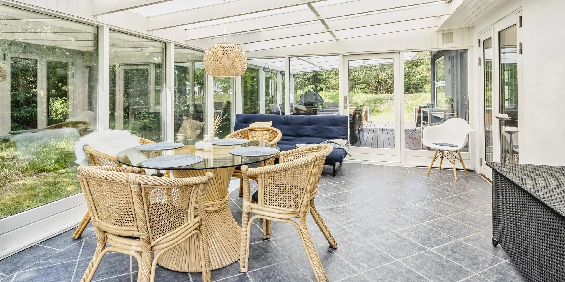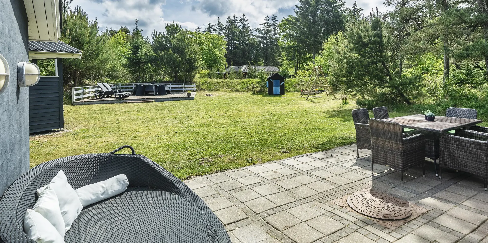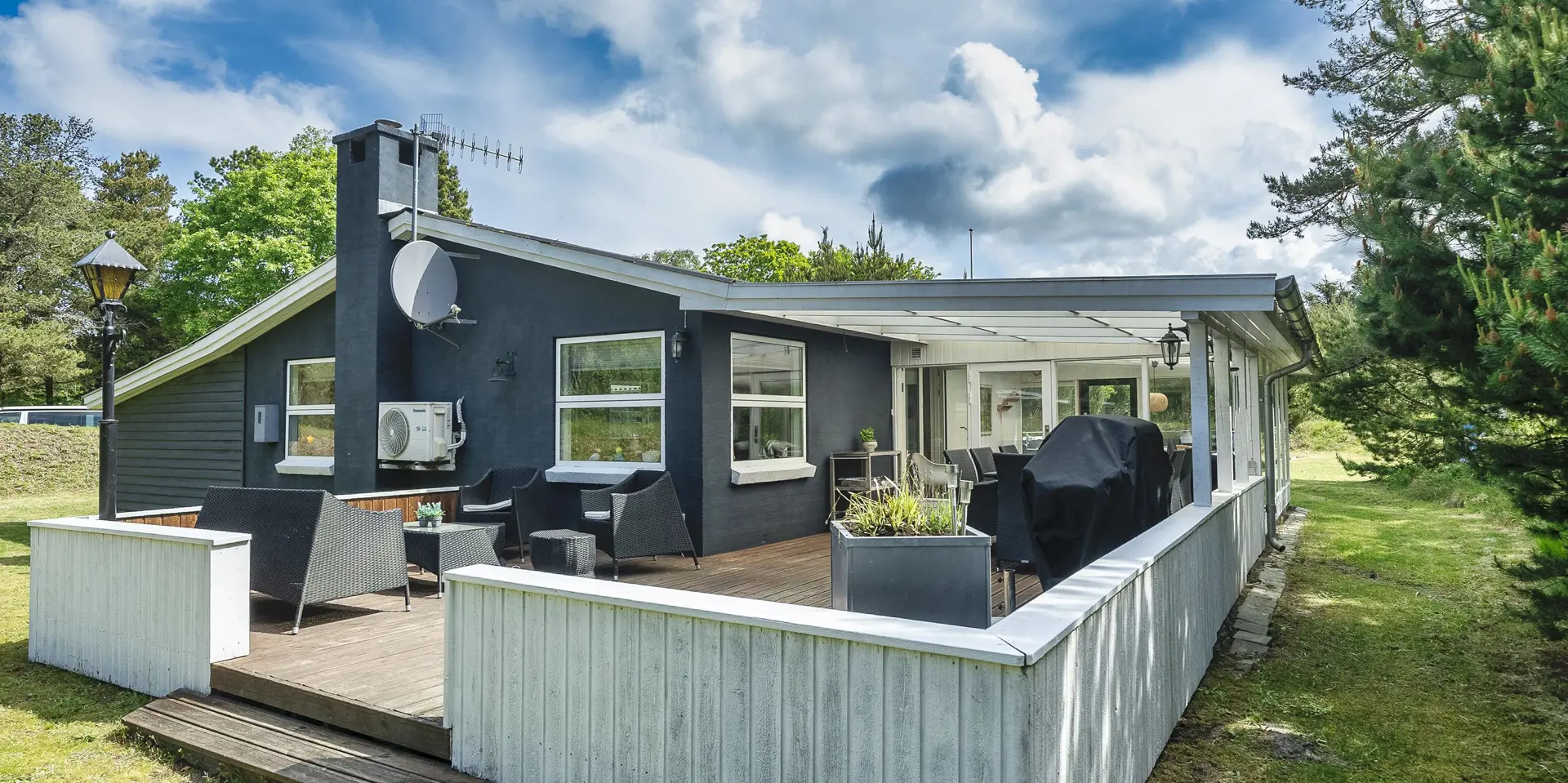 Gemütliches, helles und freundliches Ferienhaus auf einem großzügigem Naturgrundstück gelegen und für 6 Personen ausgestattet. Der Strand ist nur 900 Meter vom Haus entfernt. Ab Saison 2025 hat das Haus auch einen kleinen Aktivitätenraum. Der Fußboden des Wohn- und Essbereich´s ist mit einem Laminatboden verlegt und bietet eine schöne Atmosphäre und Gemütlichkeit. Das Mobiliar ist farblich gut abgestimmt und bietet genügend Platz für all seine Bewohner. Im Wohnbereich ist ein Kamin aufgestellt. Zusätzlich gibt es eine Wärmepumpe im Ferienhaus. Mit dieser Wärmepumpe haben Sie die Möglichkeit die Stromkosten zu senken, da sie energiesparend ist. Es gibt deutsches Fernsehprogramme, und Google Chrome Cast. Der Wohn- und Essbereich ist gegenüber dem Küchenbereich offengehalten. Die Küche ist mit einem Herd mit Cerankochfled, einem Backofen, einer Geschirrspülmaschine und einer Kühl- und Gefrierkombination ausgestattet. Es steht den Gästen ein normales Badezimmer, ausgestattet mit einem Handwaschbecken, einem WC und einer Dusche. Ein weiteres Gäste WC, mit Handwaschbecken befindet sich auch in dem Ferienhaus. Eine Waschmaschine und ein Trockner steht den Gästen ebenfalls zur freien Benutzung bereit. Insgesamt befinden sich drei Schlafzimmer im Ferienhaus: DB + DB + DB . Ein gefliester und lichtdurchfluteter Wintergarten mit weiteren Sitzmöbeln lädt zum Verweilen und Entspannen ein. Hier können Sie in Ruhe entspannen und z.B. Ihr Buch lesen. Angrenzend an den Wintergarten befindet sich dann der Terrassenbereich. Ein Teil ist sogar überdacht. Desweiteren befindet sich etwas entfernt ein weiterer Terrassenbereich, die Sonnenterrasse. Auf dem Grundstück befindet sich ein Kletter-Spielhaus mit einer Schaukel und einer Rutsche und eine Sandkiste für die kleinen Gäste. Ein Carport bietet Ihrem Fahrzeug genügend Platz und Schatten. Das Ferienhaus verfügt über einen Internetanschluss (W-Lan). Es sind keine Haustiere erlaubt. In dem Ferienhaus ist das Rauchen nicht gestattet. Die Garage ist privat. Der Kunde muss selbst für Gas für den Gas-Grill und den Gasofen im wintergarten sorgen. Das Ferienhaus ist 1960 erbaut und in 2005 renoviert worden. Das Ferienhaus ist 1960 erbaut und im Jahr 2005 renoviert worden, ausserdem im Jahr 2022 (teilweise).
