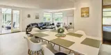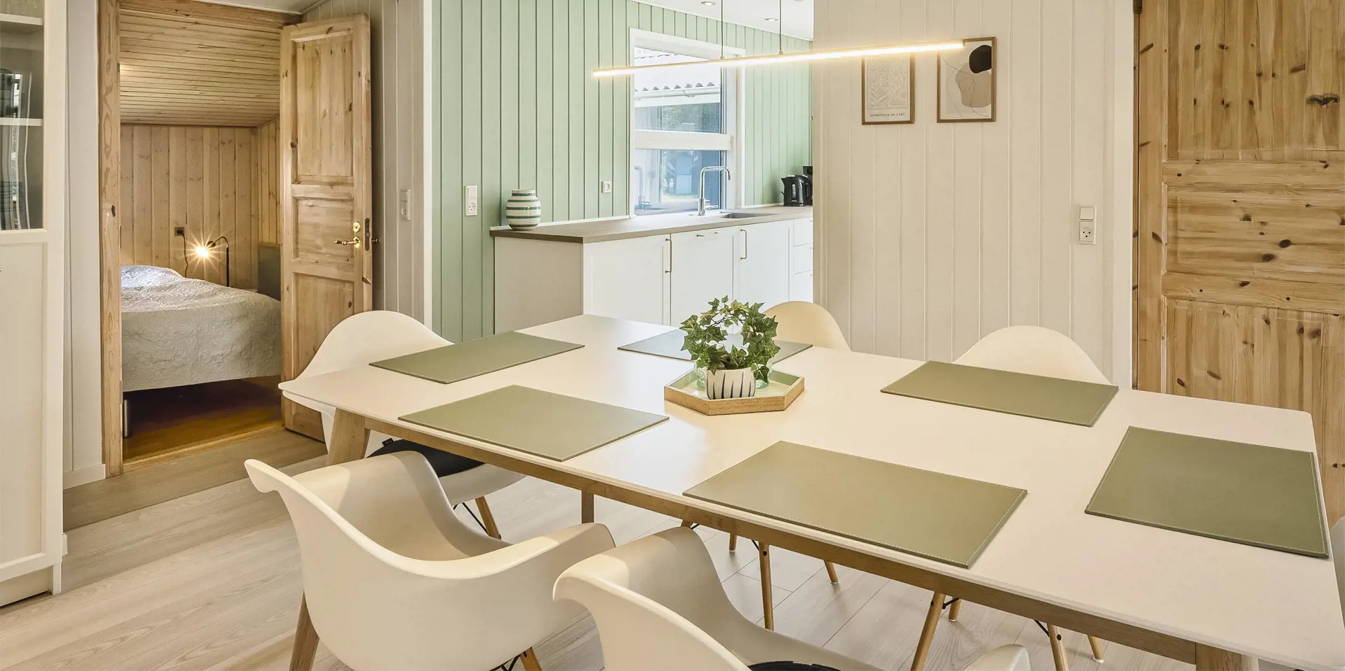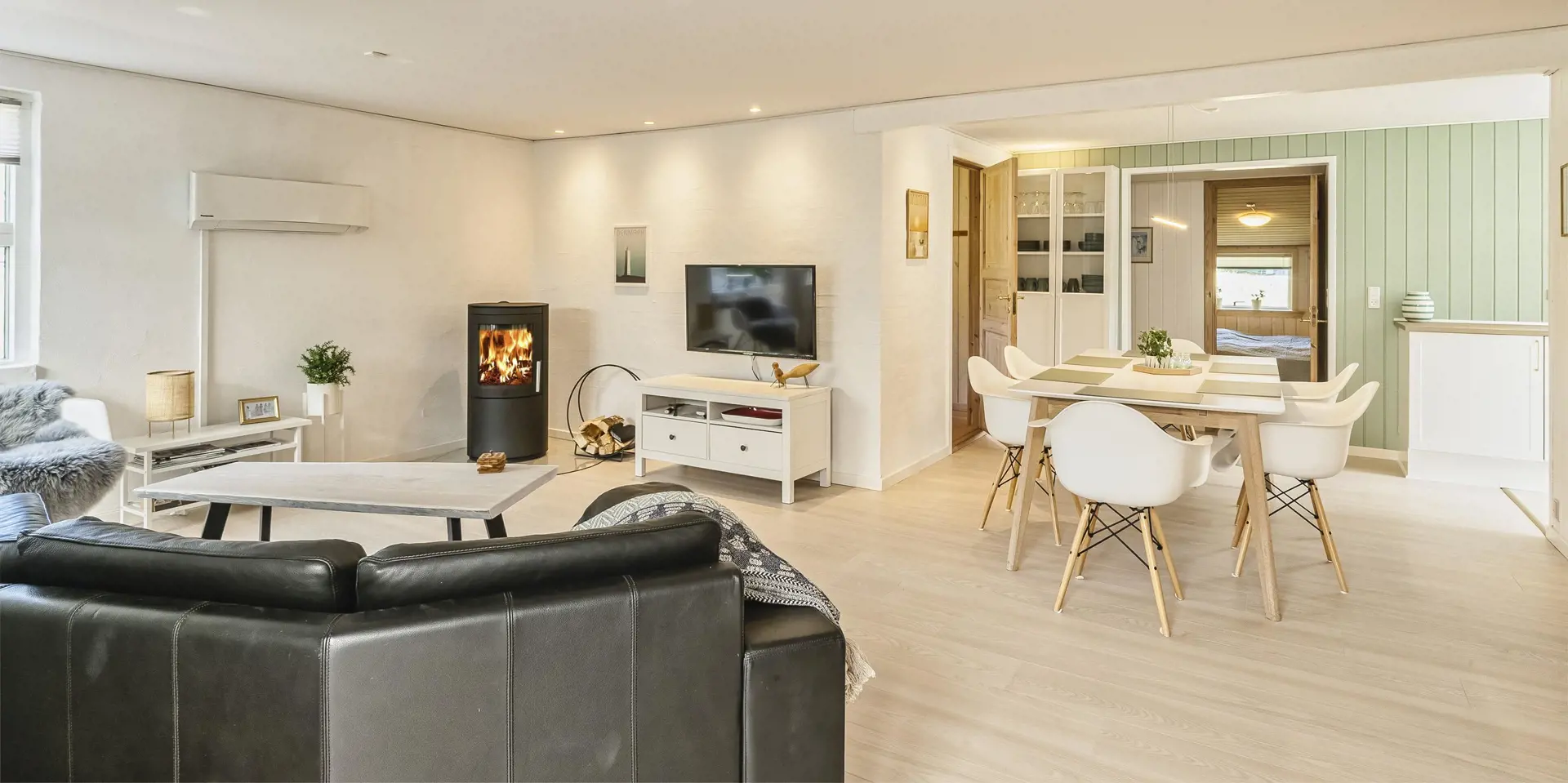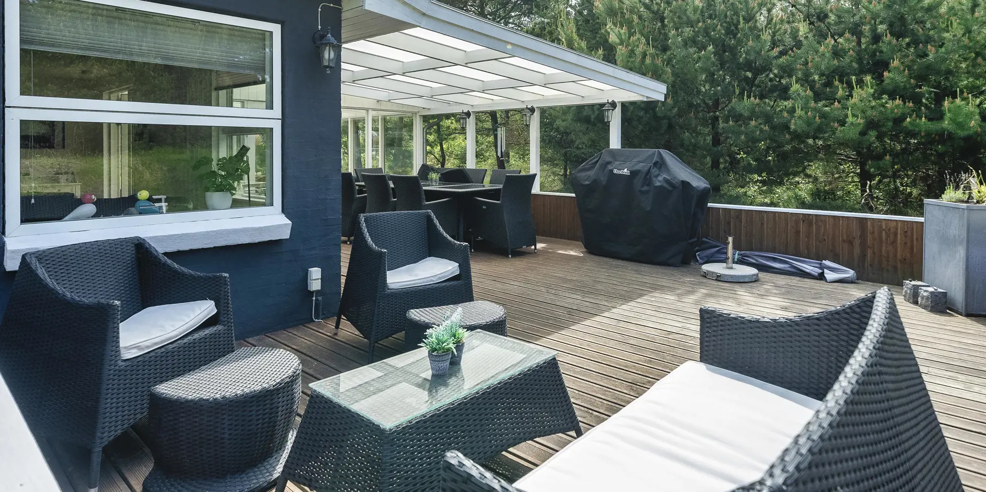 Gemütliches, helles und freundliches Ferienhaus auf einem großzügigem Naturgrundstück gelegen und für 6 Personen ausgestattet. Der Strand ist nur 900 Meter vom Haus entfernt. Ab Saison 2025 hat das Haus auch einen kleinen Aktivitätenraum. Der Fußboden des Wohn- und Essbereich´s ist mit einem Laminatboden verlegt und bietet eine schöne Atmosphäre und Gemütlichkeit. Das Mobiliar ist farblich gut abgestimmt und bietet genügend Platz für all seine Bewohner. Im Wohnbereich ist ein Kamin aufgestellt. Zusätzlich gibt es eine Wärmepumpe im Ferienhaus. Mit dieser Wärmepumpe haben Sie die Möglichkeit die Stromkosten zu senken, da sie energiesparend ist. Es gibt deutsches Fernsehprogramme, und Google Chrome Cast. Der Wohn- und Essbereich ist gegenüber dem Küchenbereich offengehalten. Die Küche ist mit einem Herd mit Cerankochfled, einem Backofen, einer Geschirrspülmaschine und einer Kühl- und Gefrierkombination ausgestattet. Es steht den Gästen ein normales Badezimmer, ausgestattet mit einem Handwaschbecken, einem WC und einer Dusche. Ein weiteres Gäste WC, mit Handwaschbecken befindet sich auch in dem Ferienhaus. Eine Waschmaschine und ein Trockner steht den Gästen ebenfalls zur freien Benutzung bereit. Insgesamt befinden sich drei Schlafzimmer im Ferienhaus: DB + DB + DB . Ein gefliester und lichtdurchfluteter Wintergarten mit weiteren Sitzmöbeln lädt zum Verweilen und Entspannen ein. Hier können Sie in Ruhe entspannen und z.B. Ihr Buch lesen. Angrenzend an den Wintergarten befindet sich dann der Terrassenbereich. Ein Teil ist sogar überdacht. Desweiteren befindet sich etwas entfernt ein weiterer Terrassenbereich, die Sonnenterrasse. Auf dem Grundstück befindet sich ein Kletter-Spielhaus mit einer Schaukel und einer Rutsche und eine Sandkiste für die kleinen Gäste. Ein Carport bietet Ihrem Fahrzeug genügend Platz und Schatten. Das Ferienhaus verfügt über einen Internetanschluss (W-Lan). Es sind keine Haustiere erlaubt. In dem Ferienhaus ist das Rauchen nicht gestattet. Die Garage ist privat. Der Kunde muss selbst für Gas für den Gas-Grill und den Gasofen im wintergarten sorgen. Das Ferienhaus ist 1960 erbaut und in 2005 renoviert worden. Das Ferienhaus ist 1960 erbaut und im Jahr 2005 renoviert worden, ausserdem im Jahr 2022 (teilweise).