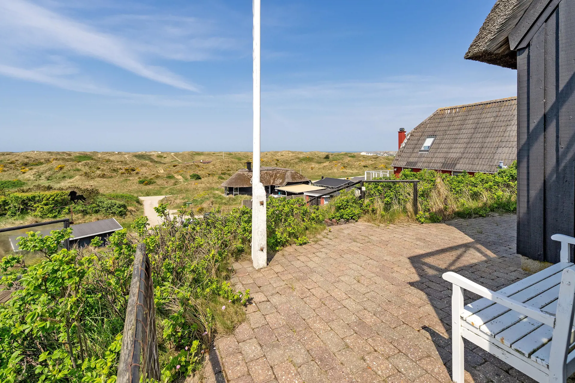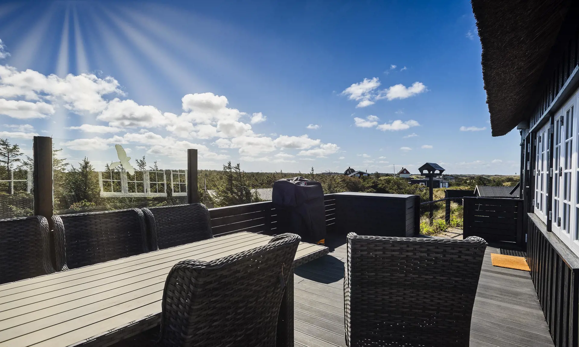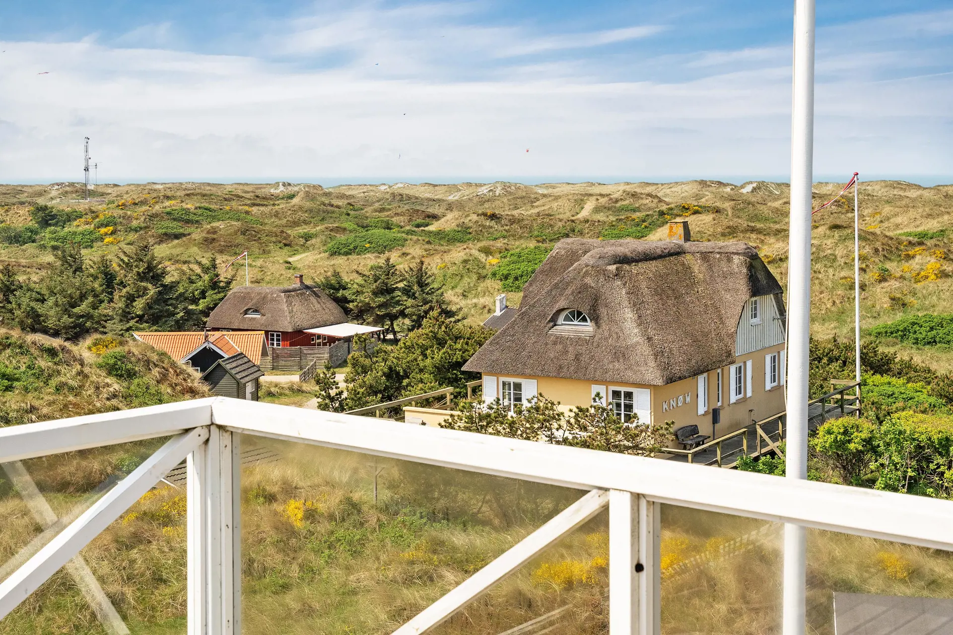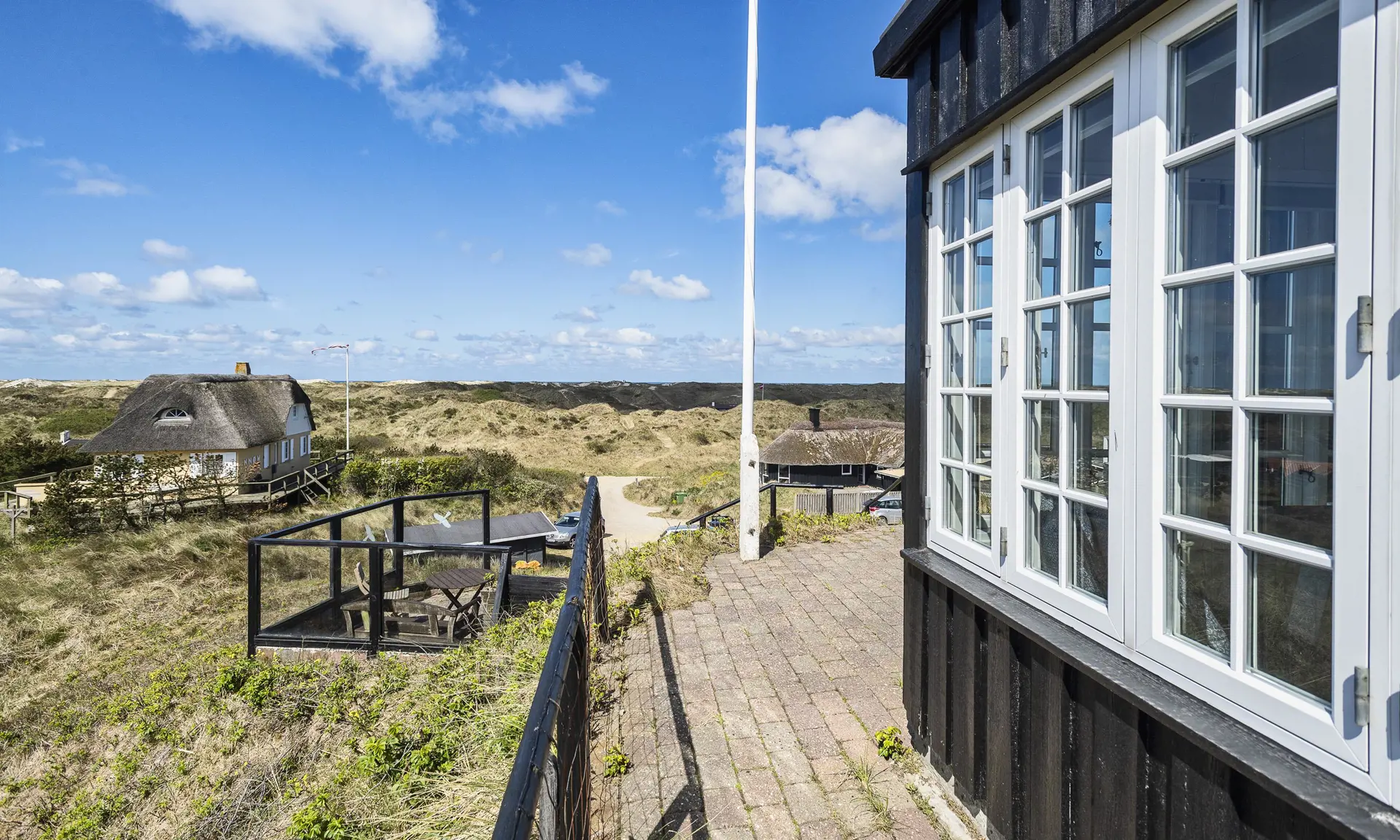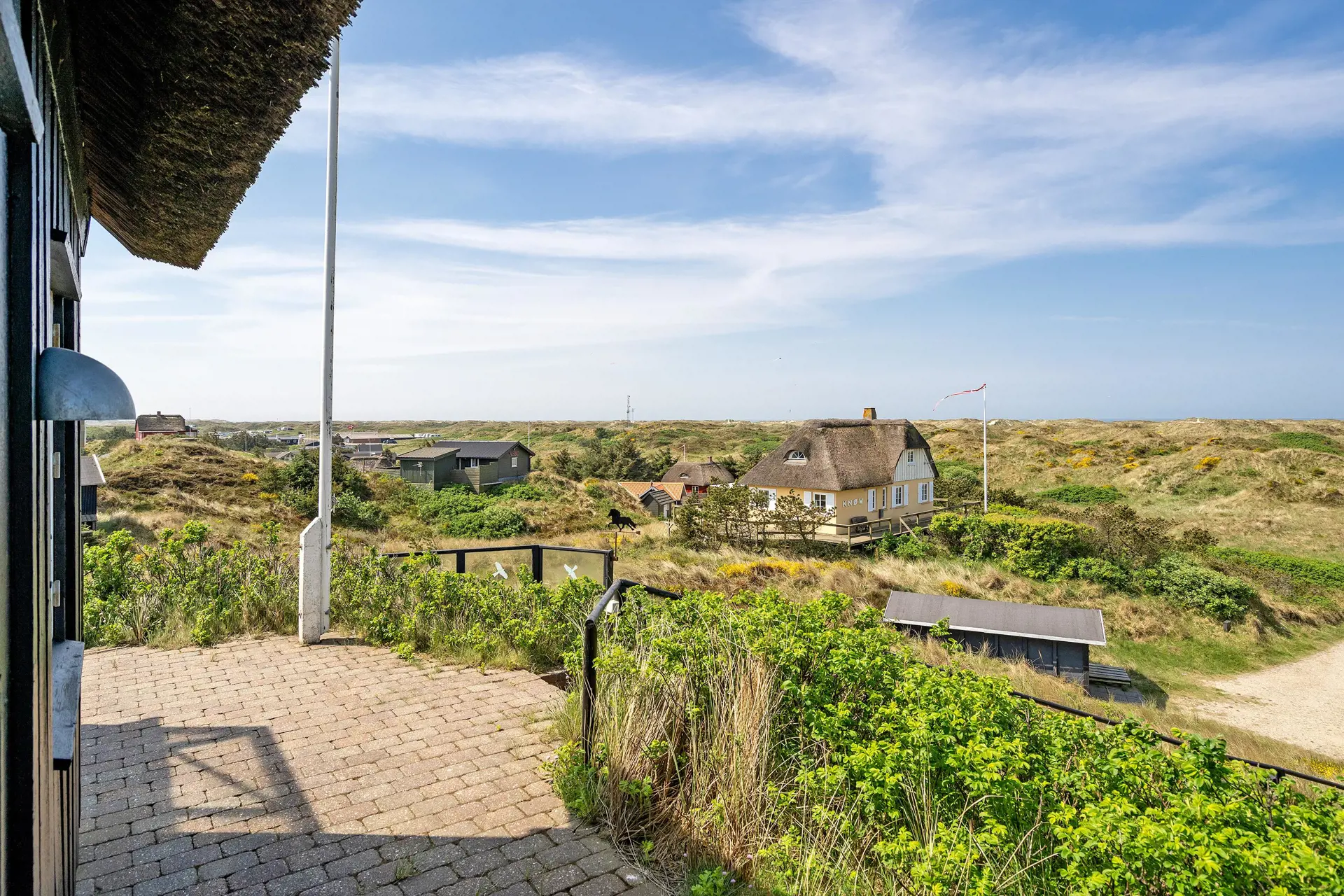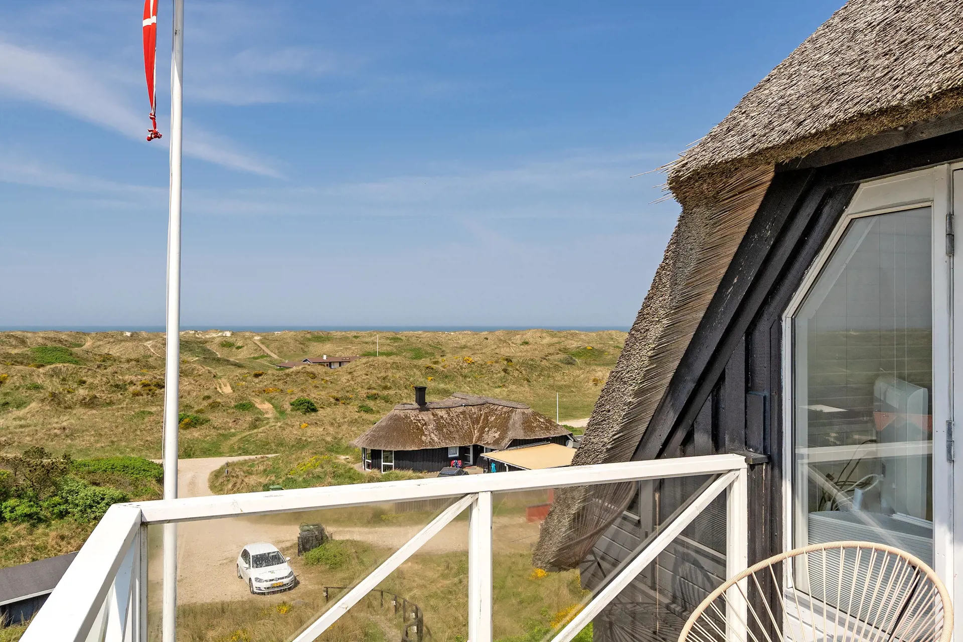 Reetgedecktes Ferienhaus mit Namen ”Udsigten” hoch oben auf einer Düne gelegen mit wundervollem Panoramablick über das Ferienhausgebiet und sogar mit Meerblick vom Obergeschoss. Ein langer steiler Weg mit kleinen Stufen führt hoch zum Ferienhaus. Die Räumlichkeiten verteilen sich über 2 Etagen. Es ist hell und freundlich in der Ausstattung und recht modern eingerichtet. Das Ferienhaus bietet Platz für 6 Personen. Es strahlt einen besondern Chame aus. Der Strand ist nur 100 Meter vom Ferienhaus entfernt. Im Bereich des Erdgeschosses befinden sich der Eingangsbereich, ein Wohnbereich, der Essplatz, die Küche, das Badezimmer und zwei Schlafbereiche. Das Herzstück des Hauses befindet sich in der Mitte und ist der gemütliche Wohnbereich. Hier befindet sich auch der schöne dänische Morsø-Kamin, der Ihnen eine angenehme Wärme bietet und die typische dänische Hygge vermittelt. Das deutsche Fernsehprogramm empfangen Sie über Stofa, daher sind nur 5-8 deutsche Kanäle zu empfangen. Vom Wohnbereich gelangen Sie dann in die offen gehaltene Küche. Diese verfügt über einen Herd mit Cerankochfeld, einem Backofen, einer Geschirrspülmaschine und einer Kühl- und Gefrierkombination. Gehen Sie dann weiter gelangen Sie in den lichtdurchfluteten Essbereich. Durch seine schönen Panoramafenster haben Sie einen tollen Ausblick über das gesamte Ferienhausgebiet. Der gesamte Bodenbereich im Haus ist mit einem hellen Laminat verlegt worden. Alles passt farblich sehr gut zusammen und ist aufeinander abgestimmt. Das Badezimmer ist mit einem Handwaschbecken, einem WC und einer Dusche ausgestattet. Desweiteren befindet sich hier eine Waschmaschine. Insgesamt befinden sich drei Schlafzimmer im Hause: DB + DB + 2B. Über die offene Holztreppe im Wohnbereich gelangen sie dann in das Obergeschoss. Der zweite Wohnbereich im Obergeschoss bietet gemütliche Sitzmöglichkeiten. Von diesem Wohnbereich gelangen Sie auf den schönen Balkon, wo Sie den Meerblick und den Sonnenuntergang in vollen Zügen geniessen können. Die Fenster in diesem Wohnbereich sind halb rund und man hat das Gefühl wie in einer Puppenstube zu wohnen. Der Balkon ist ebenfalls vom Erdgeschoss von aussen zu erreichen. Ein weiteres Schlafzimmer mit einem Doppelbett steht den Gästen hier im Obergeschoss bereit. In diesen Ferienhaus können Sie sich einfach entspannen und Ihren Urlaub voll geniessen. Hinter dem Ferienhaus befindet sich der kleine Eingangsbereich und eine grössere geschlossene Terrasse, die auch durch verschiedene Sichtschutz-Elemente geschützt ist. Ein klein wenig der Düne nach unten gehend, haben sie dann einen weiteren geschützten Terrassenbereich. In einem separaten Kellerbereich befindet sich ein weiteres Badezimmer, ausgestattet mit WC, Handwaschbecken und Dusche, und eine Sauna. Es gibt keinen direkten Zugang vom Haus zum Kellerbereich, wo sich das Badezimmer befindet. Das Ferienhaus verfügt über einen Internetanschluss (W-Lan - 100/100). Es ist max. ein Haustier erlaubt, allerdings sind keine Katzen erlaubt. Das Rauchen im Ferienhaus ist nicht erlaubt. Es fallen bei diesem Ferienhaus Zusatzkosten für Wasser an. Es ist im Jahre 1936 erbaut worden und in 2019 neurenoviert. Das Grundstück beträgt insgesamt 1765 qm.