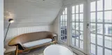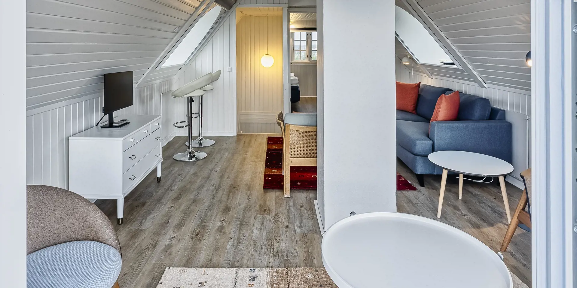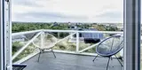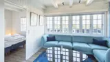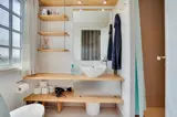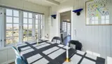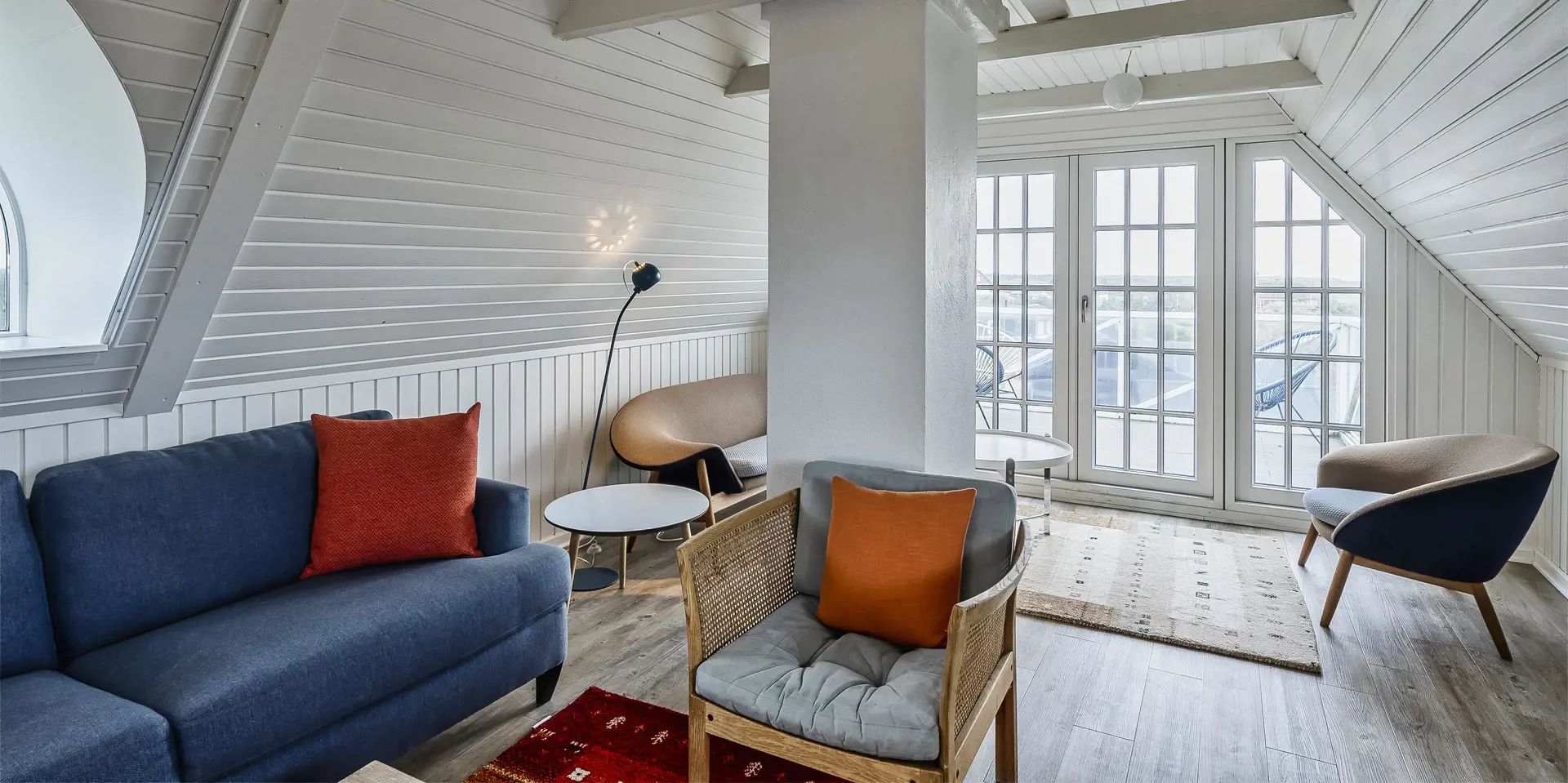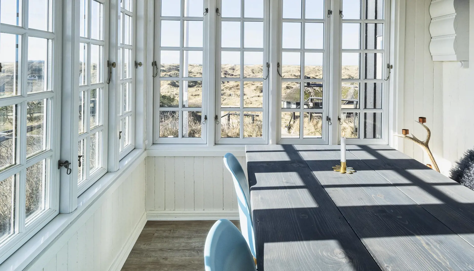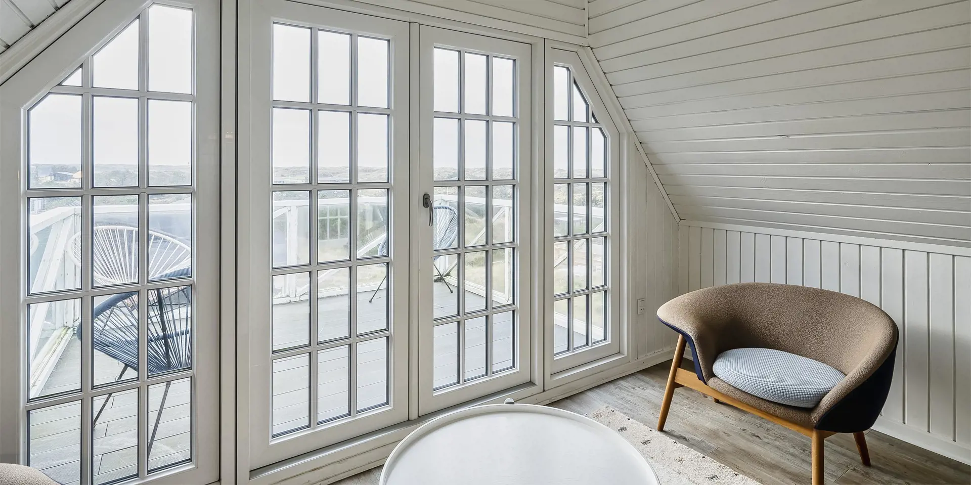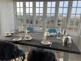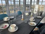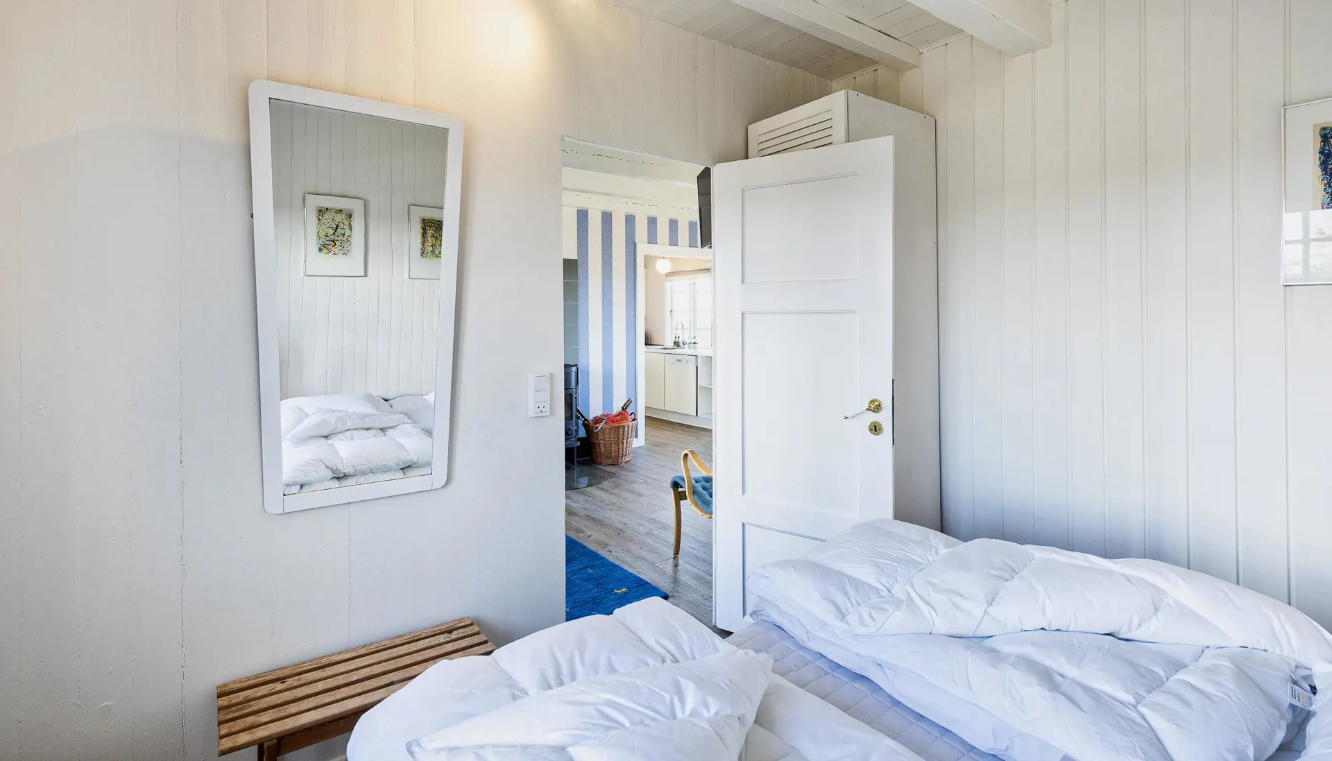 Reetgedecktes Ferienhaus mit Namen ”Udsigten” hoch oben auf einer Düne gelegen mit wundervollem Panoramablick über das Ferienhausgebiet und sogar mit Meerblick vom Obergeschoss. Ein langer steiler Weg mit kleinen Stufen führt hoch zum Ferienhaus. Die Räumlichkeiten verteilen sich über 2 Etagen. Es ist hell und freundlich in der Ausstattung und recht modern eingerichtet. Das Ferienhaus bietet Platz für 6 Personen. Es strahlt einen besondern Chame aus. Der Strand ist nur 100 Meter vom Ferienhaus entfernt. Im Bereich des Erdgeschosses befinden sich der Eingangsbereich, ein Wohnbereich, der Essplatz, die Küche, das Badezimmer und zwei Schlafbereiche. Das Herzstück des Hauses befindet sich in der Mitte und ist der gemütliche Wohnbereich. Hier befindet sich auch der schöne dänische Morsø-Kamin, der Ihnen eine angenehme Wärme bietet und die typische dänische Hygge vermittelt. Das deutsche Fernsehprogramm empfangen Sie über Stofa, daher sind nur 5-8 deutsche Kanäle zu empfangen. Vom Wohnbereich gelangen Sie dann in die offen gehaltene Küche. Diese verfügt über einen Herd mit Cerankochfeld, einem Backofen, einer Geschirrspülmaschine und einer Kühl- und Gefrierkombination. Gehen Sie dann weiter gelangen Sie in den lichtdurchfluteten Essbereich. Durch seine schönen Panoramafenster haben Sie einen tollen Ausblick über das gesamte Ferienhausgebiet. Der gesamte Bodenbereich im Haus ist mit einem hellen Laminat verlegt worden. Alles passt farblich sehr gut zusammen und ist aufeinander abgestimmt. Das Badezimmer ist mit einem Handwaschbecken, einem WC und einer Dusche ausgestattet. Desweiteren befindet sich hier eine Waschmaschine. Insgesamt befinden sich drei Schlafzimmer im Hause: DB + DB + 2B. Über die offene Holztreppe im Wohnbereich gelangen sie dann in das Obergeschoss. Der zweite Wohnbereich im Obergeschoss bietet gemütliche Sitzmöglichkeiten. Von diesem Wohnbereich gelangen Sie auf den schönen Balkon, wo Sie den Meerblick und den Sonnenuntergang in vollen Zügen geniessen können. Die Fenster in diesem Wohnbereich sind halb rund und man hat das Gefühl wie in einer Puppenstube zu wohnen. Der Balkon ist ebenfalls vom Erdgeschoss von aussen zu erreichen. Ein weiteres Schlafzimmer mit einem Doppelbett steht den Gästen hier im Obergeschoss bereit. In diesen Ferienhaus können Sie sich einfach entspannen und Ihren Urlaub voll geniessen. Hinter dem Ferienhaus befindet sich der kleine Eingangsbereich und eine grössere geschlossene Terrasse, die auch durch verschiedene Sichtschutz-Elemente geschützt ist. Ein klein wenig der Düne nach unten gehend, haben sie dann einen weiteren geschützten Terrassenbereich. In einem separaten Kellerbereich befindet sich ein weiteres Badezimmer, ausgestattet mit WC, Handwaschbecken und Dusche, und eine Sauna. Es gibt keinen direkten Zugang vom Haus zum Kellerbereich, wo sich das Badezimmer befindet. Das Ferienhaus verfügt über einen Internetanschluss (W-Lan - 100/100). Es ist max. ein Haustier erlaubt, allerdings sind keine Katzen erlaubt. Das Rauchen im Ferienhaus ist nicht erlaubt. Es fallen bei diesem Ferienhaus Zusatzkosten für Wasser an. Es ist im Jahre 1936 erbaut worden und in 2019 neurenoviert. Das Grundstück beträgt insgesamt 1765 qm.