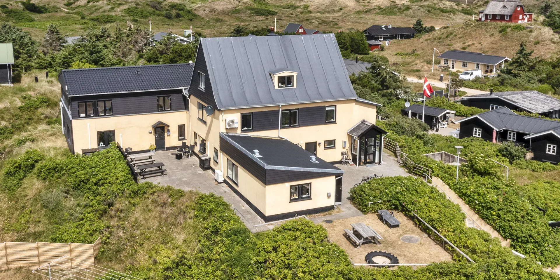 Diese kleine gemütliche Ferienwohnung befindet sich in der 1. Etage eines Mehrfamilienhauses in Südwestlage und ist für 4 Personen ausgestattet. Der Strand ist nur 200 Meter entfernt und in ein paar Minuten fussläufig zu erreichen. Auf der Rückseite des Hauses befindet sich eine Metalltreppe, die dann zur Wohnung führt. Der Wohn- und Essbereich ist offen gehalten und mit dem kleinen Küchenbereich verbunden. Das deutsche Fernsehprogramm empfangen Sie über eine Parabolantenne. Es befindet sich eine Warmepumpe im Ferienhaus. Mit dieser Warmepumpe haben sie die Möglichkeit die Stromkosten zu senken, denn die Warmepumpe ist energiesparend. Ein toller Ausblick über die Dünnlandschaft ist gewährleistet. Die Küche ist einfach gehalten und sie verfügt über einen Herd mit Cerankochfeld, einem Backofen und einer Kühl- und Gefrierkombination. Des weiteren befindet sich eine Geschirrspülmaschine in der Küche. Dieser gesamte Bereich, sprich Wohn- und Essbereich, sowie der Küchenbereich, ist mit einem hellen Laminatboden verlegt worden. Das Duschbad verfügt über ein WC, ein Handwaschbecken und eine Dusche. Es stehen den Gästen zwei Schlafzimmer zur Verfügung: DB + DB. In den Schlafzimmern ist ein neuer Teppichboden verlegt. Im Eingangsbereich haben Sie Platz für Ihre Garderobe und Schuhe. Auch hier ist der Fußboden mit Laminat versehen. Es sind max. zwei Hunde erlaubt. Katzen sind nicht erlaubt. Rauchen ist nicht erlaubt. Die Wohnung verfügt über einen Internet-Anschluss (W-Lan). Das Mehrfamilienhaus ist 1937 erbaut worden. Mehrere Gemeinschaftsterrassen für einen schönen Grillabend oder zur Kaffeezeit stehen Ihnen am Haus zur Verfügung. Ein Grill steht der Gemeinschaft auch zur Verfügung. Diese Wohnung wurde in 2019 renoviert. Gratis Eintritt Oksbøl Badeland in 2026.