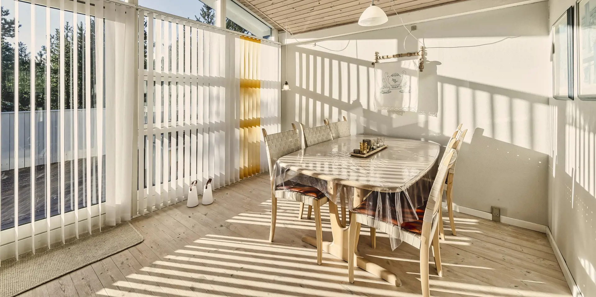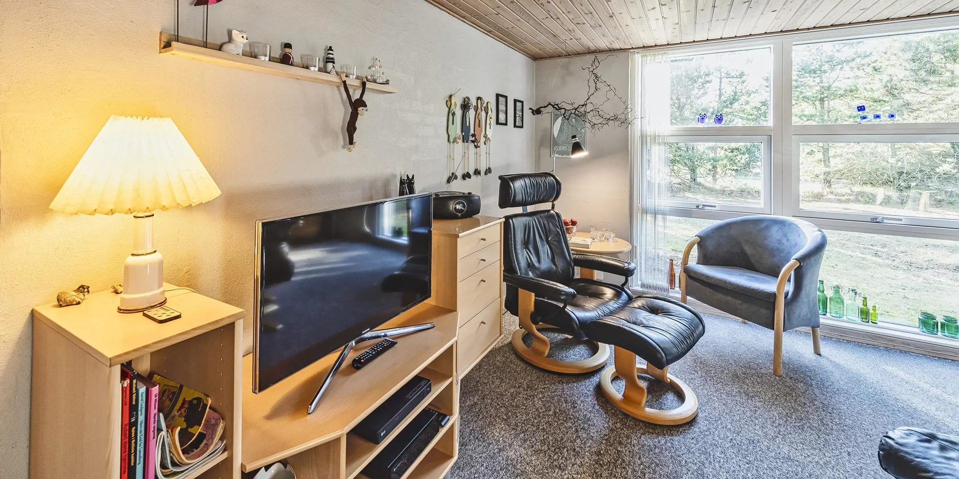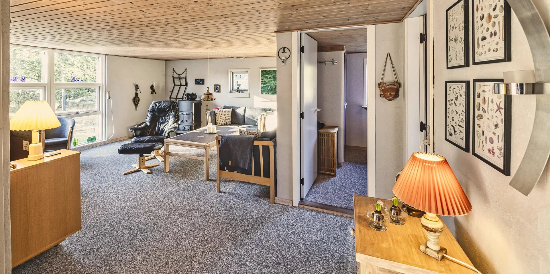 Das Ferienhaus mit Namen ”Tex Bo” befindet sich auf einem großzügigem Rasengrundstück und ist für 6 Personen ausgestattet. Der Strand ist ca. 1,5 Km vom Ferienhaus entfernt. Der Wohnbereich ist mit einem Teppichboden ausgestattet. Von hier haben Sie auch Zugang zu einem der drei Schlafzimmer und ebenso zum Badezimmer. Im Wohnzimmer befindet sich ein Mørso-Kamin. Dieser spendet eine angenehme Wärme und Gemütlichkeit. Das Fernsehprogramm empfangen Sie über Stofa, daher sind nur 5-8 deutsche Kanäle zu empfangen, ausserdem gibt es auch nioch Chromecast. Zu dem schicken und gemütlichen Essbereich gelangen Sie dann über eine Stufe, da der Wohnbereich neu angebaut wurde. Es befindet sich eine Warmepumpe im Ferienhaus. Mit dieser Warmepumpe haben sie die Möglichkeit die Stromkosten zu senken, denn die Warmepumpe ist energiesparend . Essbereich ist mit einer Holzvertäfelung versehen und hat einen PVC-Bodenbelag. Am Esstisch ist genügend Platz für alle Bewohner des Hauses. Von hier gelangen Sie auch in den schönen gemütlichen Wintergarten mit einer großer Fensterfront, Terrassentür und Holzfußboden. Die Kühl- und Gefrierkombination steht hier an der Wand zwischen der Küche und einem Schlafzimmer. Vom Esszimmer gelangen Sie dann in die Küche und in ein weiteres Schlafzimmer. Die Küche wurde 2023 neu gemacht sowie der Eingangsbereicht. Die Küche verfügt über einen Herd mit Cerankochfeld und einem Backofen und eine Geschirrspülmaschine. Eine sogenannten Stalltür öffnet einen Ausgang zu einem kleinen überdachten Terrassenbereich. Das Badezimmer verfügt über ein Handwaschbecken, ein WC und eine Dusche. Es stehen den Gästen insgesamt drei Schlafzimmer zur Verfügung: DB + 2B + 3B. Der Terrassenbereich beim Wintergarten ist teilweise geschlossen. Es sind max. zwei Haustiere erlaubt mit einer max. Rückenhöhe von 40 cm. Es gibt eine Ladestation für El-Fahrzeuge am Ferienhaus. Das Ferienhaus ist 1967 erbaut worden und in 1996 renoviert.