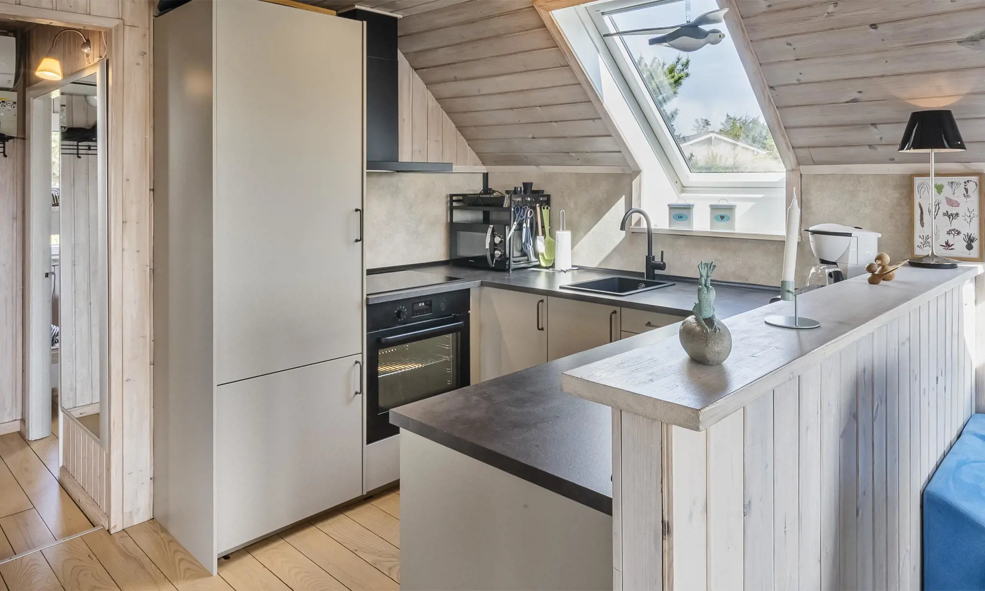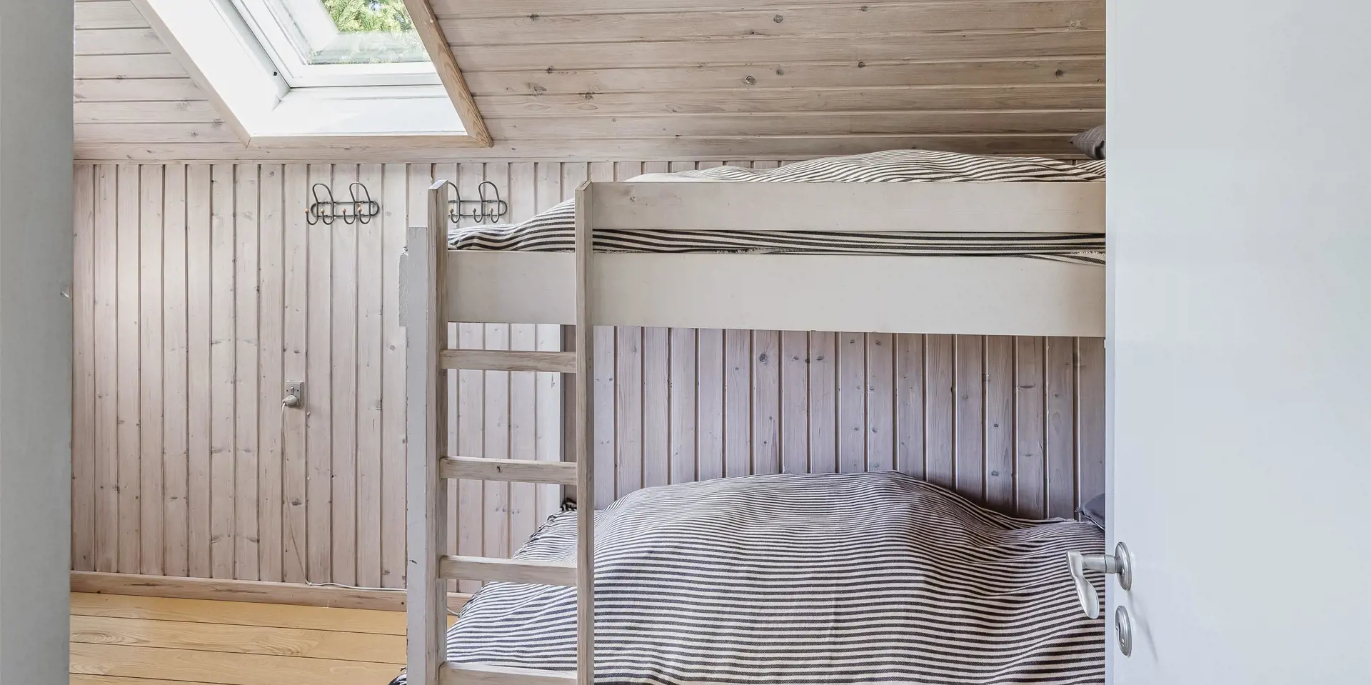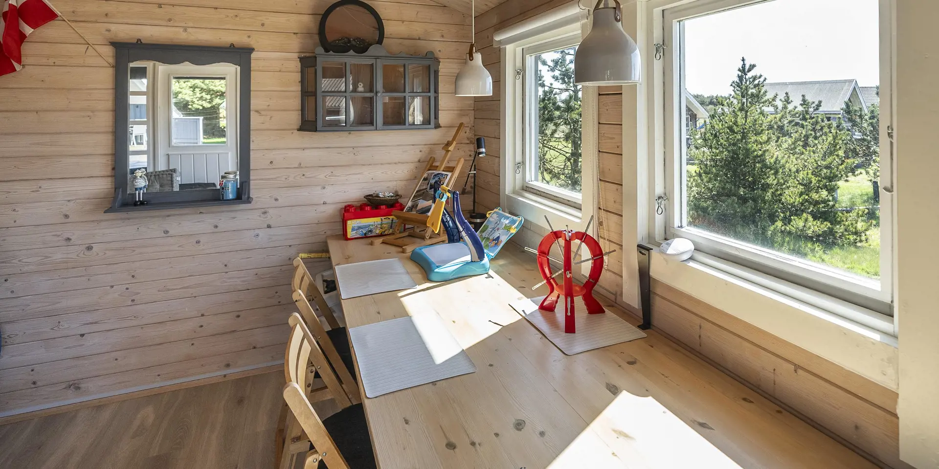 Hell und freundliches Ferienhaus Stadtnah gelegen auf einem grosszügigem Rasengrundstück und direkt am Ålestrømmen. Hier kommt das Rotwild nah an die Ferienhäuser und Sie können sie dann hautnah erleben. Das Ferienhaus ist für 6 Personen ausgestattet und der Strand liegt nur 250 Meter vom Haus entfernt. Durch seine vielen Dachfenster und der grossen Fensterfront zum Terrassenbereich ist das Ferienhaus lichtdurchflutet. Das gesamte Ferienhaus ist mit einem Laminatboden ausgestattet, ausser das Badezimmer, das ist gefliesst. Wohn- und Essbereich sind offen gehalten. Der kleine Morsø-Kamin strahlt eine angenehme Wärme aus und spendet zusätzlich pure Gemütlichkeit. Der Kamin befindet sich gleich neben der Sitzgruppe. Zum Abend hin ein Gläschen Wein und das Lodern der Flammen beobachten, Erholung pur. Es befindet sich eine Warmepumpe im Ferienhaus. Mit dieser Warmepumpe haben sie die Möglichkeit die Stromkosten zu senken, denn die Warmepumpe ist energiesparend. Das Fernsehprogramm empfangen Sie über eine Parabolantenne und zusätzlich ist auch Smart-TV zu empfangen. Es sind nur begrenzt deutsche Programme zu empfangen. Auf der anderen Seite von der Sitzgruppe befindet sich der Essbereich. Ein Tisch mit Stühlen und einer Bank stehen den Gästen hier zur Verfügung. Genügend Platz für alle Bewohner und auch von hier können die Flammen im Kamin begutachtet werden. Der Küchenbereich ist zum Wohnbereich mit einem halbhohen Tresen abgegrenzt. Die Küche ist mit einem Herd mit Cerankochfeld, einem Backofen, einer Geschirrspülmaschine, einer Mikrowelle und einem Kühlschrank ausgestattet. Ein zusätzlicher Gefrierrschrank befindet sich im Schuppen. Das Ferienhaus verfügt über zwei Schlafzimmer: 2B + 4B. Das Eine davon ist mit zwei Einzelbetten, die auch zu einem Doppelbett zusammen gestellt werden können, ausgestattet und das Andere hat zwei mal Etagenbetten, also Schlafplätze für 4 Personen, mit einer max. Länge von 180 cm je Koje. In dem Anneks befindet sich ein weiteres Schlaf/Spielezimmer, das aber nicht zusätzlich an 2 Personen mehr genutzt werden kann und darf. Es dient lediglich als Spielmöglichkeit für die Kinder. Die Kinder sind am Spielen im Trockenen und die Eltern ungestört. Das Badezimmer ist mit einem Handwaschbecken, einem WC und einer Dusche ausgestattet. Die Waschmaschine steht den Gästen auch zur Verfügung und ist hier im Bad untergebracht. Das Ferienhaus verfügt über einen Internet-Anschluss (W-Lan). Es sind keine Haustiere erlaubt und das Rauchen im Anneks und im Ferienhaus ist auch nicht erlaubt. Das Ferienhaus ist 1980 erbaut worden und in 2019 renoviert. Der Terrassenbereich ist geschlossen und sogar ein kleiner Teil überdacht. Ausserdem steht ein Schaukelstativ für die Kleinen Gäste auf dem Grundstück bereit. Das Grundstück ist auch grosszügig und hier können die Kleinen toben und Ballspielen. Im Schuppen befinder ein Gefrierschrank.Für das Haus fallen zusätzlich Wasserkosten an.