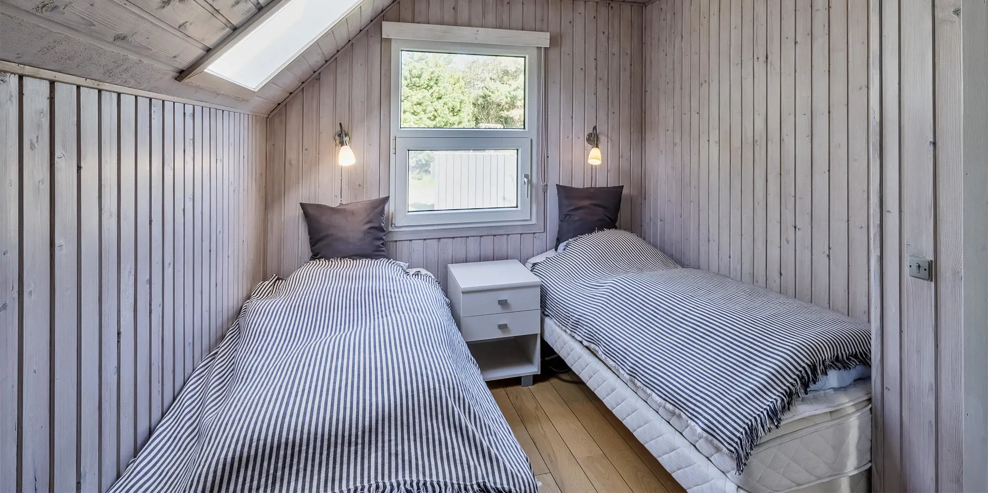 2 Schlafzimmer. 1 mit 2 Einzelbetten (je 90x200 cm) 1 mit 2 Etagenbetten.