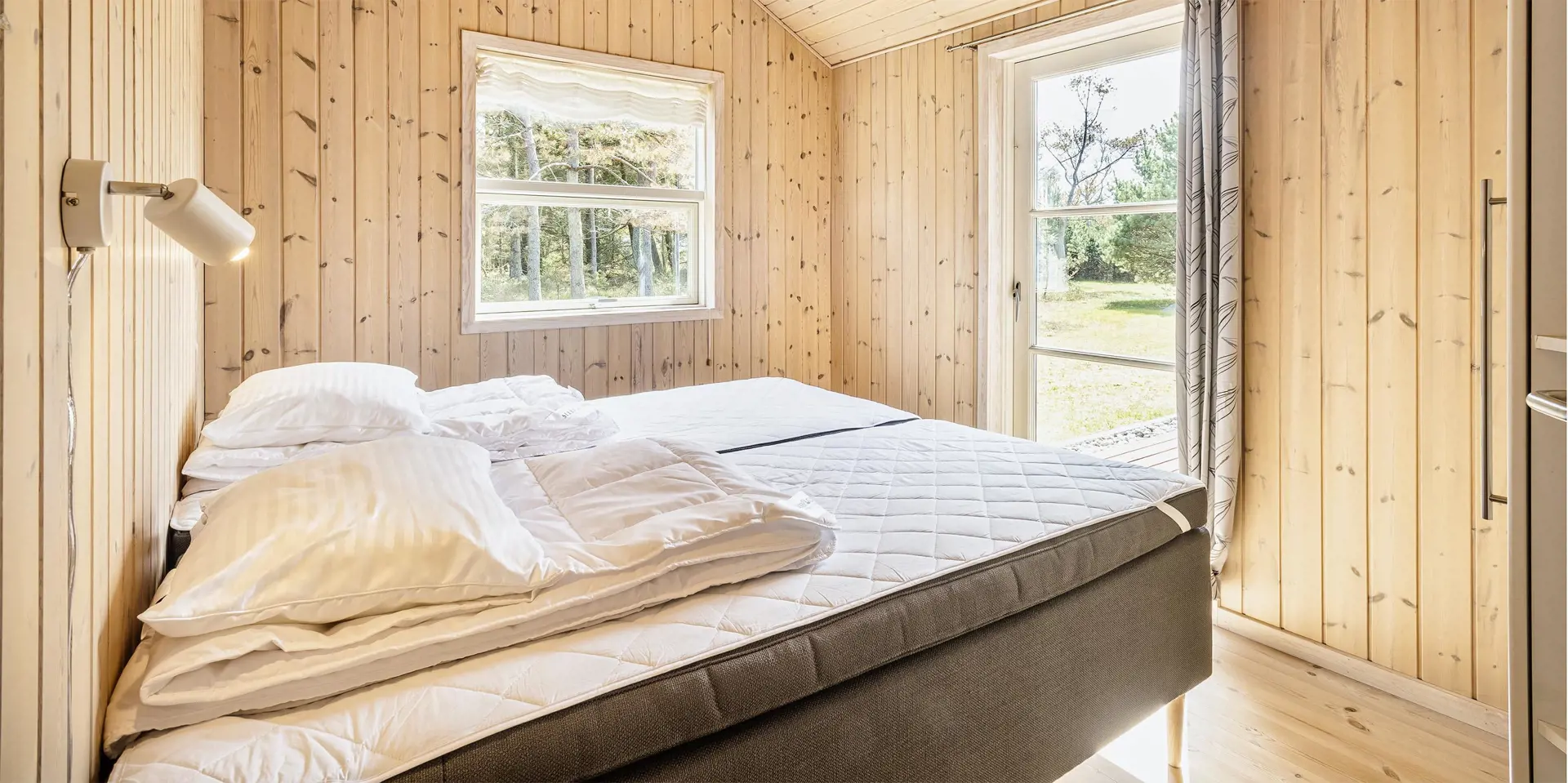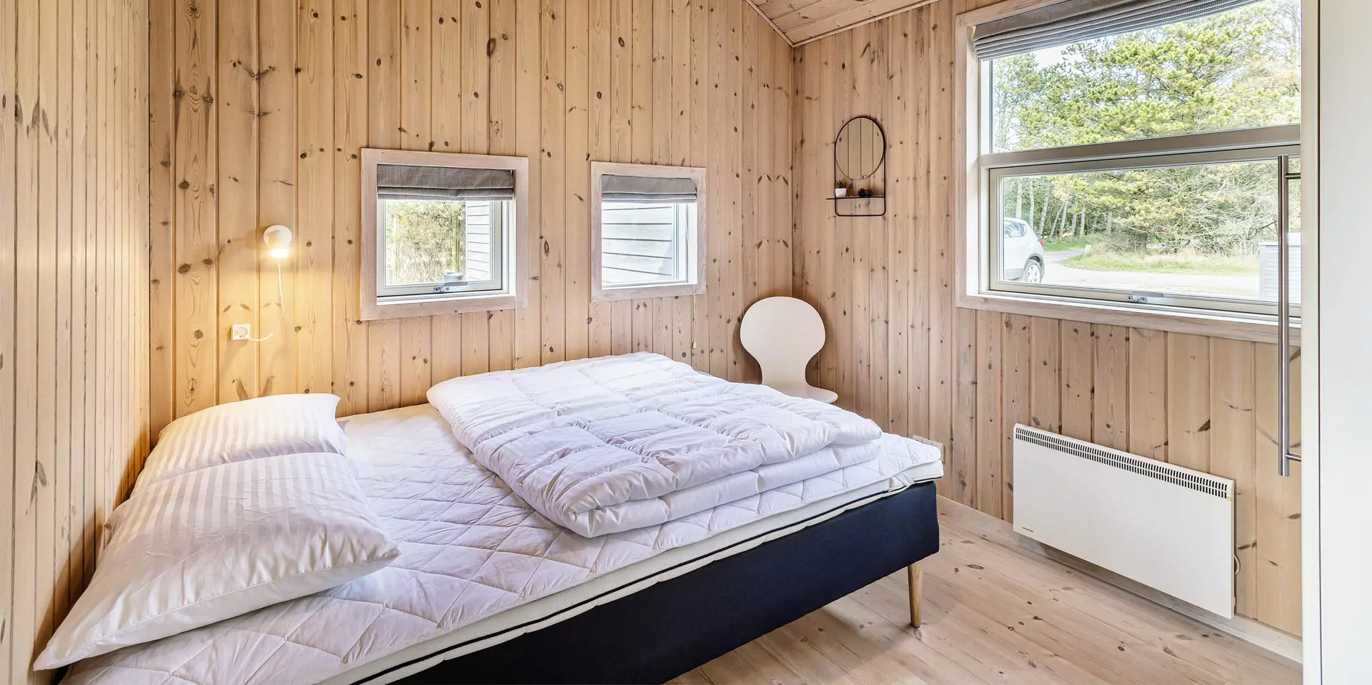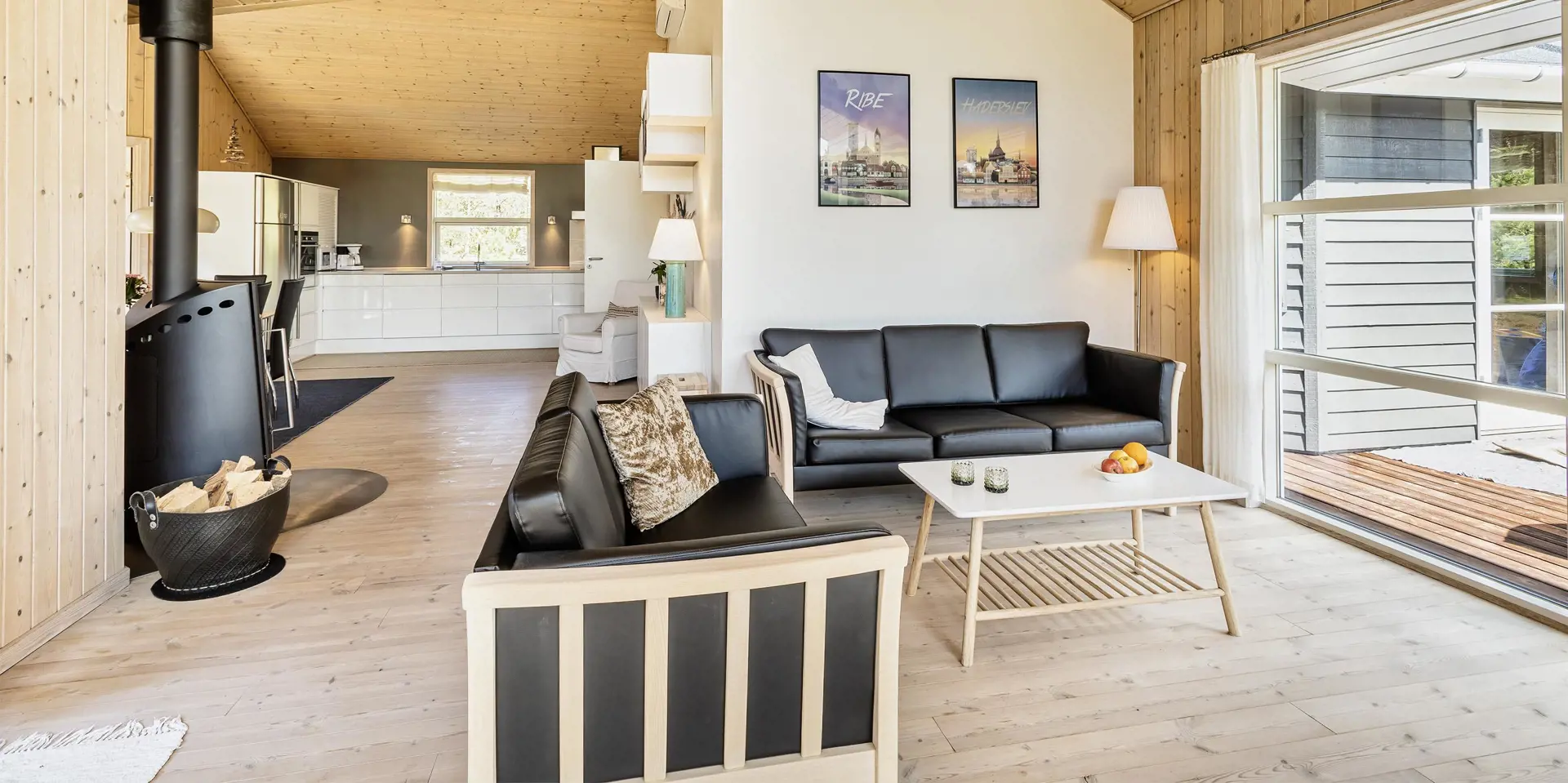 Helles und lichtdurchflutetes Ferienhaus auf einem schönen Rasengrundstück gelegen. Das Ferienhaus ist für 6 Personen ausgestattet. Der Strand ist ca. 1,5 km vom Haus entfernt. Das Ferienhaus ist komplet mit einem Holzfussboden verlegt, ausser dem Bereich des Bades und dem Eingangsbereich. In das Wohnzimmer kommt viel Licht durch die grossen hohen Fensterfronten und bietet direkten Blick auf das von Bäumen umgebene Grundstück. Ein Kamin spendet eine angenehme Wärme und Gemütlichkeit. Das Fernsehprogramm empfangen Sie über Stofa, derher können nur 5-8 deutsche Kanäle empfangen werden. Die offene Küche lädt zum Kochen ein und bietet alles was das Herz begehrt. Die Küche verfügt üben einen Herd mit Cerankochfeld, einem Backofen in arbeitshöhe, einer Geschirspülmaschine, einer Mikrowelle und einer Kühl- und Gefrierkombination. An dem Essplatz zwischen Küche und Wohnbereich sind Sie mitten im Geschehen. Das mit hellen Fliesen ausgestattete Badezimmer verfügt über ein Handwaschbecken, einem WC und einer Dusche. Fussbodenheizung befindet sich im Badezimmer. Es stehen den Gästen drei Schlafzimmer zur Verfügung: DB + 2B + 2B. Im Ferienhaus befindet sich eine Waschmaschine und ein Trockner zur freien Benutzung. Auf der grosszügigen Holzterrasse finden alle Bewohner das Hauses genügend Platz. Ein kleiner Teil Teil der Terrasse ist sogar überdacht. Ein Carport steht für Ihr Fahrzeug auf dem Grundstück bereit. Im Schuppen steht zwei Fahrräder, die verwendet werden dürfen. Die Fahrräder sollen in gleichem Zustand hinterlassen werden, in dem sie vorgefunden werden. - aber für den Zustand übernehmen wir keine Haftung. Es sind keine Haustiere erlaubt. Bei diesem Ferienhaus sind mit Zusatzkosten für den Wasserverbrauch zu rechnen. Das Ferienhaus ist 2003 erbaut worden.