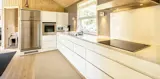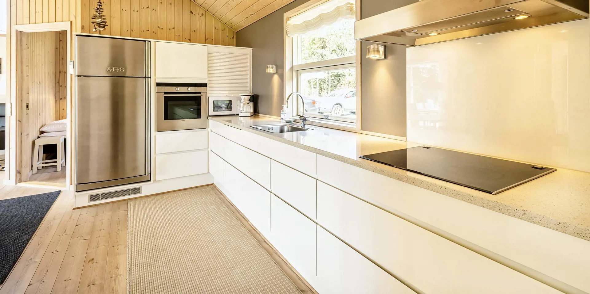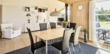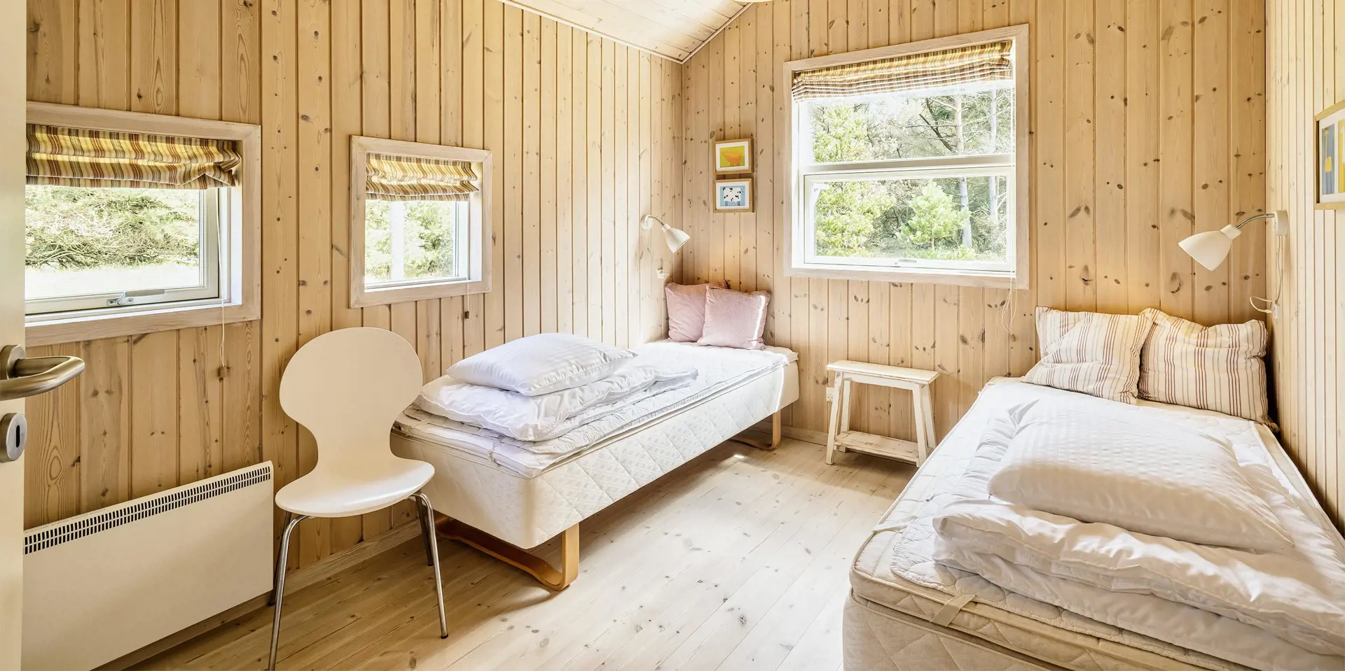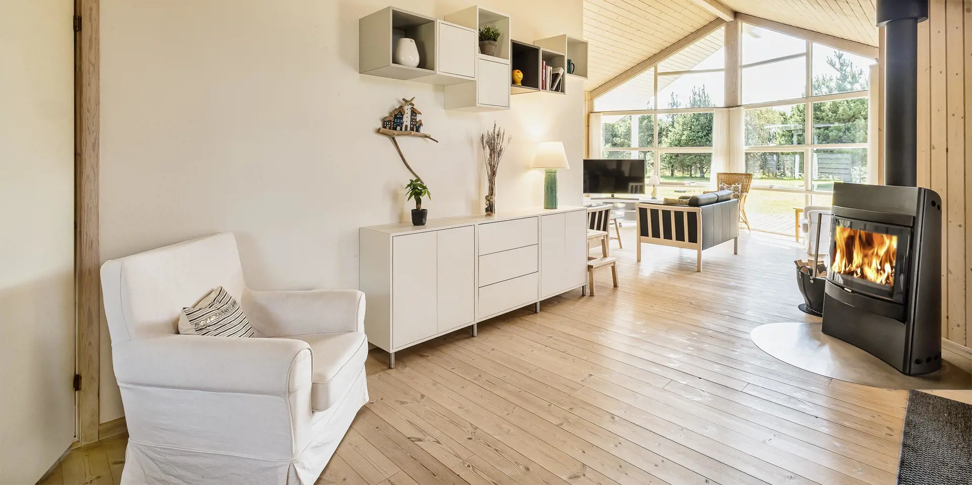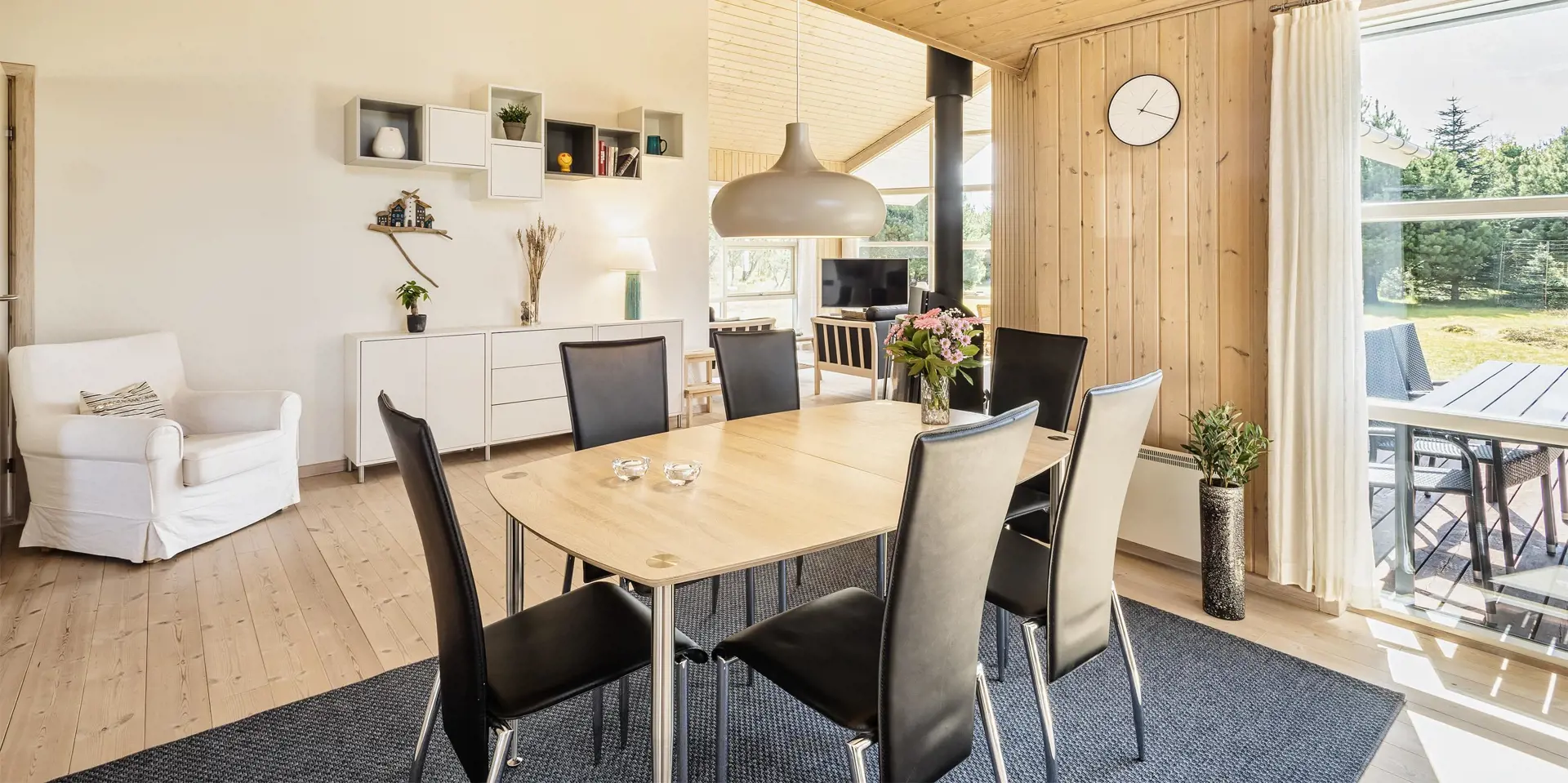 Helles und lichtdurchflutetes Ferienhaus auf einem schönen Rasengrundstück gelegen. Das Ferienhaus ist für 6 Personen ausgestattet. Der Strand ist ca. 1,5 km vom Haus entfernt. Das Ferienhaus ist komplet mit einem Holzfussboden verlegt, ausser dem Bereich des Bades und dem Eingangsbereich. In das Wohnzimmer kommt viel Licht durch die grossen hohen Fensterfronten und bietet direkten Blick auf das von Bäumen umgebene Grundstück. Ein Kamin spendet eine angenehme Wärme und Gemütlichkeit. Das Fernsehprogramm empfangen Sie über Stofa, derher können nur 5-8 deutsche Kanäle empfangen werden. Die offene Küche lädt zum Kochen ein und bietet alles was das Herz begehrt. Die Küche verfügt üben einen Herd mit Cerankochfeld, einem Backofen in arbeitshöhe, einer Geschirspülmaschine, einer Mikrowelle und einer Kühl- und Gefrierkombination. An dem Essplatz zwischen Küche und Wohnbereich sind Sie mitten im Geschehen. Das mit hellen Fliesen ausgestattete Badezimmer verfügt über ein Handwaschbecken, einem WC und einer Dusche. Fussbodenheizung befindet sich im Badezimmer. Es stehen den Gästen drei Schlafzimmer zur Verfügung: DB + 2B + 2B. Im Ferienhaus befindet sich eine Waschmaschine und ein Trockner zur freien Benutzung. Auf der grosszügigen Holzterrasse finden alle Bewohner das Hauses genügend Platz. Ein kleiner Teil Teil der Terrasse ist sogar überdacht. Ein Carport steht für Ihr Fahrzeug auf dem Grundstück bereit. Im Schuppen steht zwei Fahrräder, die verwendet werden dürfen. Die Fahrräder sollen in gleichem Zustand hinterlassen werden, in dem sie vorgefunden werden. - aber für den Zustand übernehmen wir keine Haftung. Es sind keine Haustiere erlaubt. Bei diesem Ferienhaus sind mit Zusatzkosten für den Wasserverbrauch zu rechnen. Das Ferienhaus ist 2003 erbaut worden.