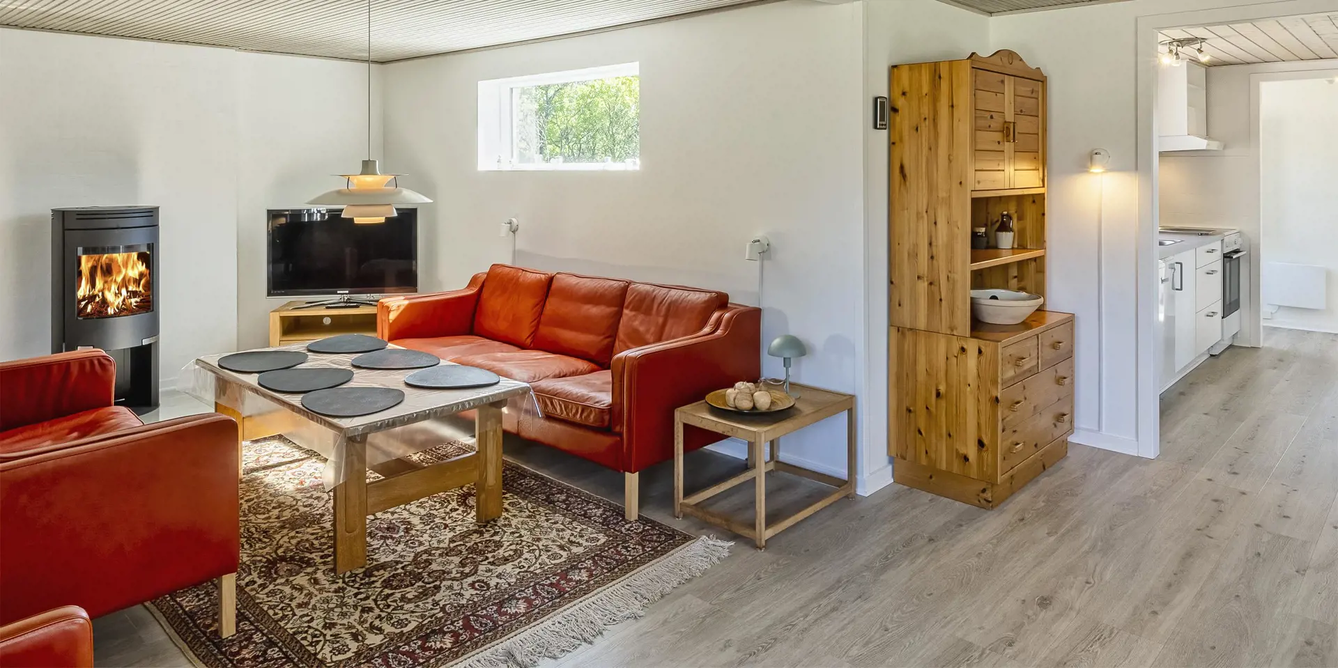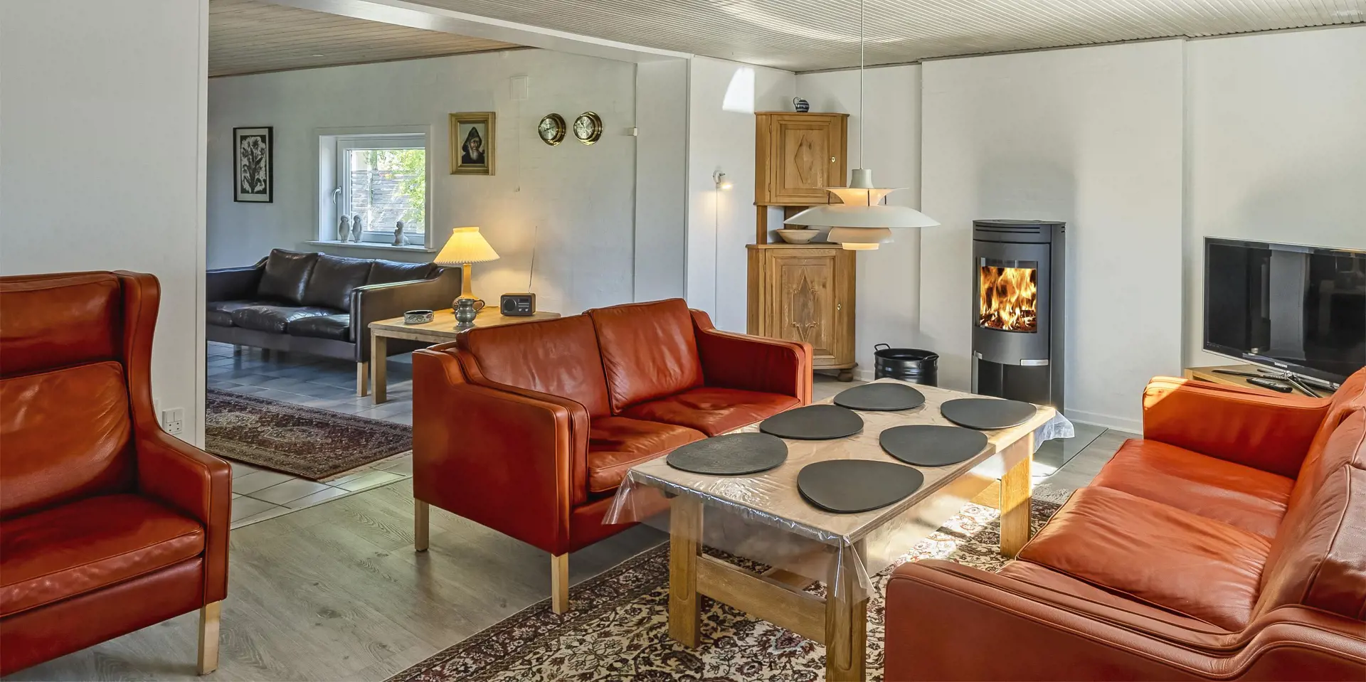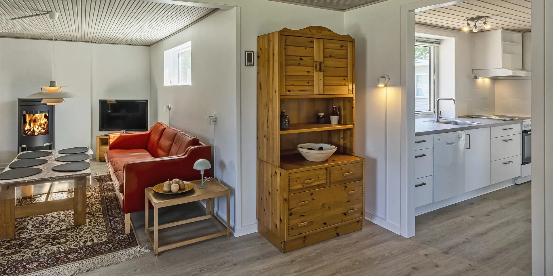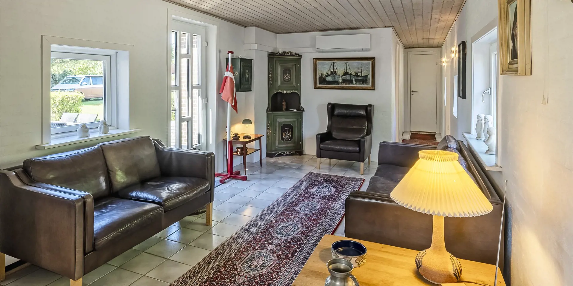 Dieses gemütliches Ferienhaus mit Namen ”Bim Bam” liegt auf einem grossen Rasengrundstück und ist für 6 Personen ausgestattet. Der Strand ist nur 1,5 Km vom Haus entfernt. Der grosszügige Wohn- und Essbereich ist offen gehalten und bietet allen Bewohner genügend Platz. Sie haben von der einen gemütlichn Sitzgruppe einen direkten Blick auf den Kamin, der sich in dem einem Wohnbereich befindet. Hier können Sie dann das Lodern der Flammen beobachten. Der Kamin spendet Ihnen eine gemütliche Atmosphäre und natürlich die Wärme. Das deutsche Fernsehprogramm empfangen Sie über Stofa, dadurch empfangen Sie nur 5-8 deutsche Kanäle. Die Küche ist separat und verfügt über einen Herd mit Ceranfeld, einem Backofen, einer Geschrirrspülmaschine, einer Mikrowelle und einer Kühl- und Gefrierkombination. Es gibt ein Badezimmer und ein Gäste WC im Haus. Das Badezimmer verfügt über eine Dusche, ein Handwaschbecken und ein WC und das Gäste WC über ein Handwaschbecken und ein WC. Ausserdem ist in dem grossen Badezimmer die Waschmaschine unter gebracht. Die Küche und das Badezimmer, sowie das Gäste WC verfügen über eine Fussbodenheizung. Den Gästen stehen insgesamt drei Schlafzimmer zur Verfügung: DB + DB + 2B. Wärmepumpe. Am Ferienhaus befinden sich mehrere Terrassenbereiche, wobei auch ein Terrassenbereich überdacht ist. Das Ferienhaus verfügt über einen Internet-Anschluss (W-Lan). Das Ferienhaus liegt schön bequem in die Nähe von einen Kaufmann sowie ein Mini golf Anlage. Es sind keine Haustiere erlaubt. Das Rauchen im Fereinhaus ist nicht erlaubt. Das Ferienhaus ist 1965 erbaut worden. Es wurde 2024 drinnen renoviert und dann laufend renoviert.