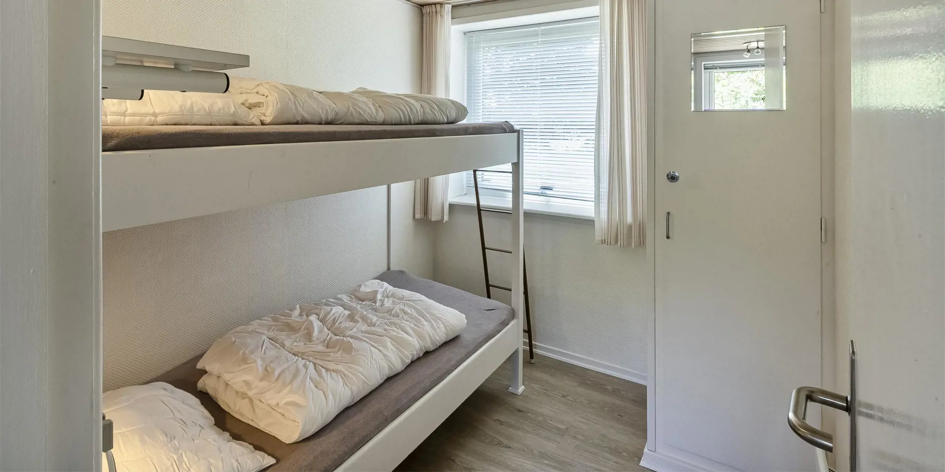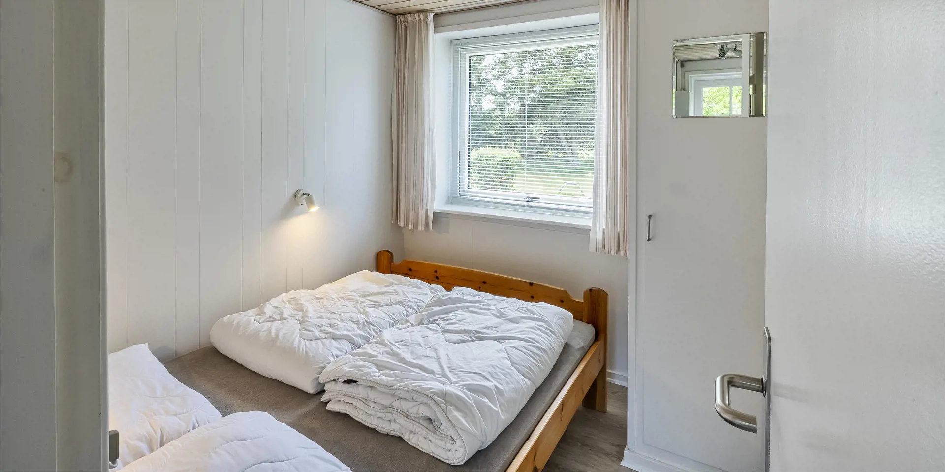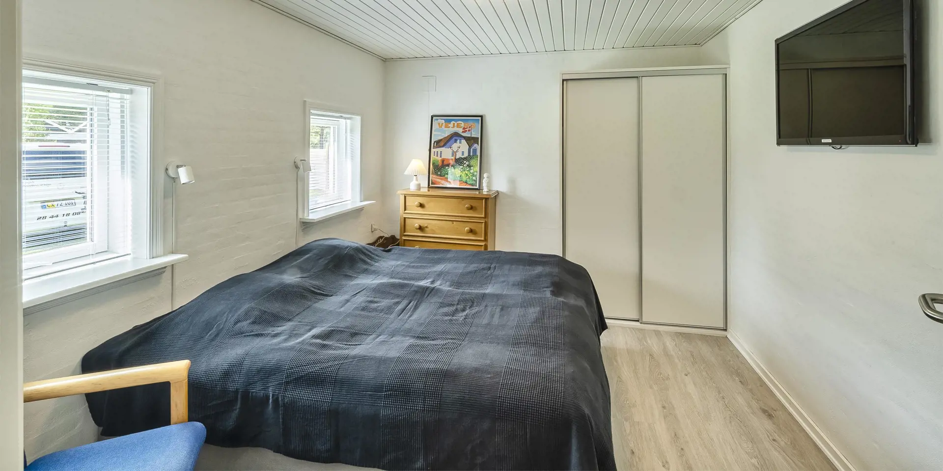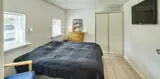 3 Schlafzimmer. 1 mit Doppelbett 180x200 cm. 1 mit kleines Dobbeltbett 120x200. 1 mit 1 Etagenbett.
