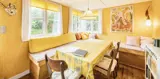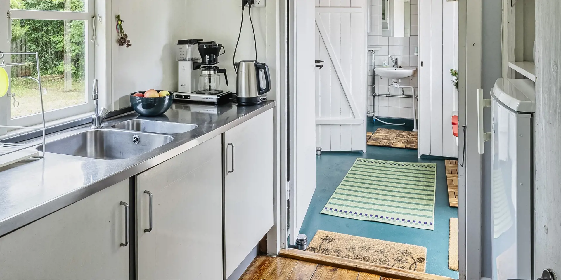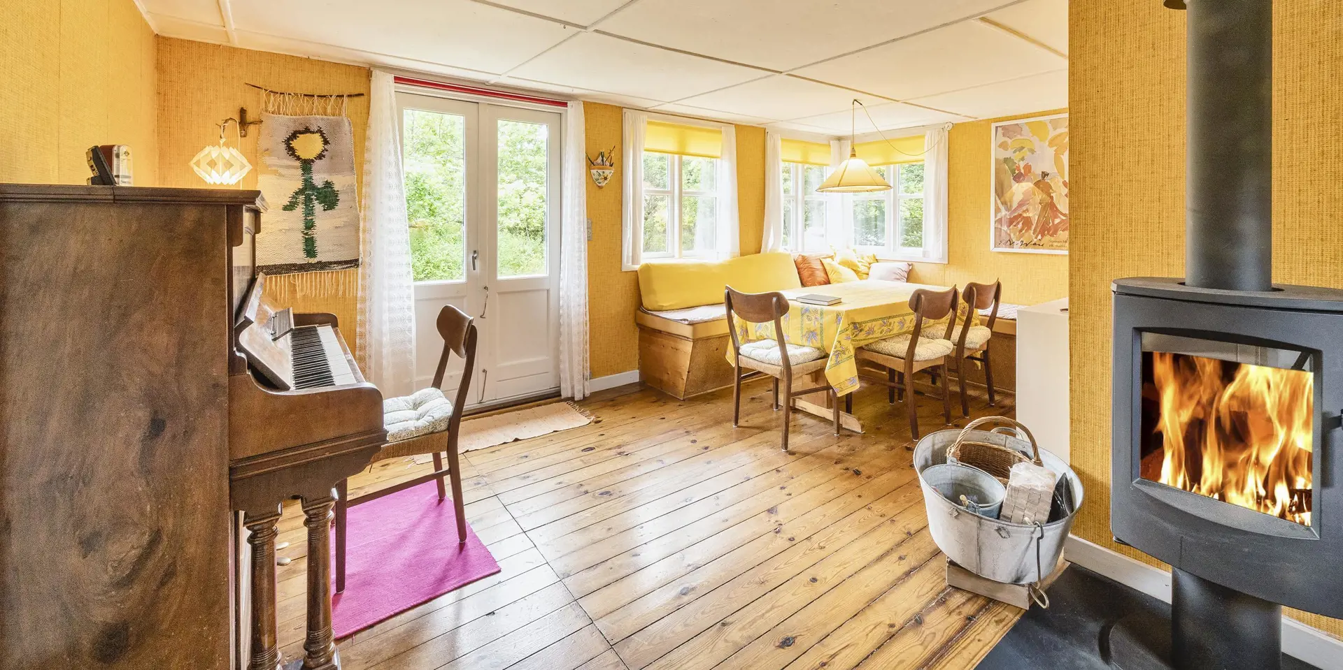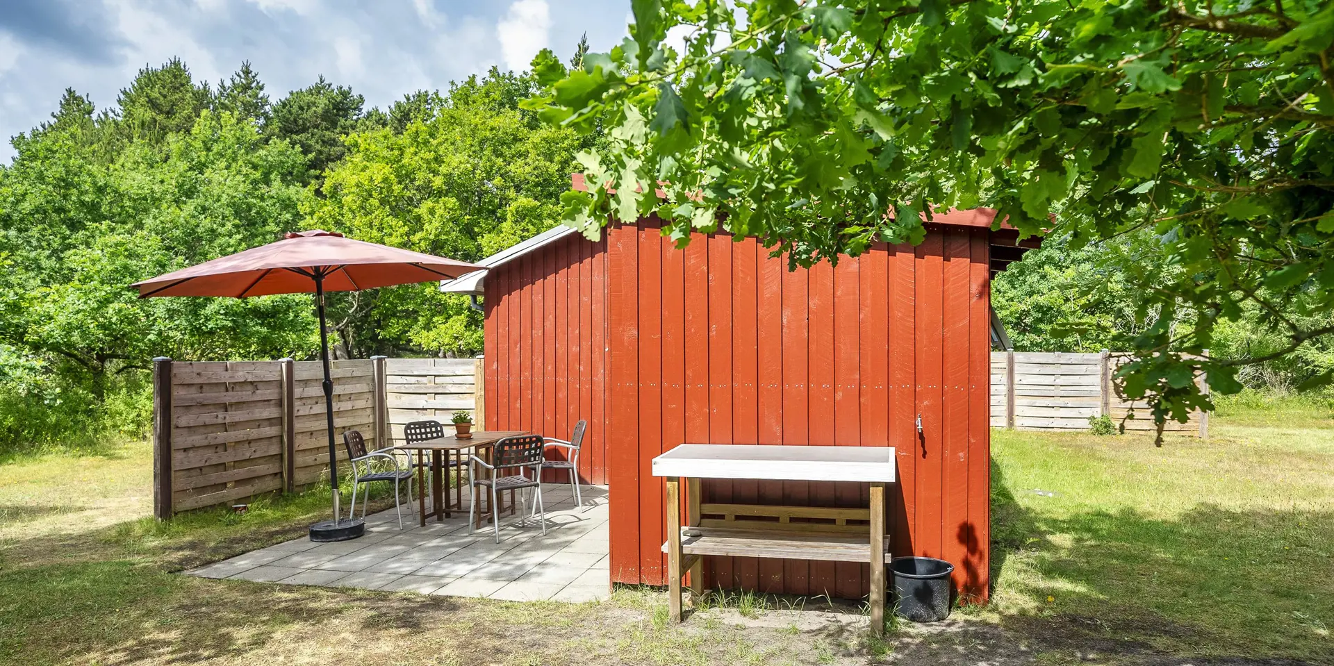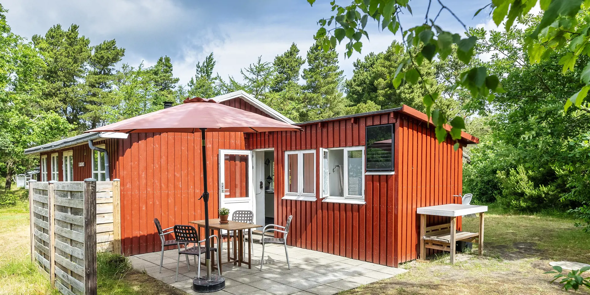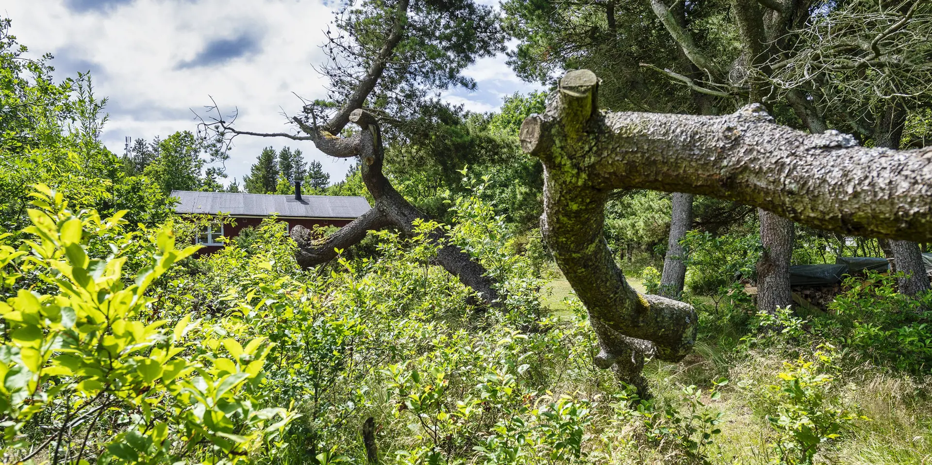 Idyllisch gelegene Waldhütte aus den 60´ern für 4 Personen ausgestattet. Das Ferienhaus trägt den Namen ”Solsikke” und ist für naturverbundene Gäste gedacht, da es in der Ausstattung primitiv und sehr einfach gehalten ist. Das Naturgrundstück ist ca. 2700 qm gross und bietet Ihnen gelegentlich ein nichteinsehbares Grundstück durch die grosszügige Bepflanzung von Bäumen und Büschen. Es liegt am Ende einer Sackgasse. Der Strand ist ca. 2 Km vom Ferienhaus entfernt. Das ganze Ferienhaus, ausser dem Bad und dem Eingangsbereich, ist mit einem Holzfussboden ausgestattet. Im Wohnbereich steht eine Ecktischgruppe mit einem alten Holztisch, ein grosses Klavier, interessant für Musiker, denn das Klavier ist funktionstücktig und einem Kamin. Das Ferienhaus hat kein Fernsehgerät, aber es verfügt über einen Internetanschluss (W-Lan 500/500 Mbit und SafeSurf). Der Kamin ist die Wärmeversorgung im Ferienhaus. Es gibt zwei kleine Schlafbereiche: DB + 3B - mit jeweils einem ¾ Dobbelbett. Ein von die Doppelbetten hat eine zusätzliche Länge von 220 cm. In dem einem Schlafzimmer befindet siche auch zusätzlich ein Etagenbett. Vom Eingangsbereich, gelangen Sie zur linken Seite in die Durchgangsküche. Der Küchenbereich verfügt über einen Herd mit Backofen und einem Kochfeld mit Platten und einem Kühlschrank, der ein kleines Gefrierfach enthält. Eine Kaffemaschine ist auch vorhanden, allerdings gibts hier im Küchenbereich kein warmes Wasser. Zur rechten Seite des Eingangsberiches kommen Sie in das Badezimmer. Badezimmer mit Dusche und Eingangsbereich wurde 2023 renoviert. Die Heizkörper sind elektrische Ölheizkörper. Angrenzend an dem Naturgrundstück haben Sie zwei Zugänge zu dem Fahrrad- und Fussweg von Vejers Strand nach Grærup Strand. Hier fahren keine Autos. Es ist nur ein Wanderweg für Fahrräder und Fussgänger, ideal um die Natur- und Tierwelt auf Ihrem Spaziergang zu beobachten. Auf dem Naturgrundstück befindet sich ein kleiner Schuppen (der ist privat) aber, der einen überdachten Vorbau hat. Hier können Sie geschützt die Sonne und die Ruhe geniessen. Einfach Erholung pur. Der Holzofen dient als Wärmequelle im Ferienhaus, ergänzt durch einen elektrischen Ölradiator. Das Badezimmer mit Dusche und Hauswirtschaftsraum wurden im Jahr 2023 renoviert und mit Luftsolarkollektoren ausgestattet. Es sind keine Haustiere erlaubt. Es stehen Ihnen 2 Parkplätze am Anfang des Grundstückes zur Verfügung. Beim Eingangsbereich befindet sich ein kleiner Terrassenbereich, der auch etwas geschützt durch einen Holzzaun ist.