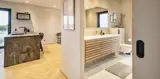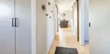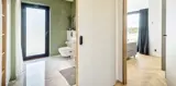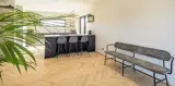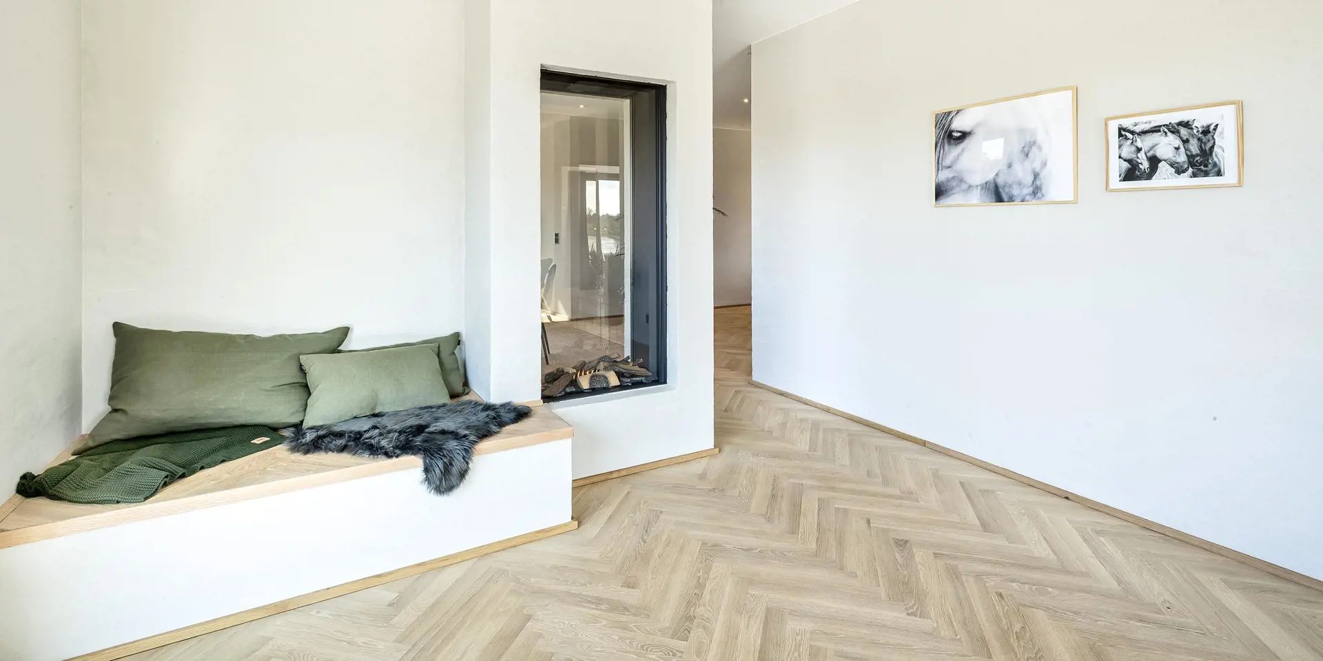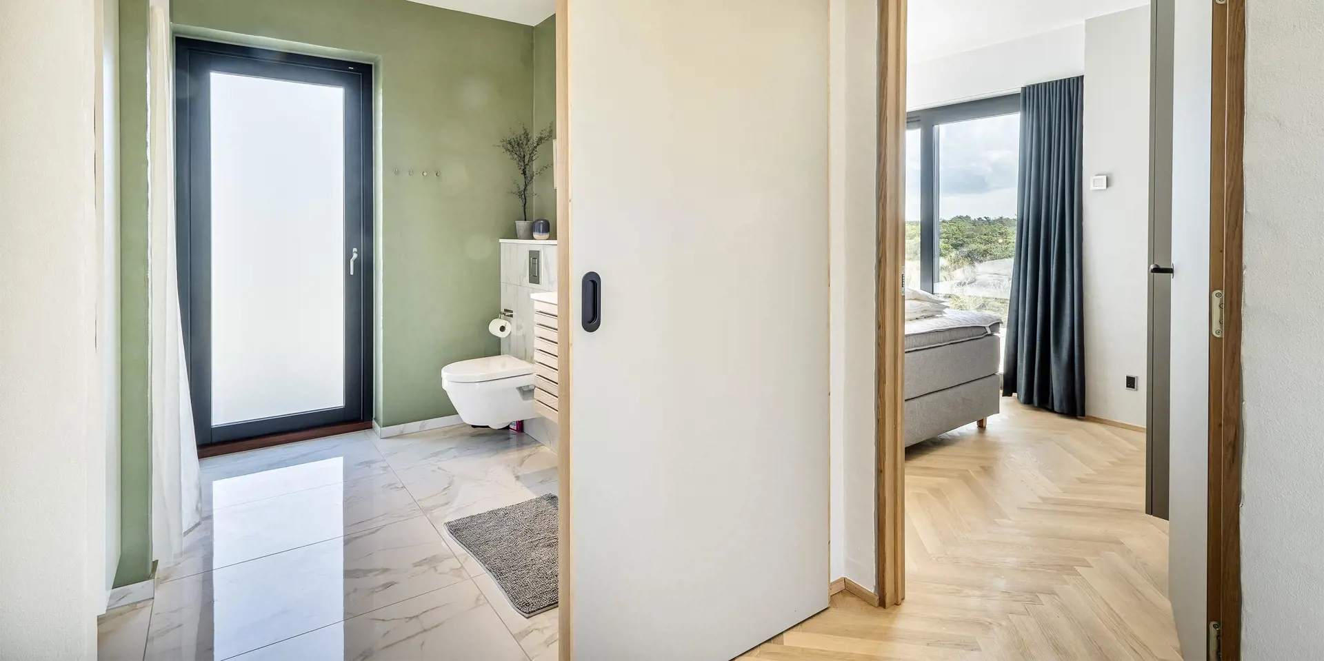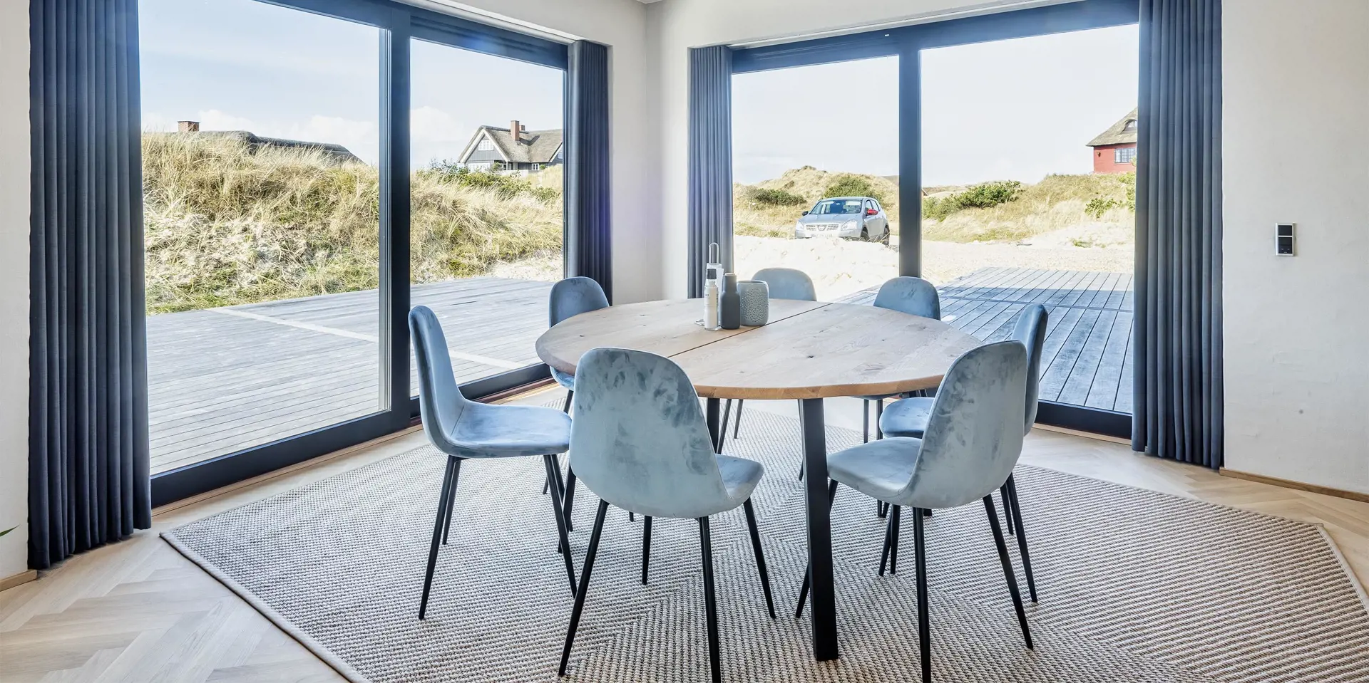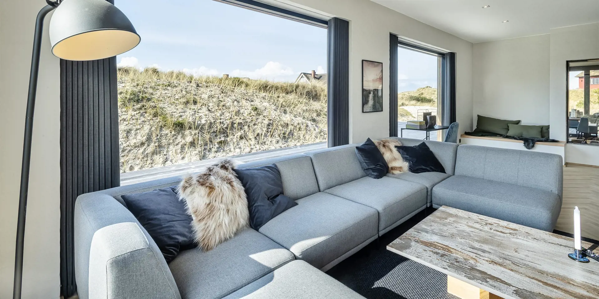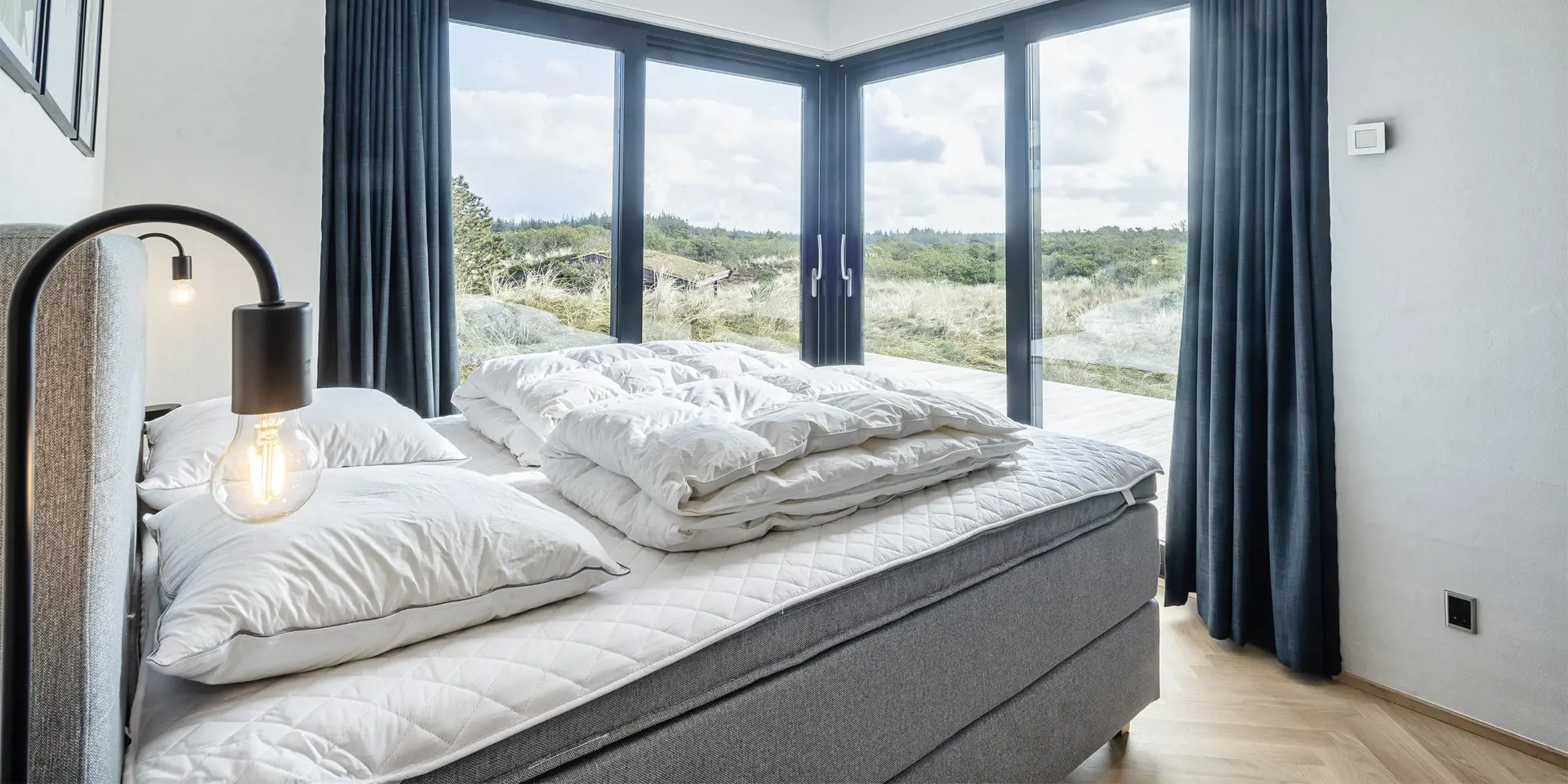 Der Eingangsbereich ist überdacht und bietet genügend Platz, sowie aussen und auch auch innen der Flurbereich. Alle Zimmer sind mit einer Schiebetür in modernen Design ausgestattet. Vom Flurbereich aus zur linken Seite befindet sich der Hauswirtschaftsraum mit der Waschmaschine, dem Trockner und grossem Garderobenplatz. Ausserdem ist hier auch genügend Platz als zusätzliche Aufbewahrungsmöglichkeit. Desweiteren auf der linken Seite befindet sich dann das Erste Schlafzimmer, ausgestattet mit Kleiderschrank und einem Doppelbett. Gegenüber befindet sich dann ein weiteres Schlafzimmer mit der gleichen Ausstattung. Neben diesem Schlafzimmer befindet sich dann ein schönes modernes Badezimmer, ausgestattet mit WC, Handwaschbecken und einer Dusche. Alles in modernem Design, Mamorfliesen und grosszügides Handwaschbecken. Nun gelangen Sie weiter in den offenen Küchenbereich mit Essplatz. Auch hier sind wieder zwei Ausgänge zur Terrasse. Die Küche ist sehr modern eingerichtet und verfügt über einen Herd mit der Dunstabzugshaube in der Mitte der Kochplatte (Induktion), einem Backofen in arbeitshöhe, einer Geschirrspülmaschine und einer Kühl- und Gefirierkombination. Gegenüber der Küche ist der Essplatz, auch hier sind wieder grosse Fensterfronten und ein wundervoller Panoramablick zu den Dünen. Abgrenzend zum Wohnbereich befindet sich dann ein Gas-Kamin, dieser ist eingemauert und wird mit Ethanol befeuert. Gas kann nicht austreten, da dieser Kamin mit Glasscheiben versehen ist. Dieser spendet eine wohlige Wärme und sehr viel Gemütlichkeit. Es liegen Holzscheite im Innenbereich, die sich verfärben und dadurch wird die Wärme abgeben. Für das Gas haben die Gäste selber die Kosten zu tragen. Neben dem Gas-Kamin zum Wohnbereich befindet sich eine kleine Bank mit Kissen und Lammfell, eine Kuschelecke, wo Sie gemütlich Ihr Buch lesen können oder dem Geschehen im Wohnbereich folgen können. Das deutsche Fernsehprogramm empfangen Sie über Stofa und daher können Sie nur 5-8 deutsche Kanäle empfangen. Ein wundervoller Blick durch die grossen Panoramafenster spendet Erholung und Entspannung pur mit weitere Ausgängen zur schöne Holzterrasse. Vom Wohnbereich gehen dann weitere zwei Schlafzimmer, mit je einem Doppelbett ab. Auch ein zweites grozzügiges Badezimmer, modernem Design und ausgestattet mit WC, Handwaschbecken und Dusche. Ebenfalls im gleiche Stil wie das Badezimmer am Eingangsbereich. Zwei der Schafzimmer verfügen jeweils über ein Fernsehgerät mit Smart TV und sind in der Ausstattung und farbe identisch. Das Ferienhaus verfügt über einen Internetanschluss. Es sind keine Haustiere erlaubt. Das Rauchen im Ferienhaus ist auch nicht erlaubt. Eine Vorichtung für das Aufladen von Elektroautos ist vorhanden. 4 schlafzimmer: DB + DB + DB + DB. Das Ferienhaus ist Baujahr 2020.