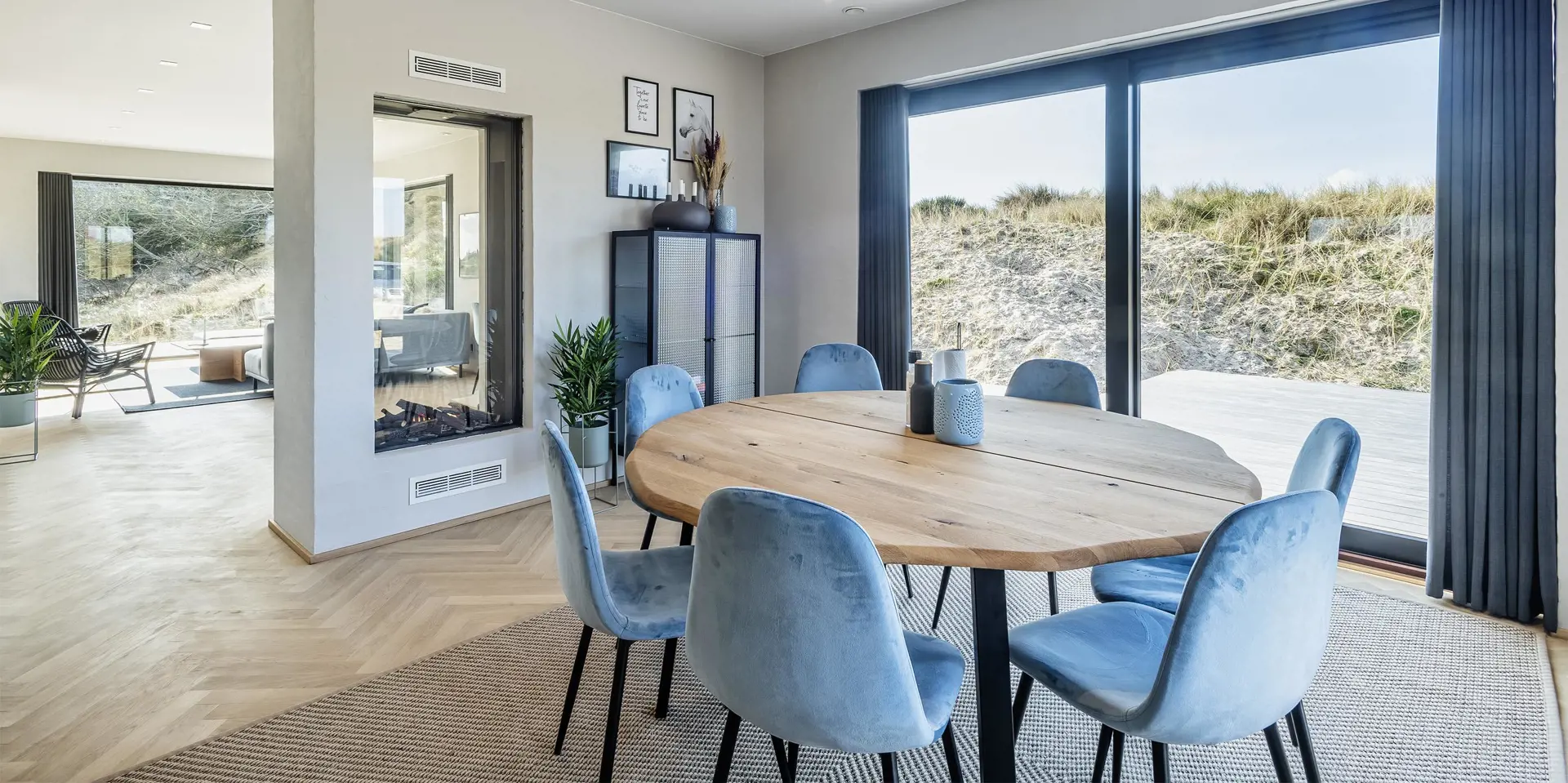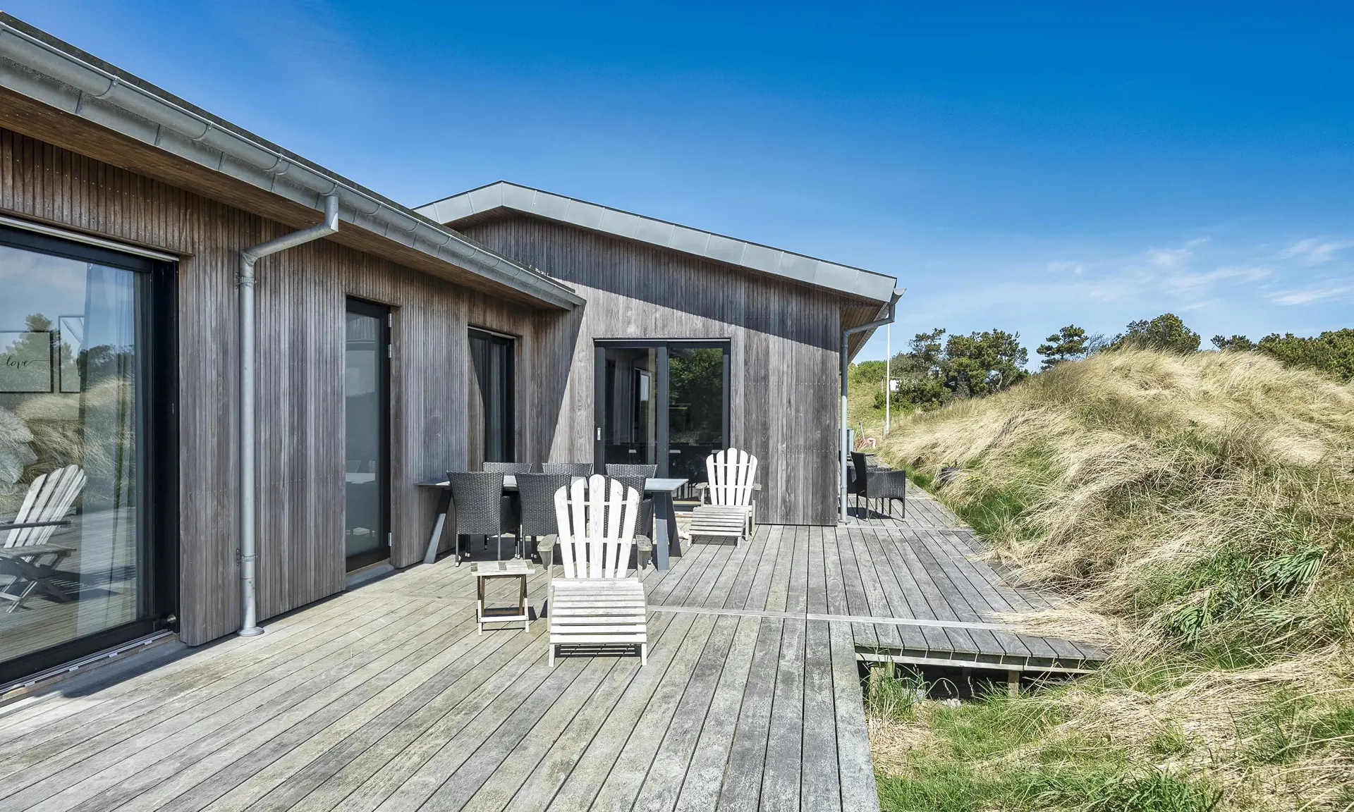 Spannender Neubau für anspruchsvolle Vejersliebhaber. Dieses Ferienhaus ist mit den Besten Qualitätsmaterialien erbaut worden. Das Ferienhaus verfügt im ganzen Haus über eine Fussbodenheizung. Diese wird durch die Luft/Warmeanlage gesteuert und ist daher sehr energiesparend. Das Ferienhaus ist modern und mit einem eigenen Stil und Trend ausgestattet. Alles ist farblich abgestimmt und passt zusammen, aussen sowie innen. Das Ferienhaus ist für 8 Personen und der Strand ist ca. 300 Meter vom Ferienhaus entfernt. Durch die grossen Fensterfronten rund um das Haus, erscheint das Haus sehr lichtdurchflutet und bietet viel Helligkeit in allen Räumen. Von allen Räumen haben Sie einen direkten Zugang zu der grosszügigen Holzterrasse, die sich rundum das Ferienhaus befindet. Das Ferienhaus hat eine eigene Zuwegung (Priwatweg) und ist mit Dünen und Marhalm umgeben und liegt am Ende der Sackgasse. Es gibt Ihnen das Gefühl, das Sie sich mitten in der Dünenwelt befinden. Den Sonnenstrahlen können Sie zu allen Jahreszeiten voll und ganz auf dem grosszügen Terrassenbereich rund um das Ferienhaus geniessen… Zum Frühstück auf der Rückseite oder zur Kaffeezeit auf der vordenen Seite….Das Haus verfügt über eine Wäremrückgewinnungsanlage mit Belüftung. Der Motor dafür läuft die ganze Zeit und kann nicht abgestellt werden.