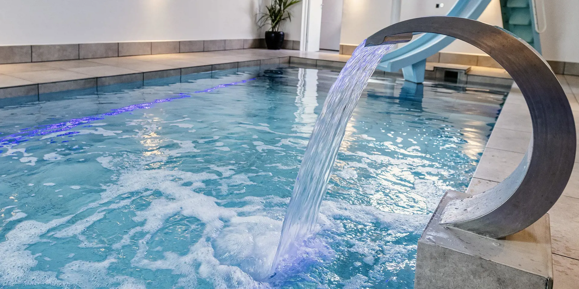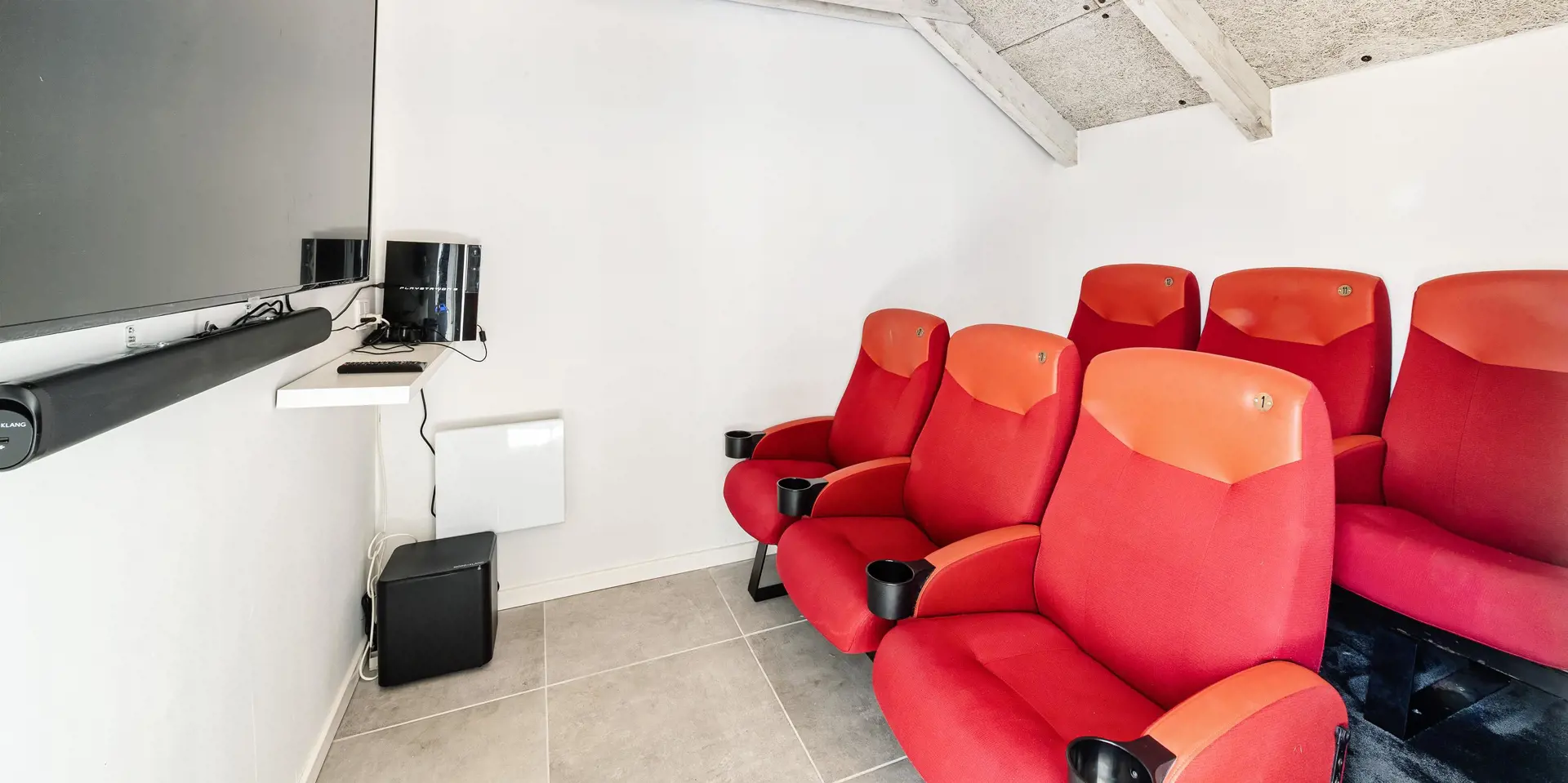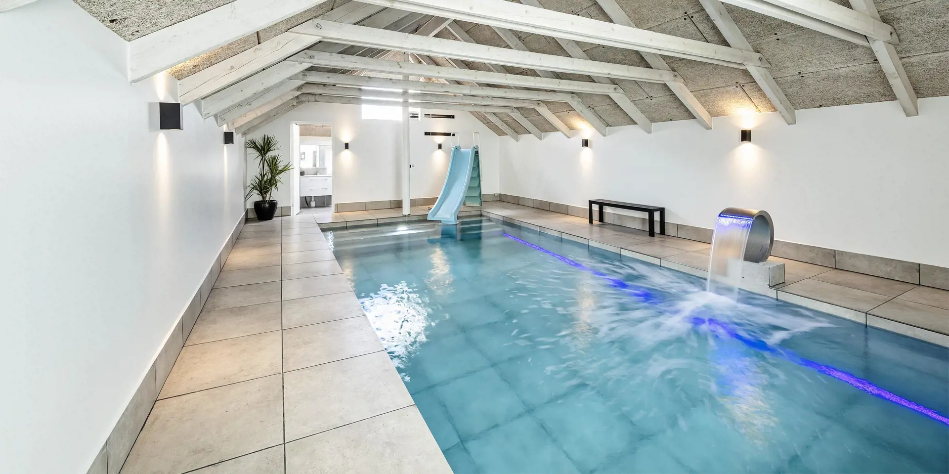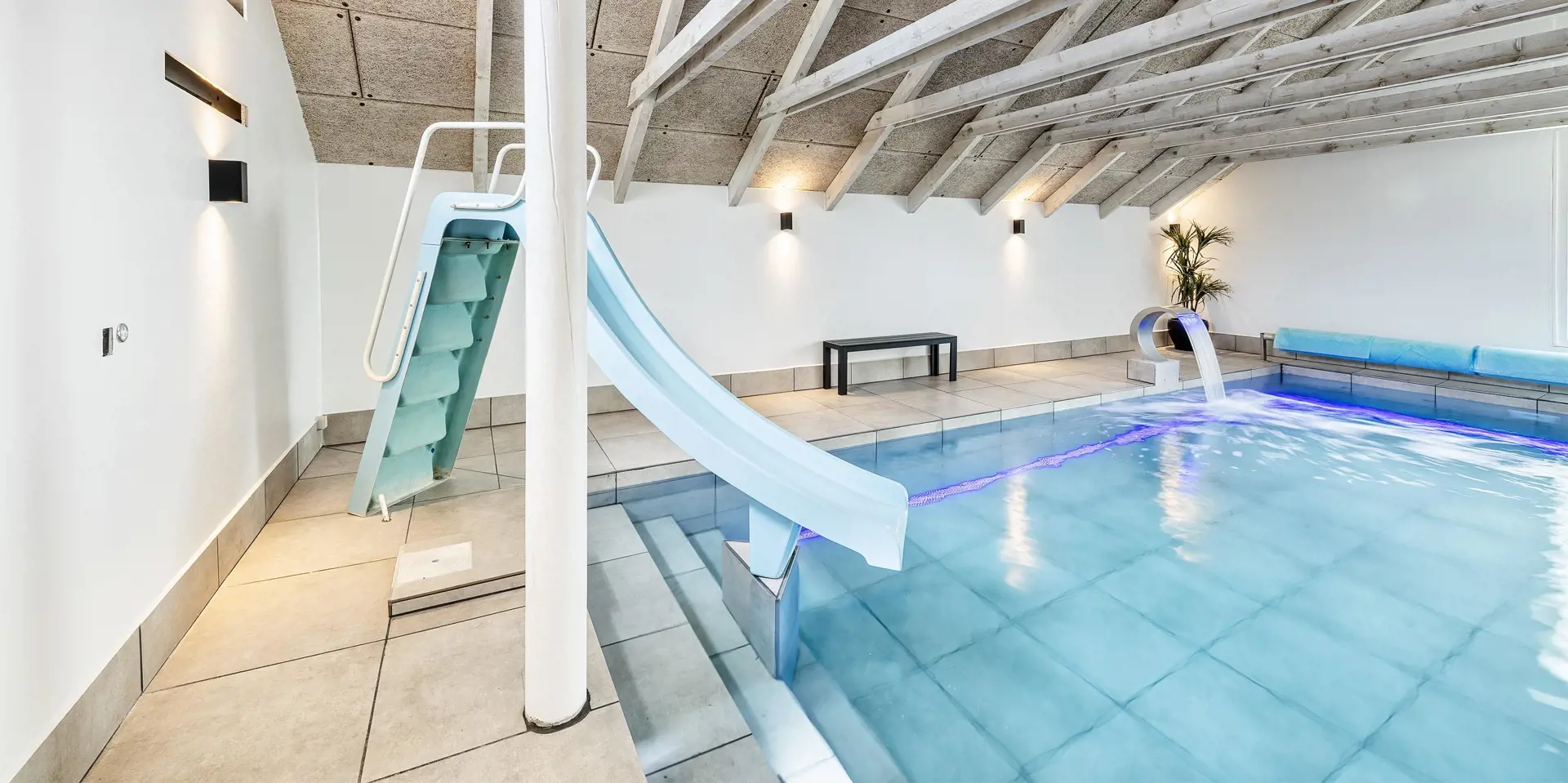 Wenn Sie dann von der Küche weitergehen gelangen Sie durch die Eingangspartie in das Nebenhaus. Sie kommen als erstes in den Aktivitätsbereich, wo Sie diverse Unterhaltungsmöglichkeiten und Spielearrangementer vorfinden, wie am Anfang des Textes beschrieben. Eine weitere Klimaanlage ist in diesem Bereich montiert. Vom Aktivitätsraum gelangen sie dann in das eigene kleine Heimkino mit 6 Sitzplätzen, wenn Sie mal in Ruhe einen Film schauen möchten. Auch ein kleines gemütliche Sofa im Bereich des Aktivitäsraumes bietet Ihnen am allgemeinen geschehen Teil zu haben und z.B. ein Brettspiel zu spielen. Und wenn sie möchten können Sie natürlich auch auf dem anderen gemütlichen Sofa die Füsse hochlegen und Ihr Buch lesen. Zur rechten Seite gelangen sie dann in den Schlafbereich. Hier stehen Ihnen weitere drei Schlafzimmer, mit je einem Doppelbett, den Gästen zur Verfügung. Auch ein weiteres Badezimmer. Auch dieses Badezimmer verfügt über ein WC, ein Hadwaschbecken und eine Dusche und hat eine Fussbodenheizung. Die Infrarotsauna, die sich angrenzend an dem Badezimmer befindet hat einen Zugang vom Aktivitätsbereich. Zur linken Seite dann gelangen sie dann in den schönen Poolbereich. Eine Rutsche und Fontäne, mit eingebauten LED-Licht, gibt dem Ganzen eine gemütliche Atmoshpäre am Abend, wenn dazu dann auch noch die Poolbeleuchtung an den Kanten angeschaltet ist. Der Pool hat eine Grösse von ca. 7,5 x 3,5 x 1,25 Meter ( Länge x Breite x Tiefe).Ein drittes Badezimmer auch mit einem WC, einem Handwaschbecken und einer Dusche ist vom Poolbereich zu erreichen. In einem der Badezimmer befindet sich eine kombienierte Waschmaschine mit Trockner. Eine dritte Klimaanlage befindet sich hier im Poolbereich.