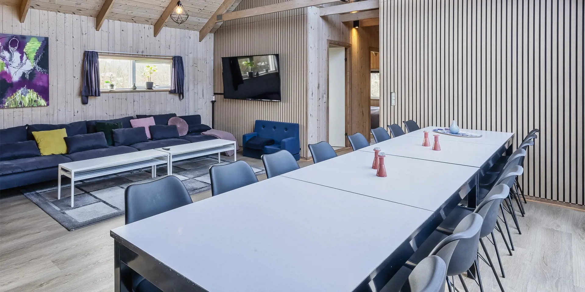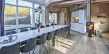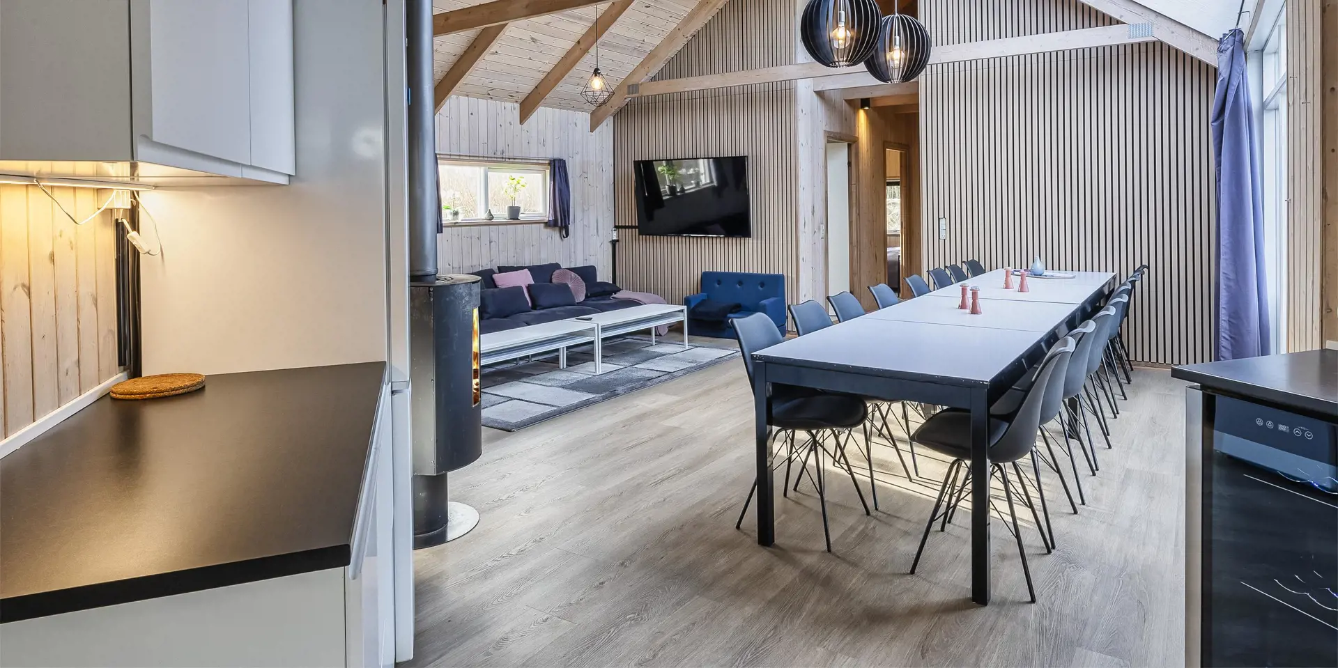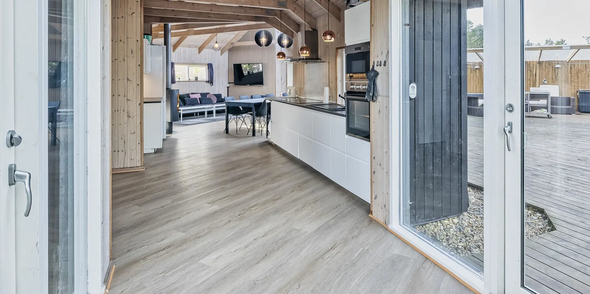 Das Ferienhaus ist 1988 erbaut worden und bekam in 2020 eine totale Renovierung. 8 Schlafzimmer: DB + DB + DB + DB + DB + DB + DB + DB. Bodenbereiche sind mit einer hellen Bodenfliese ausgestattet, bis auf die Schlafräume, die sind mit einem Teppichboden verlegt. Dieses grosse Sommerhaus ist in einem Haupthaus und Nebenhaus aufgeteilt. Im Haupthaus befinden sich fünf der Schlafzimmer und alle sind mit einem Doppelbett ausgestattet. Ebenso ist hier der grosse Wohn- und Essbereich. Dieser ist grosszügig und bietet genügend Sitzmöglichkeiten auf einem gemütlichen Modulsofa an. In der Wohnabteilung ist der Kamin aufgestellt. Dieser gibt der Räumlichkeit einen besonderen Flair. In den Abendstunden kann man dann das Lodern der Flammen beobachten dazu ein Gläschen Wein und in gemütlicher Runde kann dann nach Lust und Laune geplaudert werden. Auf dem grossen Flachbildschirm empfangen Sie auch deutsche Fernsehprogramme, Smart TV und eine Play-Station 3 steht auch bereit. Einen Aussgang zur grossen neuen Holzterrasse haben sie hier vom Wohn- und Essbereich. Es befindet sich eine Warmepumpe im Ferienhaus. Mit dieser Warmepumpe haben sie die Möglichkeit die Stromkosten zu senken, denn die Warmepumpe ist energiesparend. Gegenüber der Sitzmöglichkeit ist der Essbereich. Die zwei Esstische und Stühle befinden sich genau vor der Terrassentür. Hier haben sie einen Aussgang zur schönen neuen Holzterrasse. Durch die grosse Fensterpartie erscheint der Essbereich hell und freundlich. An den beiden Esstischen können alle Gäste auf einmal Ihr Mittagessen geniessen. Angrenzend zum Wohn- und Essbereich befindet sich dann der offene Küchenbereich. Die Küche verfügt über eine moderne Einbauküche, die keine Wünsche übrig lässt. Sie ist mit einem Induktionsherd, einem Backofen in arbeitshöhe, einer Mikrowelle/Kombiofen, einer Geschrirrspülmaschine und einer Kühl- und Gefrierrkombination ausgestattet. Desweiteren befindet sich ein kleiner separater Getränkekühlschrank am Ende der Einbauküche. Ein neues Badezimmer mit Fussbodenheizung befindet sich in den Bereichen der Schlafzimmer. Dieses ist mit einem WC, einem Handwaschbecken und einer Dusche ausgestattet. Auch der Fussboden des Wohn- und Essbereichs, samt der Küchenbereich ist mit einer Fussbodenheizung verlegt worden.