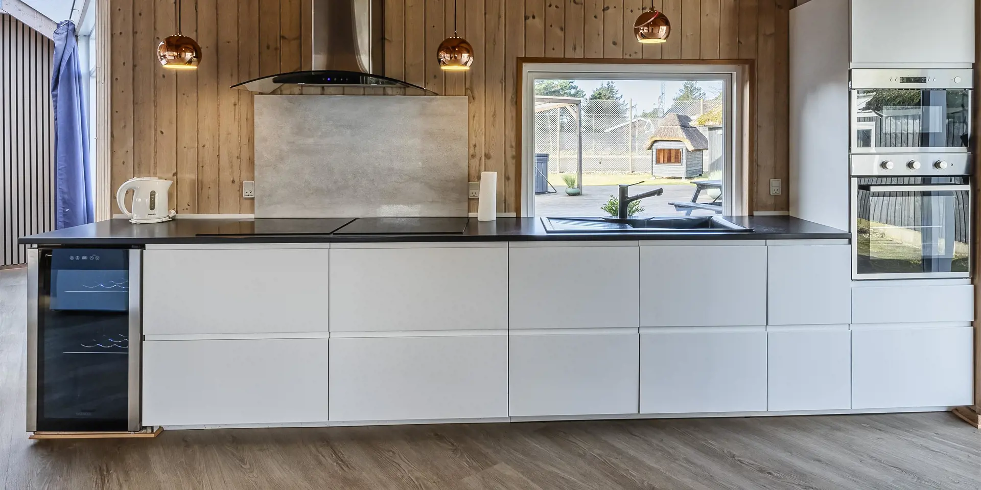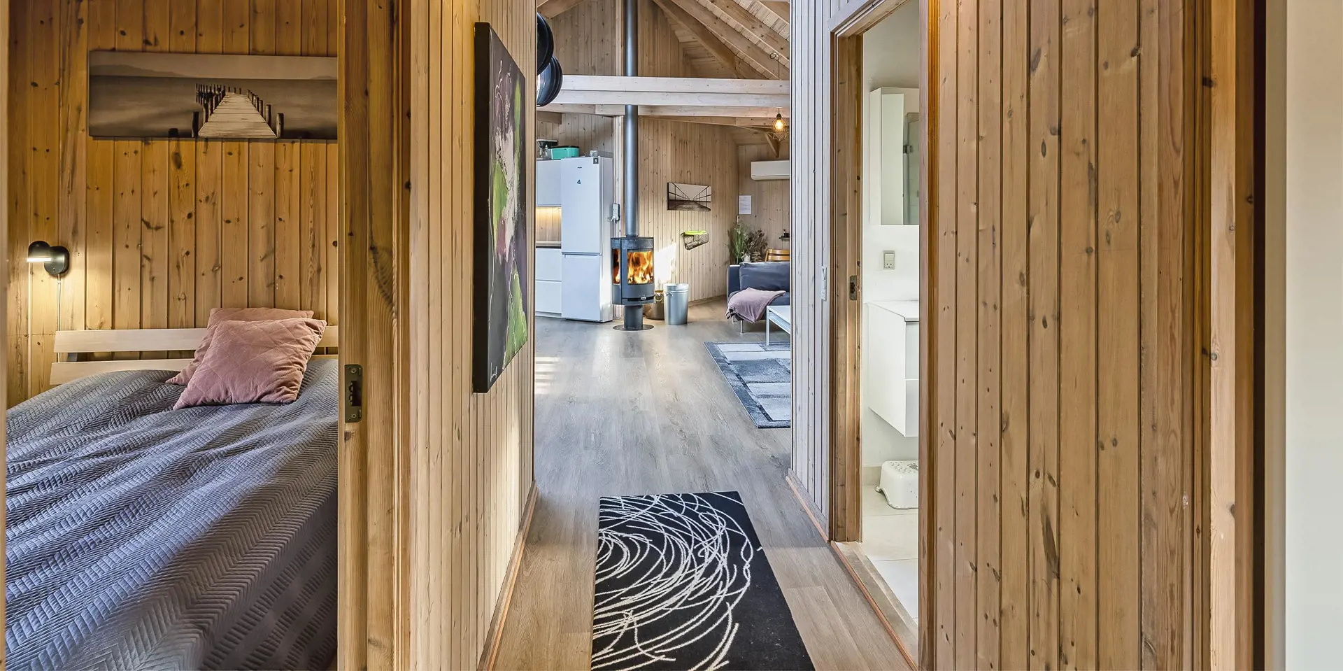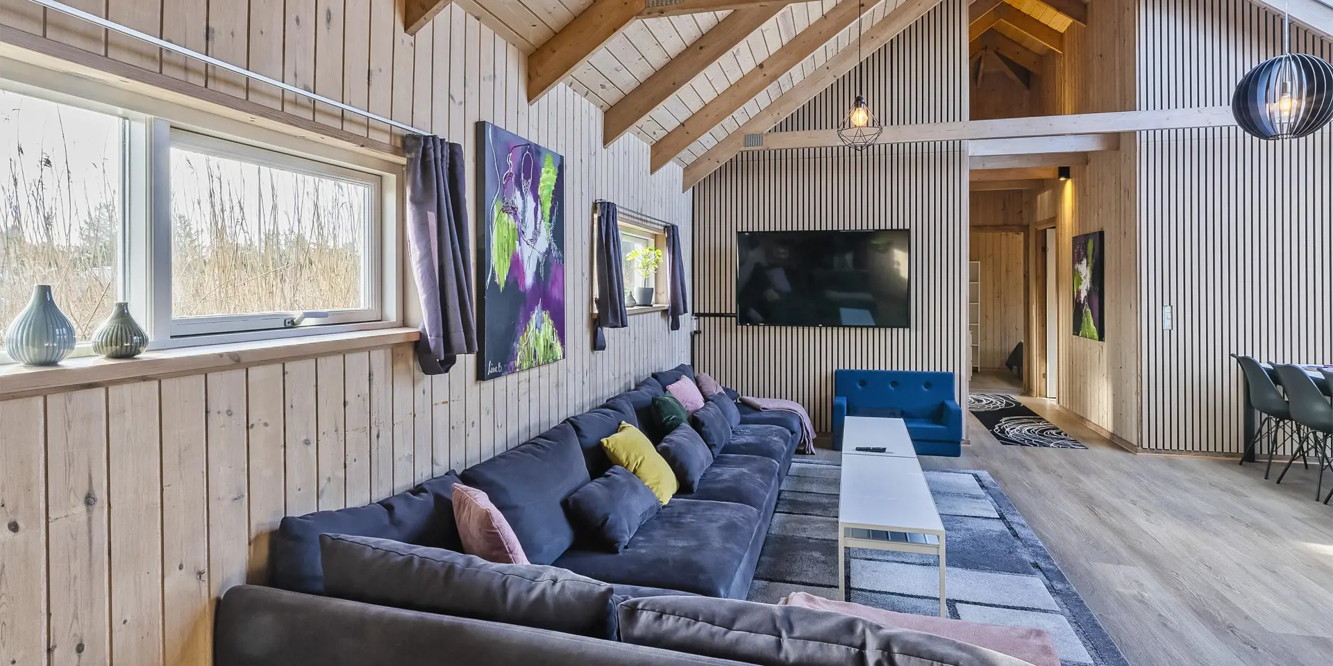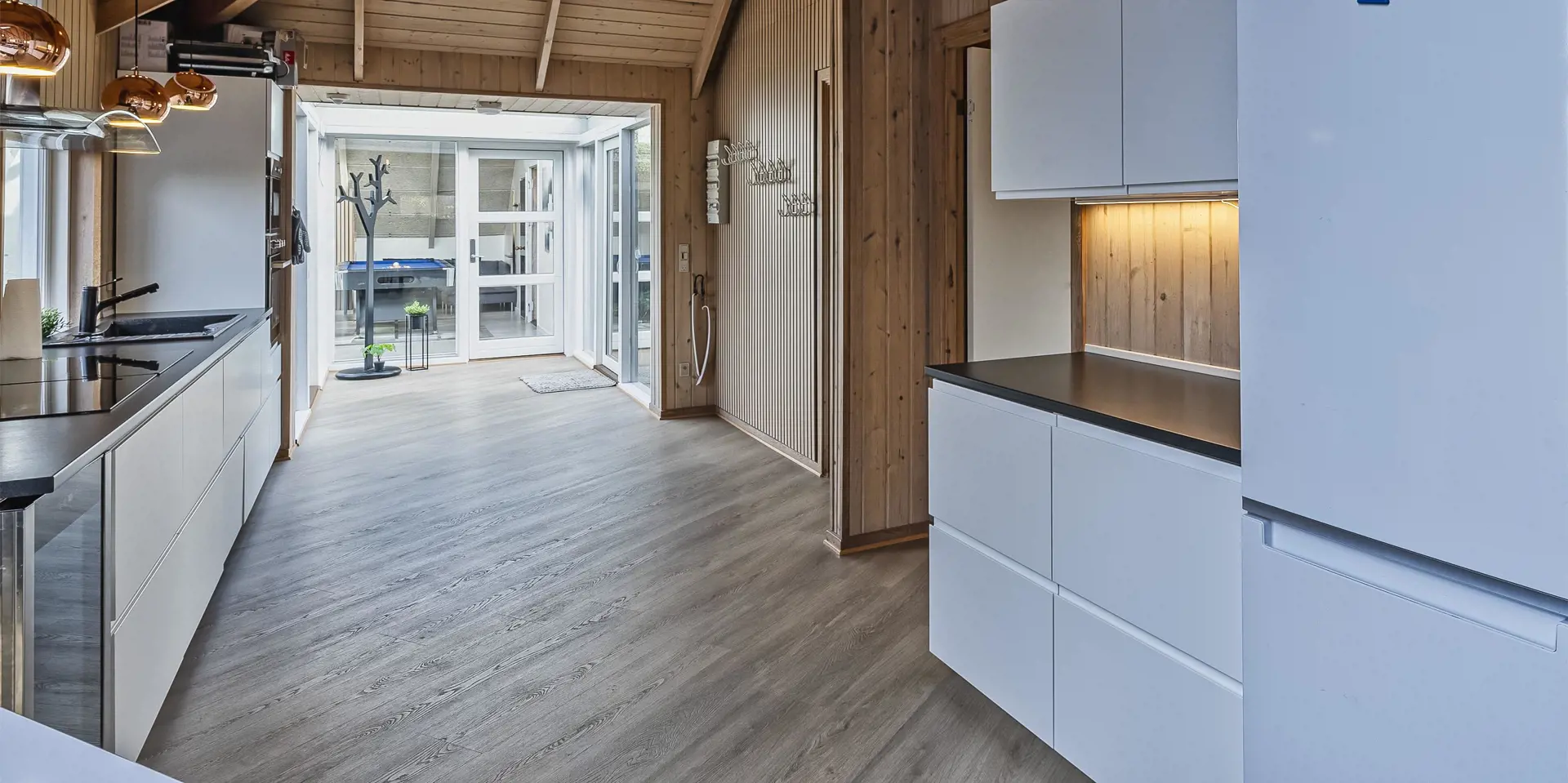 Das Ferienhaus ist 1988 erbaut worden und bekam in 2020 eine totale Renovierung. 8 Schlafzimmer: DB + DB + DB + DB + DB + DB + DB + DB. Bodenbereiche sind mit einer hellen Bodenfliese ausgestattet, bis auf die Schlafräume, die sind mit einem Teppichboden verlegt. Dieses grosse Sommerhaus ist in einem Haupthaus und Nebenhaus aufgeteilt. Im Haupthaus befinden sich fünf der Schlafzimmer und alle sind mit einem Doppelbett ausgestattet. Ebenso ist hier der grosse Wohn- und Essbereich. Dieser ist grosszügig und bietet genügend Sitzmöglichkeiten auf einem gemütlichen Modulsofa an. In der Wohnabteilung ist der Kamin aufgestellt. Dieser gibt der Räumlichkeit einen besonderen Flair. In den Abendstunden kann man dann das Lodern der Flammen beobachten dazu ein Gläschen Wein und in gemütlicher Runde kann dann nach Lust und Laune geplaudert werden. Auf dem grossen Flachbildschirm empfangen Sie auch deutsche Fernsehprogramme, Smart TV und eine Play-Station 3 steht auch bereit. Einen Aussgang zur grossen neuen Holzterrasse haben sie hier vom Wohn- und Essbereich. Es befindet sich eine Warmepumpe im Ferienhaus. Mit dieser Warmepumpe haben sie die Möglichkeit die Stromkosten zu senken, denn die Warmepumpe ist energiesparend. Gegenüber der Sitzmöglichkeit ist der Essbereich. Die zwei Esstische und Stühle befinden sich genau vor der Terrassentür. Hier haben sie einen Aussgang zur schönen neuen Holzterrasse. Durch die grosse Fensterpartie erscheint der Essbereich hell und freundlich. An den beiden Esstischen können alle Gäste auf einmal Ihr Mittagessen geniessen. Angrenzend zum Wohn- und Essbereich befindet sich dann der offene Küchenbereich. Die Küche verfügt über eine moderne Einbauküche, die keine Wünsche übrig lässt. Sie ist mit einem Induktionsherd, einem Backofen in arbeitshöhe, einer Mikrowelle/Kombiofen, einer Geschrirrspülmaschine und einer Kühl- und Gefrierrkombination ausgestattet. Desweiteren befindet sich ein kleiner separater Getränkekühlschrank am Ende der Einbauküche. Ein neues Badezimmer mit Fussbodenheizung befindet sich in den Bereichen der Schlafzimmer. Dieses ist mit einem WC, einem Handwaschbecken und einer Dusche ausgestattet. Auch der Fussboden des Wohn- und Essbereichs, samt der Küchenbereich ist mit einer Fussbodenheizung verlegt worden.