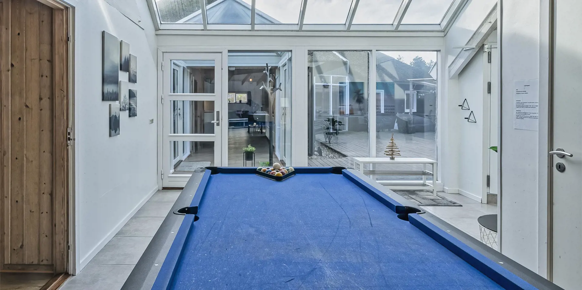 Der Strand ist ca. 1,8 Km vom Haus entfernt und gibt den Gästen einen schönen Spaziergang durch den kleinen Ort Vejers Strand zum Strand hin. Innen im Haus befindet sich dann ein separater Aktivitätsraum. Hier ist ein Billiard-Tisch aufgestellt.