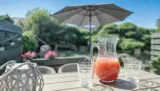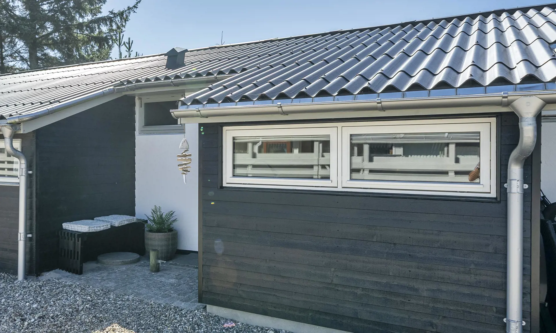 Die windgeschützte, südlich ausgerichtete Terrasse ist mit Gartenmöbeln und Grill ausgestattet – perfekt für entspannte Stunden im Freien.