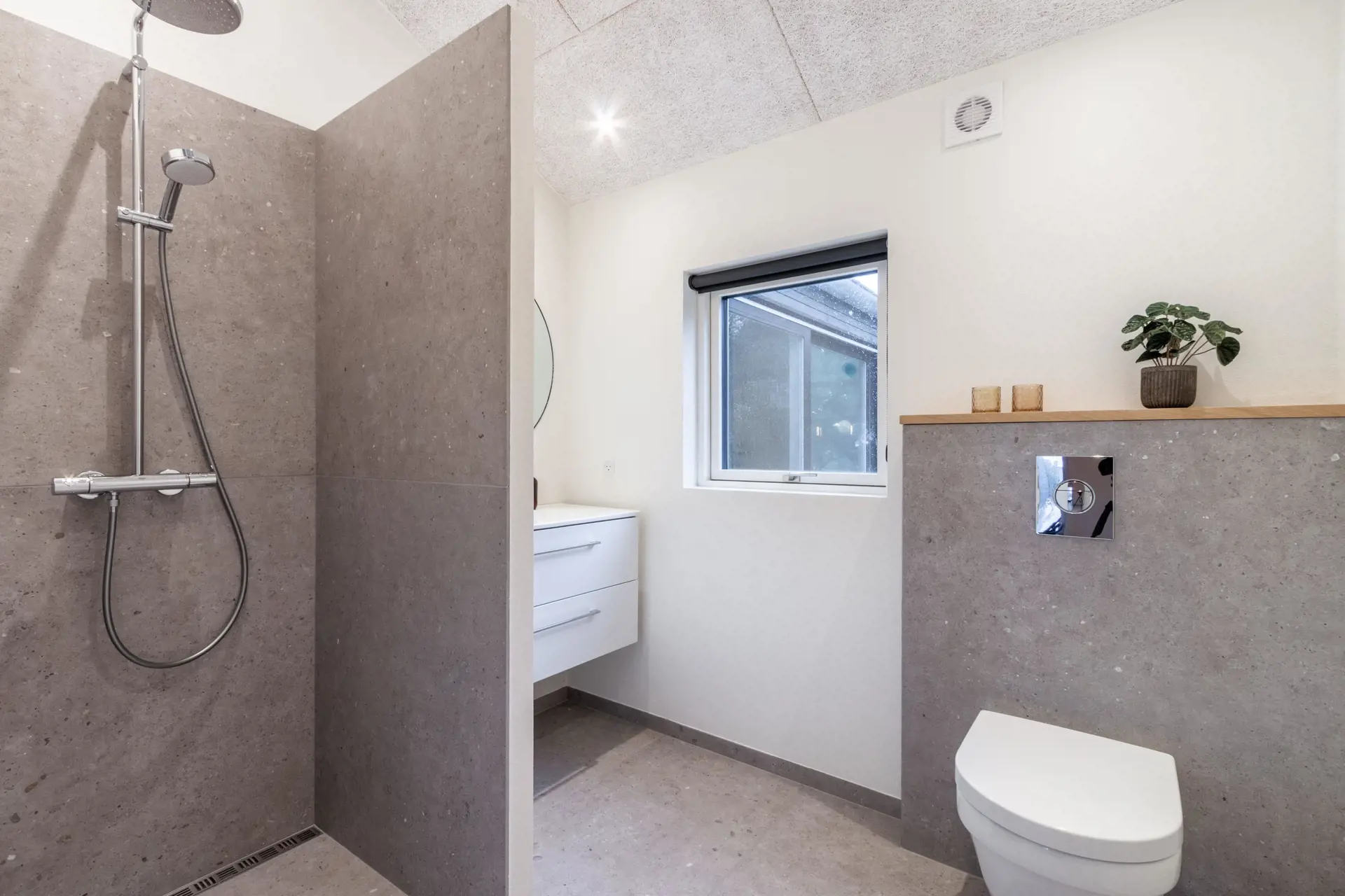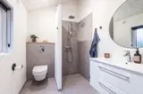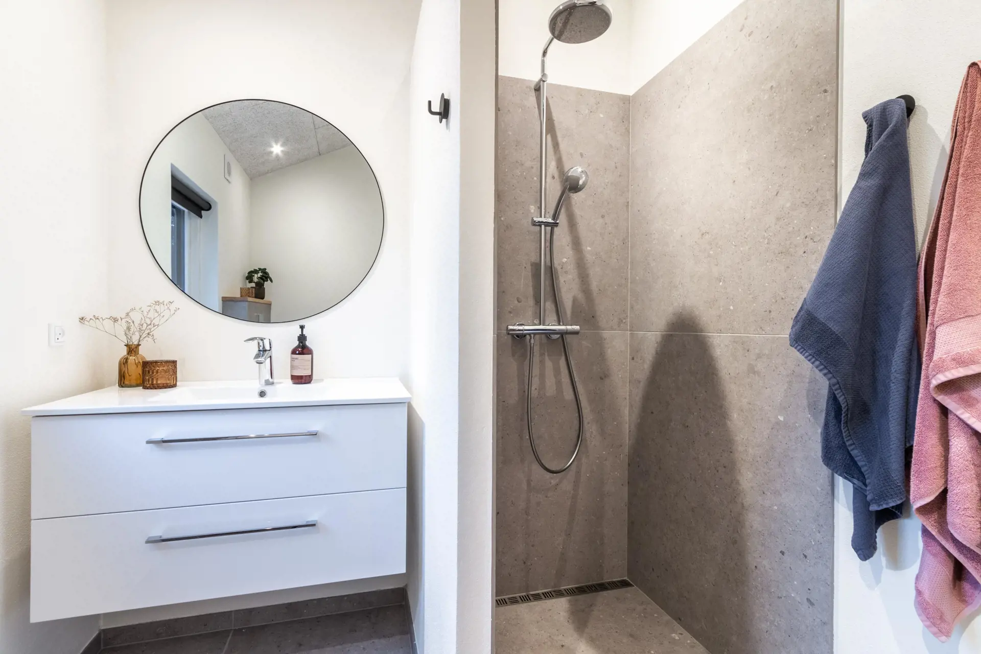 3 Badezimmer mit Fußbodenheizung, Dusche, WC und Waschtisch