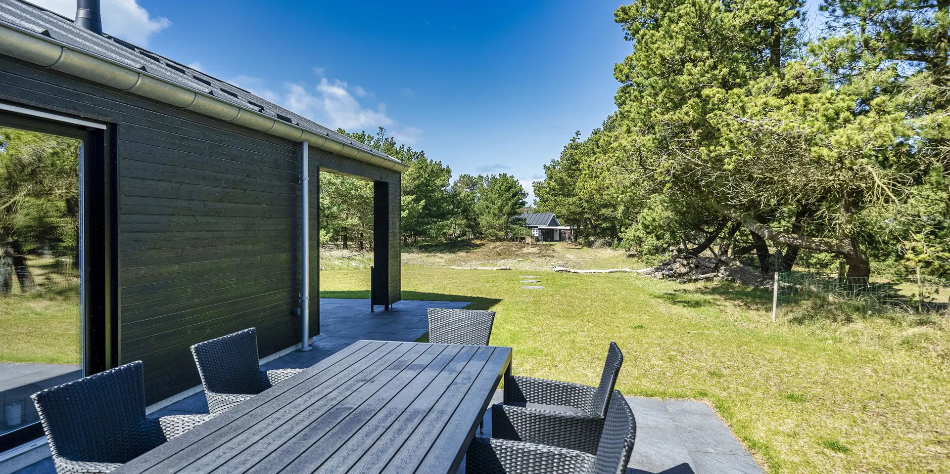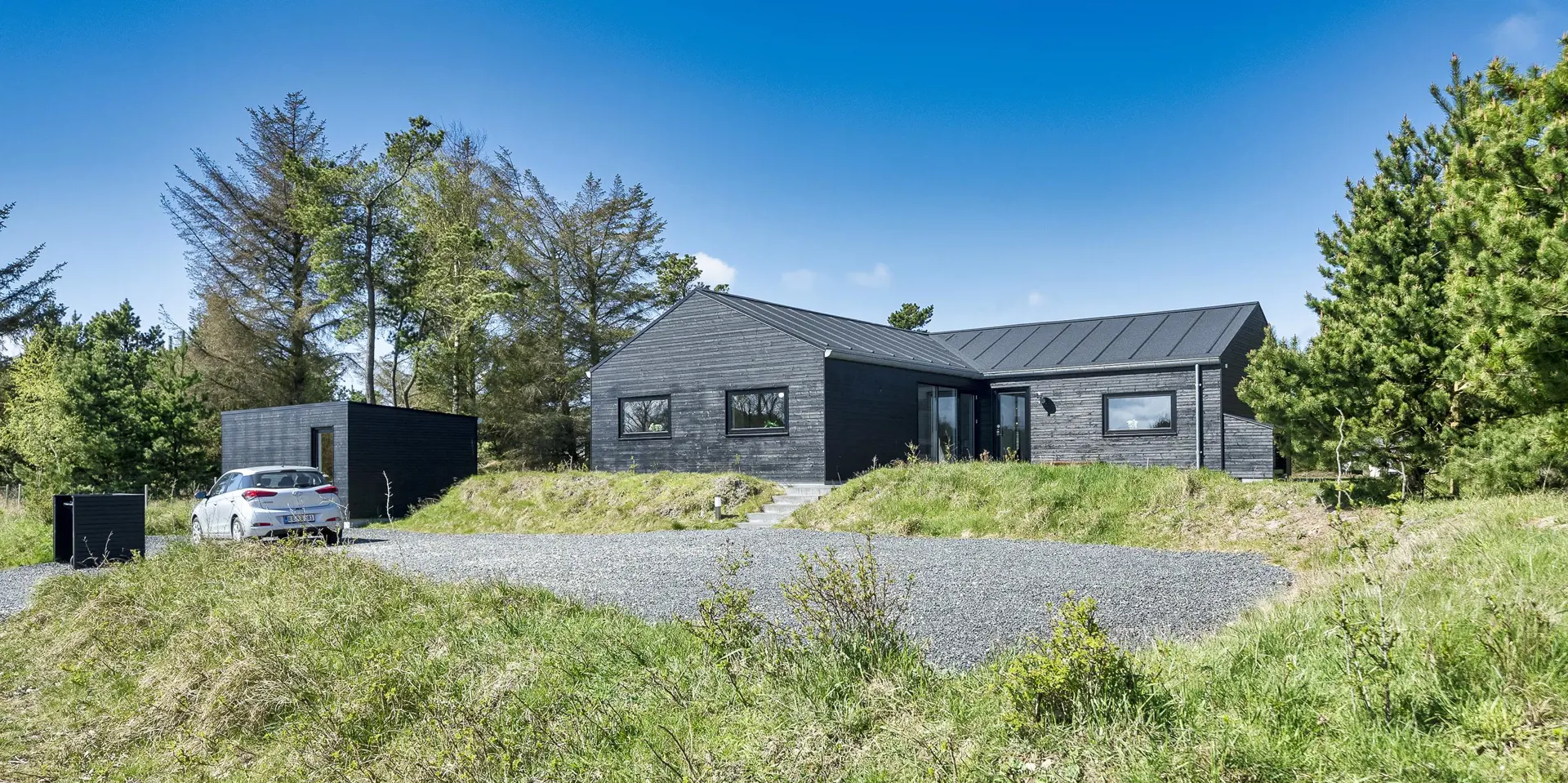 Dieses moderne Ferienhaus wurde 2020 aus den besten Qualitätsmaterialien in einem stilvollen, skandinavischen Design errichtet. Es liegt auf einem großen, teilweise abgeschlossenen Naturgrundstück – nur ca. 850 Meter vom Strand entfernt.