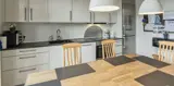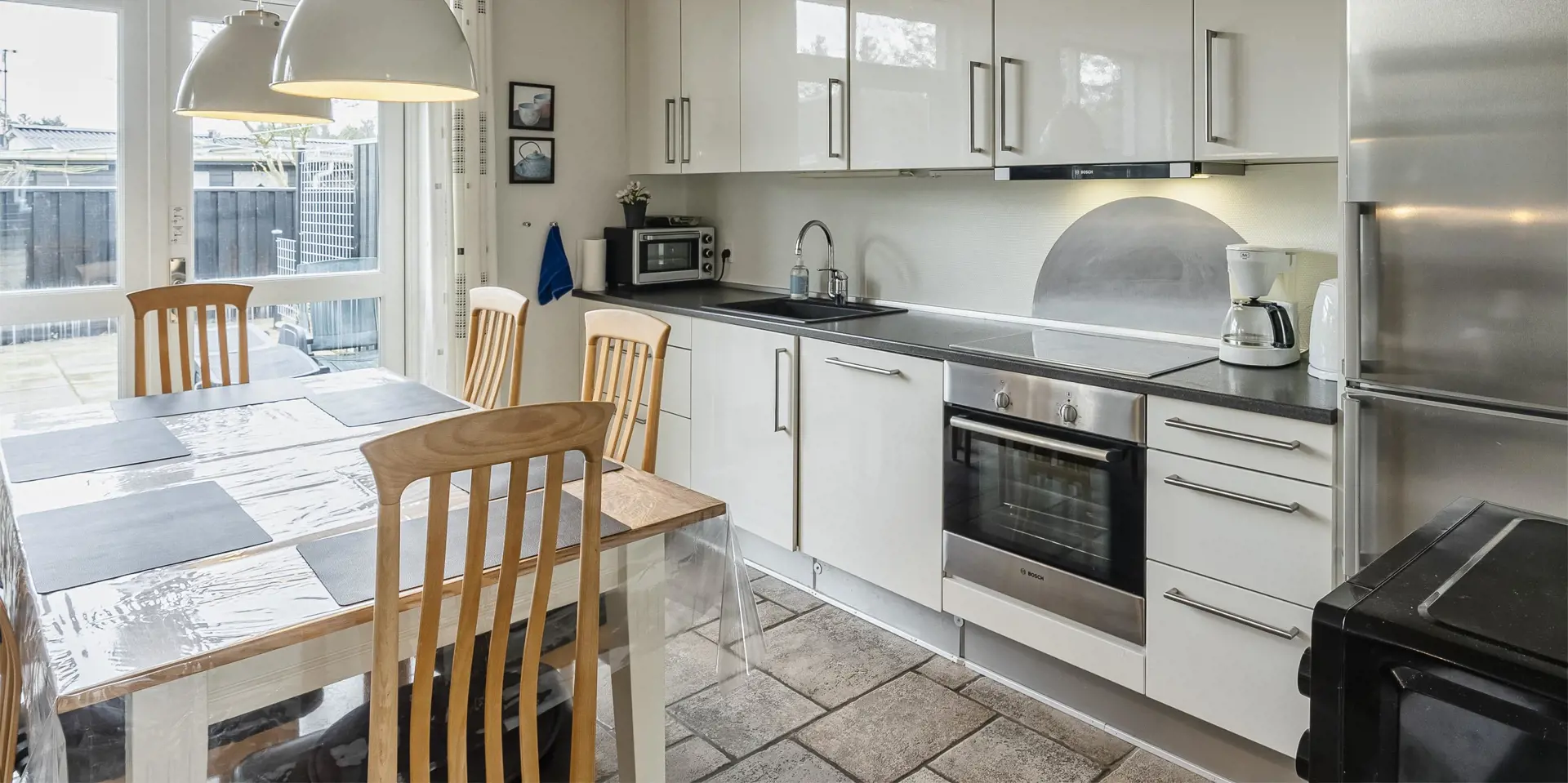 Geräumiges und modernes Reihenmittelhaus das stadtnah gelegen ist. Der Strand ist ca. 900 Meter vom Ferienhaus entfernt. Das Ferienhaus ist für 6 Personen ausgestattet. Der Flur, die Küche mit Essbereich und das Badezimmer sind im Bodenbelag mit Fliesen ausgestattet. Die Schlafzimmer und der Wohnbereich sind mit einem Laminaboden versehen. Im Flurbereich, in der Küche mit Essbereich und das Badezimmer sind ausserdem mit einer Fussbodenheizung ausgestattet. Im FLurbereich ist genügend Platz für Schuhe und Garderobe. Der Wohn-und Essbereich ist offen zur Küche gehalten. Während des kochens, können Sie sich also mit dem Rest der Familie unterhalten und neue Pläne fur den Tag schmieden. Auf der gemütlichen Sitzgarnitur im Wohnzimmer können Sie gut entspannen. Das deutsche Fernsehrpgogramm empfangen Sie über eine Parabolantenne. Desweitern steht Ihnen Yousee-TV zur Verfügung. Im Wohnbereich befindet sich eine Wärmepumpe. Mit dieser Wärmepumpe haben sie die Möglichkeiten die Stromkosten zu senken, da sie energiesparend ist. In der Ecke befindet sich dann eine Holztreppe, wo Sie dann in das Obergeschoss gelangen. Die Küche ist hell und freundlich und modern eingerichtet. Sie verfügt über einen Herd mit Cerankochfeld, einem Backofen, einer Geschirrspülmschine, einer Mikrowelle, einem Miniofen und einer Kühl- und Gefrierkombination. Das Badzimmer verfügt über ein WC, ein Handwaschbecken und eine Dusche. Desweiteren steht die Waschmaschine und ein Trocker im Badezimmer. Es gibt insgesamt drei Schlafzimmer im Ferienhaus:Zwei der Schlafzimmer verfügen über je einem Doppelbett und das dritte Schlafzimmer hat zwei einzelbetten. Das Ferienhaus verfügt über einen Internetanschluss (W-Lan). Ein kleiner Terrassenbereich mit Gartenmöbeln stehen Ihnen zur Verfügung und hinter der Terrasse ist eine kleine Rasenfläche. Auch beim Eingangsbereich befindet sich ein Kleiner Terrassenbereich mit einer Sitzgelegenheit. Das Reihenhaus ist in 2009 erbaut worden. Es ist ein Haustier erlaubt. Das Rauchen im Ferienhaus ist nicht erlaubt.Gratis Eintritt für das Badeland und Bowling in Varde in 2025. Ein Parkplatz für Ihr Fahrzeug finden sie direckt vor dem Reihenhaus. Zusatzkosten für Wasserverbrauch.