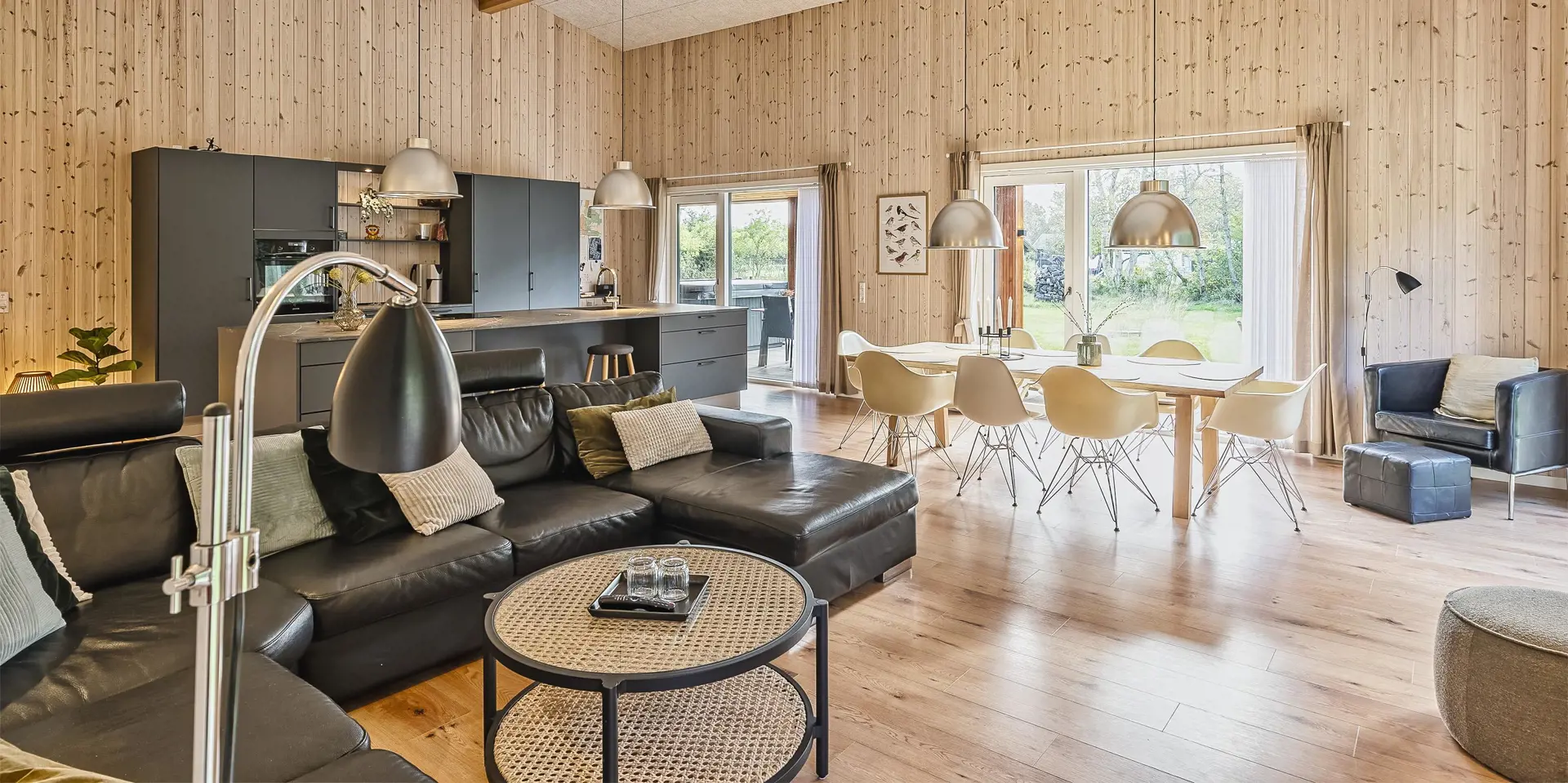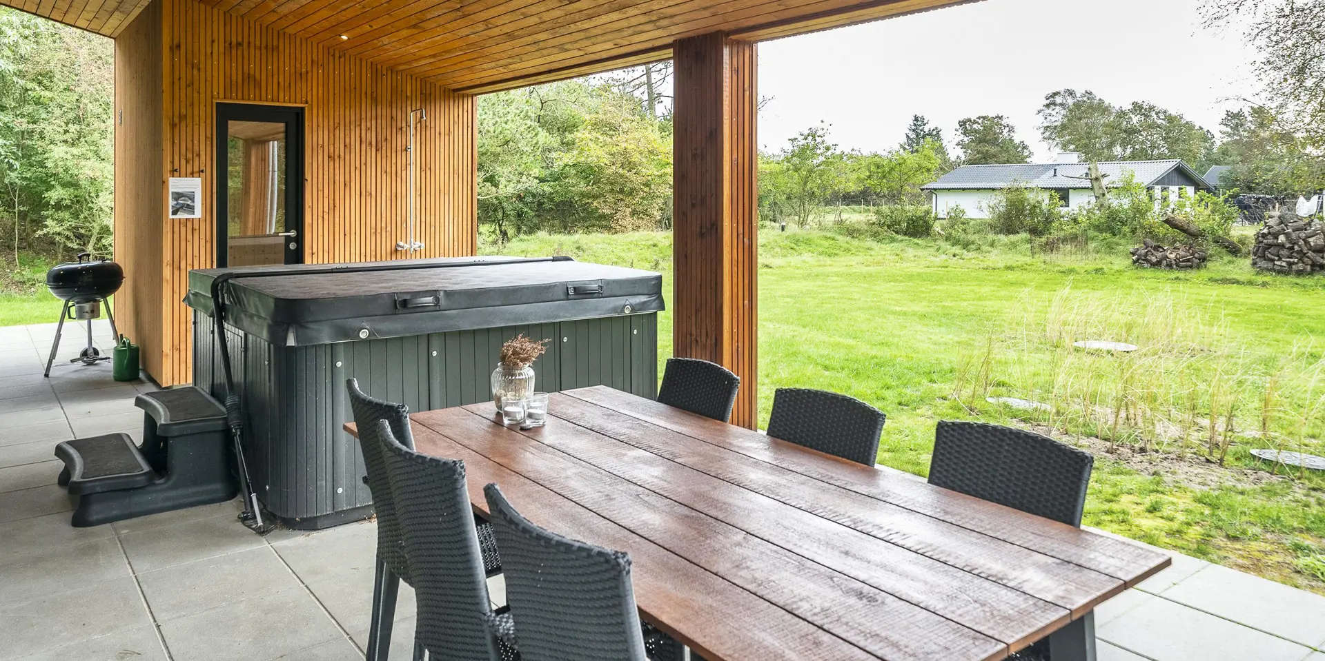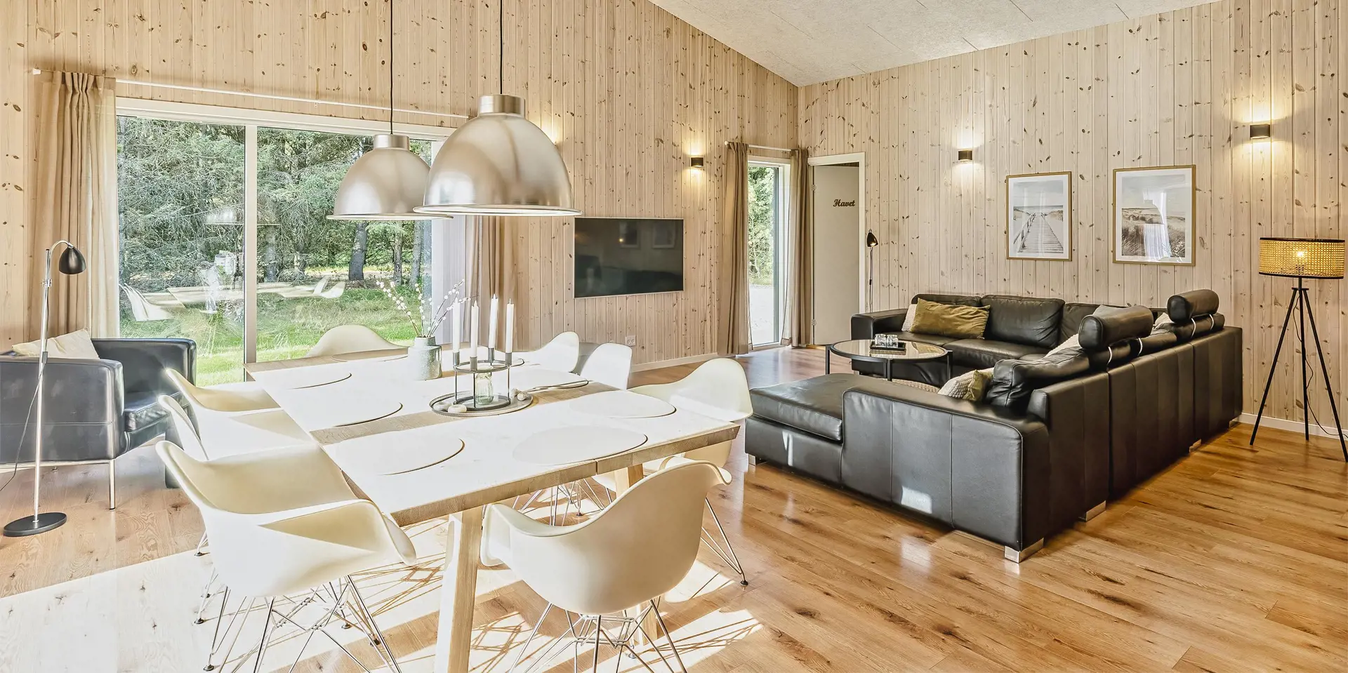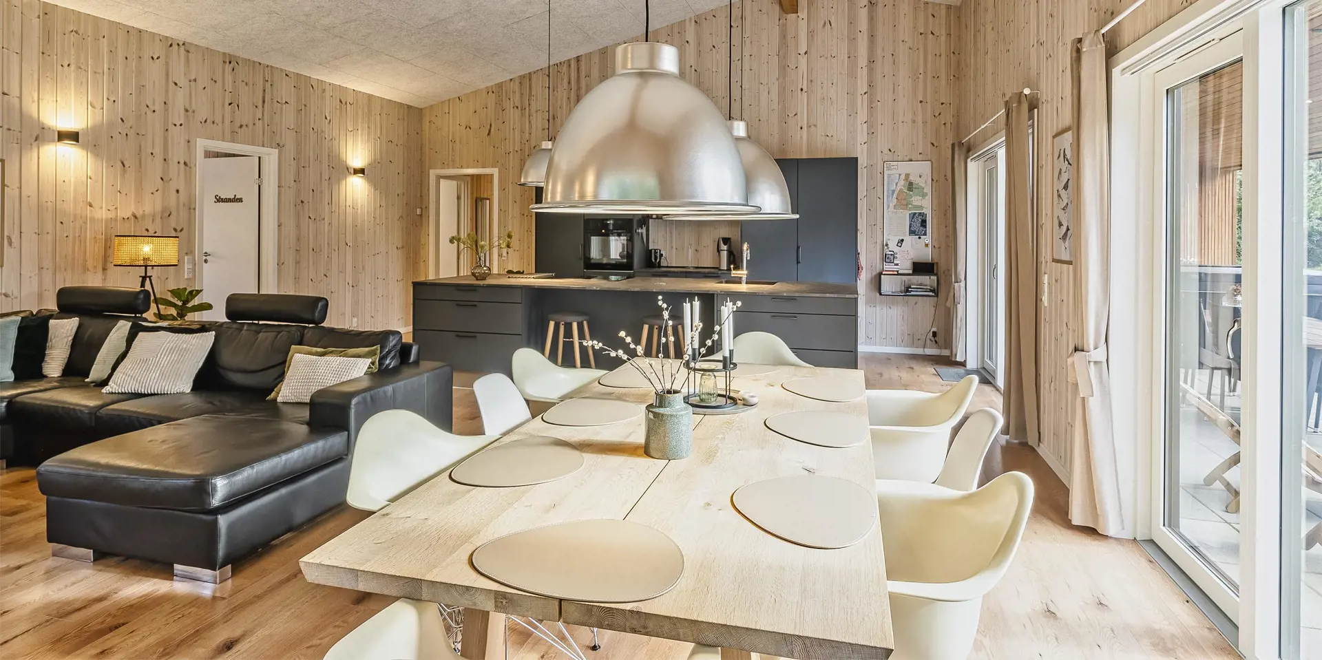 Neubau eines modernen Aktivitätshaus für 8 Personen. Das Ferienhaus verfügtüber 165 qm Wohnfläche und bietet Komfort und Aktivitäten für die Familie das ganze Jahr über. Der Strand ist ca. 850 Meter vom Ferienhaus entfernt. Das Ferienhaus ist hell und freundlich in der Ausstattung und eine Fussbodenheizung befindet sich in alles Räumen, daher sind keine Heizkörper vorhanden. In dem grosszügigem Eingangsbereich ist genügend Platz für Jacken und Schuhe. Der Wohn- und Essbereich ist zur Küche hin offen gehalten. Auf der gemütlichen Ledersitzgarnitur haben Sie einen schönen Blick in die Natur und auf den Terrassenbereich. Durch die grossen Panoramafenster fällt genügen Licht auf den grossen Holzesstisch, wo alle Gäste genügend Platz haben. Ein Flachbildschirm gibt Ihnen die Möglichkeit über Google Chrome Cast die deutschen Programme zu empfangen. Dänische Programme können auch empfangen werden. Die moderne Einbauchküche bietet Ihnen alles was Sie brauchen. Die Einbaucküche ist mit einem Herd mit Cerankochfeld, einem Backofen in arbeitshöhe, einer Mikrowelle, einer Geschirspülmaschine und einer Kühl- und Gefrierkombination mit 8 Schubladen ausgestattet. Hier bringt das Kochen viel Spass und Sie sind in dem täglichen Geschehen dabei, da Sie vom Küchenbereich aus mit dem Wohnbereich und dem Essbereich intregiert sind. Es gibt für alle Gäste zwei Badezimmer, die sich jeweils in der Nähe von zwei der insgesamt vier Schlafzimmer befinden. Beide Bäder verfügen über ein Handwaschbecken, eine Dusche und und ein WC. In dem grösseren Badezimmer sind die Waschmaschine und der Trockner untergebracht. Insgesamt stehen den Gästen vier schöne Schlafzimmer bereit: DB + DB + DB + DB. Es gibt in dem Ferienhaus einen separaten Aktivitätsraum. Hier befinden sich ein paar Fitness-Geräte, so wie z.B. ein Gymnastikball oder einen Hula-Hopp-Reifen. Ein Billiardtisch mit Zubehör ist in der Mitte des Raumes aufgestellt. Darauf kann dann eine Tischtennisplatte gelegt werden und dann kann dort auch Tischtennis gespielt werden. Ein TV-Gerät befindet ich ebenfalls in diesem Aktivitätsraum. Der Aussenbereich ist flott angelegt. Rund um das Ferienhaus sind Fliesen gelegt, sodas Sie trocken von der einen Seite auf die andere Seite kommen. Auf der hinteren Seite des Ferienhauses ist dann der Terrassenbereich. Die Hälfte der Terrasse ist überdacht. Unter diesem überdachten Bereich befinden sich ein Aussenwhirlpool, eine Aussensauna und eine Aussendusche. Desweiteren ist hier auch noch ein Tisch mit Gartenstühlen aufgestellt. So, das alles genutzt werden kann, auch wenn es ein paar Tropfen geben sollte. Auf der andersen Hälfte ist auch nochmal ein Tisch mit Bestuhlung aufgestellt. Es sind keine Haustiere erlaubt. Das Rauchen im Ferienhaus ist nicht erlaubt. Das Ferienhaus verfügt über einen Internetanschluss (W-Lan). Baujahr des Hauses 2021, also Neubau. Es muss mit zusätzlichen Wasserkosten gerechnet werden.