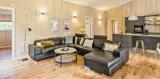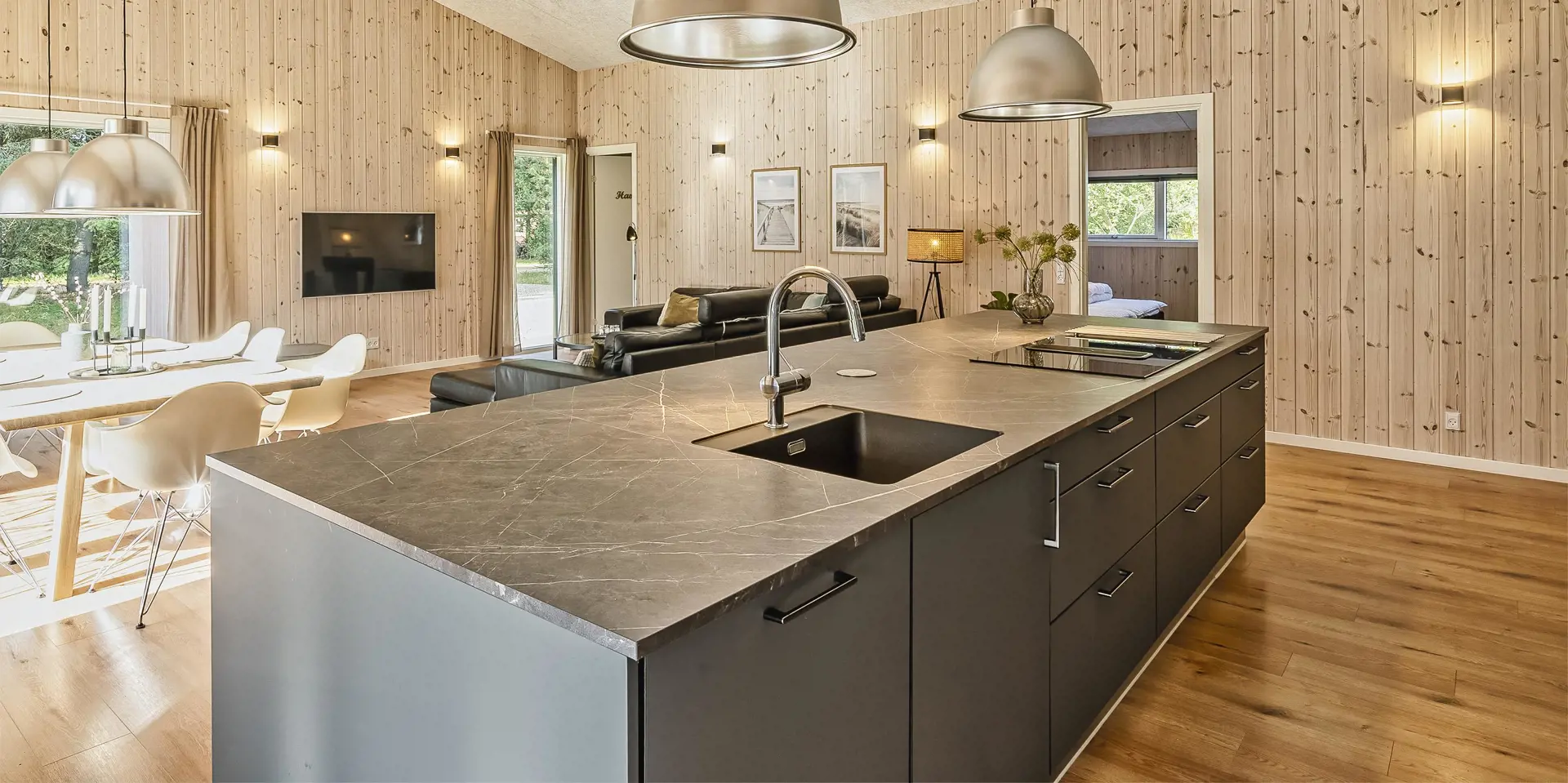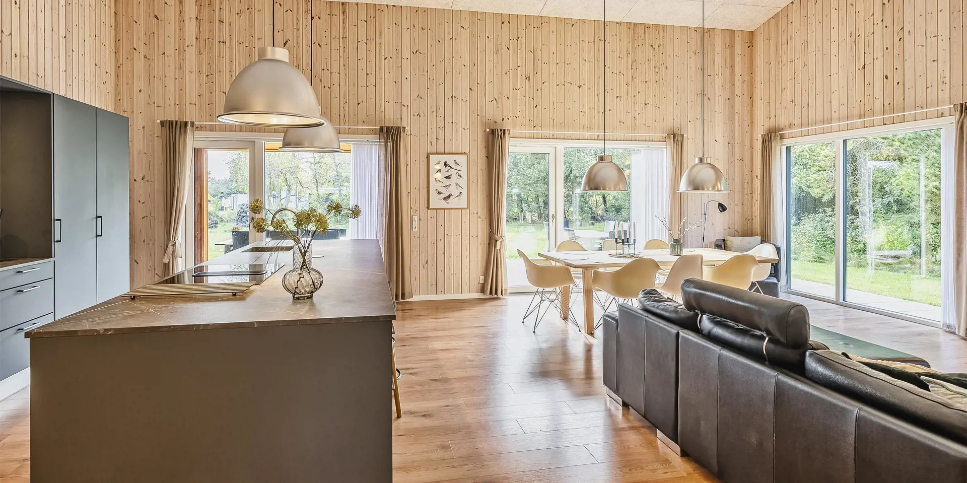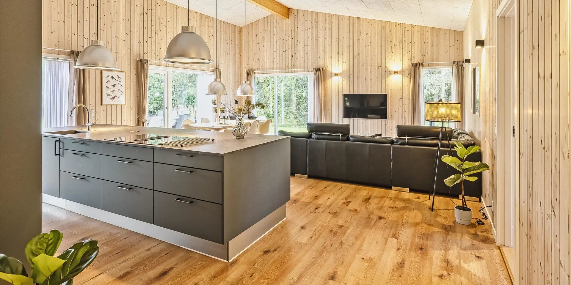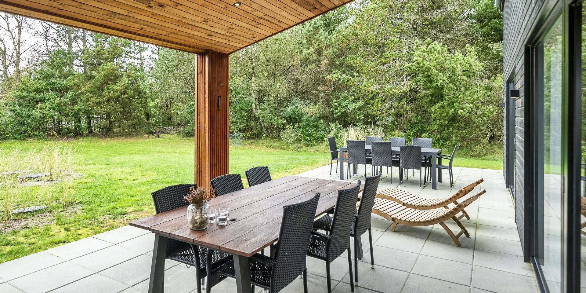 Neubau eines modernen Aktivitätshaus für 8 Personen. Das Ferienhaus verfügtüber 165 qm Wohnfläche und bietet Komfort und Aktivitäten für die Familie das ganze Jahr über. Der Strand ist ca. 850 Meter vom Ferienhaus entfernt. Das Ferienhaus ist hell und freundlich in der Ausstattung und eine Fussbodenheizung befindet sich in alles Räumen, daher sind keine Heizkörper vorhanden. In dem grosszügigem Eingangsbereich ist genügend Platz für Jacken und Schuhe. Der Wohn- und Essbereich ist zur Küche hin offen gehalten. Auf der gemütlichen Ledersitzgarnitur haben Sie einen schönen Blick in die Natur und auf den Terrassenbereich. Durch die grossen Panoramafenster fällt genügen Licht auf den grossen Holzesstisch, wo alle Gäste genügend Platz haben. Ein Flachbildschirm gibt Ihnen die Möglichkeit über Google Chrome Cast die deutschen Programme zu empfangen. Dänische Programme können auch empfangen werden. Die moderne Einbauchküche bietet Ihnen alles was Sie brauchen. Die Einbaucküche ist mit einem Herd mit Cerankochfeld, einem Backofen in arbeitshöhe, einer Mikrowelle, einer Geschirspülmaschine und einer Kühl- und Gefrierkombination mit 8 Schubladen ausgestattet. Hier bringt das Kochen viel Spass und Sie sind in dem täglichen Geschehen dabei, da Sie vom Küchenbereich aus mit dem Wohnbereich und dem Essbereich intregiert sind. Es gibt für alle Gäste zwei Badezimmer, die sich jeweils in der Nähe von zwei der insgesamt vier Schlafzimmer befinden. Beide Bäder verfügen über ein Handwaschbecken, eine Dusche und und ein WC. In dem grösseren Badezimmer sind die Waschmaschine und der Trockner untergebracht. Insgesamt stehen den Gästen vier schöne Schlafzimmer bereit: DB + DB + DB + DB. Es gibt in dem Ferienhaus einen separaten Aktivitätsraum. Hier befinden sich ein paar Fitness-Geräte, so wie z.B. ein Gymnastikball oder einen Hula-Hopp-Reifen. Ein Billiardtisch mit Zubehör ist in der Mitte des Raumes aufgestellt. Darauf kann dann eine Tischtennisplatte gelegt werden und dann kann dort auch Tischtennis gespielt werden. Ein TV-Gerät befindet ich ebenfalls in diesem Aktivitätsraum. Der Aussenbereich ist flott angelegt. Rund um das Ferienhaus sind Fliesen gelegt, sodas Sie trocken von der einen Seite auf die andere Seite kommen. Auf der hinteren Seite des Ferienhauses ist dann der Terrassenbereich. Die Hälfte der Terrasse ist überdacht. Unter diesem überdachten Bereich befinden sich ein Aussenwhirlpool, eine Aussensauna und eine Aussendusche. Desweiteren ist hier auch noch ein Tisch mit Gartenstühlen aufgestellt. So, das alles genutzt werden kann, auch wenn es ein paar Tropfen geben sollte. Auf der andersen Hälfte ist auch nochmal ein Tisch mit Bestuhlung aufgestellt. Es sind keine Haustiere erlaubt. Das Rauchen im Ferienhaus ist nicht erlaubt. Das Ferienhaus verfügt über einen Internetanschluss (W-Lan). Baujahr des Hauses 2021, also Neubau. Es muss mit zusätzlichen Wasserkosten gerechnet werden.