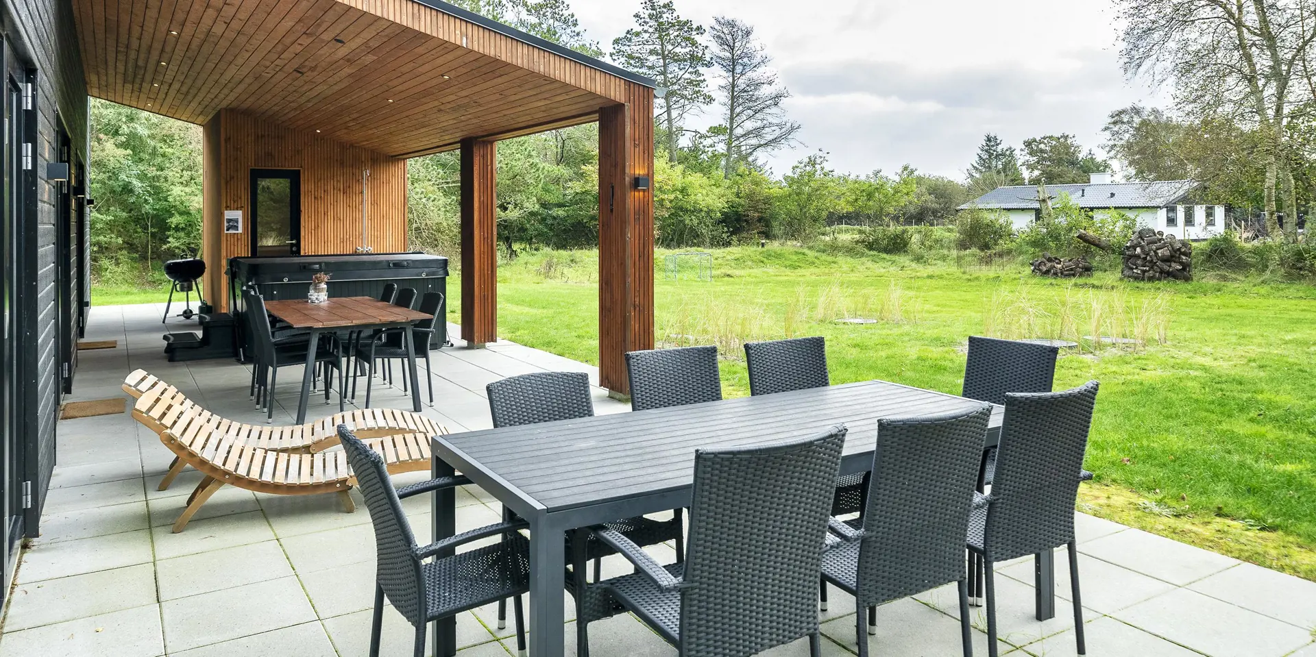 Neubau eines modernen Aktivitätshaus für 8 Personen. Das Ferienhaus verfügtüber 171 qm Wohnfläche und bietet Komfort und Aktivitäten für die Familie das ganze Jahr über. Der Strand ist ca. 850 Meter vom Ferienhaus entfernt. Das Ferienhaus ist hell und freundlich in der Ausstattung und eine Fussbodenheizung befindet sich in alles Räumen, daher sind keine Heizkörper vorhanden. In dem grosszügigem Eingangsbereich ist genügend Platz für Jacken und Schuhe. Der Wohn- und Essbereich ist zur Küche hin offen gehalten. Auf der gemütlichen Ledersitzgarnitur haben Sie einen schönen Blick in die Natur und auf den Terrassenbereich. Durch die grossen Panoramafenster fällt genügen Licht auf den grossen Holzesstisch, wo alle Gäste genügend Platz haben. Ein Flachbildschirm gibt Ihnen die Möglichkeit über Google Chrome Cast die deutschen Programme zu empfangen. Dänische Programme können auch empfangen werden. Die moderne Einbauchküche bietet Ihnen alles was Sie brauchen. Die Einbaucküche ist mit einem Herd mit Cerankochfeld, einem Backofen in arbeitshöhe, einer Mikrowelle, einer Geschirspülmaschine und einer Kühl- und Gefrierkombination mit 8 Schubladen ausgestattet. Hier bringt das Kochen viel Spass und Sie sind in dem täglichen Geschehen dabei, da Sie vom Küchenbereich aus mit dem Wohnbereich und dem Essbereich intregiert sind. Es gibt für alle Gäste zwei Badezimmer, die sich jeweils in der Nähe von zwei der insgesamt vier Schlafzimmer befinden. Beide Bäder verfügen über ein Handwaschbecken, eine Dusche und und ein WC. In dem grösseren Badezimmer sind die Waschmaschine und der Trockner untergebracht. Insgesamt stehen den Gästen vier schöne Schlafzimmer bereit: DB + DB + DB + DB. Es gibt in dem Ferienhaus einen separaten Aktivitätsraum. Hier befinden sich ein paar Fitness-Geräte, so wie z.B. ein Gymnastikball oder einen Hula-Hopp-Reifen. Ein Billiardtisch mit Zubehör ist in der Mitte des Raumes aufgestellt. Darauf kann dann eine Tischtennisplatte gelegt werden und dann kann dort auch Tischtennis gespielt werden. Ein TV-Gerät befindet ich ebenfalls in diesem Aktivitätsraum. Der Aussenbereich ist flott angelegt. Rund um das Ferienhaus sind Fliesen gelegt, sodas Sie trocken von der einen Seite auf die andere Seite kommen. Auf der hinteren Seite des Ferienhauses ist dann der Terrassenbereich. Die Hälfte der Terrasse ist überdacht. Unter diesem überdachten Bereich befinden sich ein Aussenwhirlpool, eine Aussensauna und eine Aussendusche. Desweiteren ist hier auch noch ein Tisch mit Gartenstühlen aufgestellt. So, das alles genutzt werden kann, auch wenn es ein paar Tropfen geben sollte. Auf der andersen Hälfte ist auch nochmal ein Tisch mit Bestuhlung aufgestellt. Es sind keine Haustiere erlaubt. Das Rauchen im Ferienhaus ist nicht erlaubt. Das Ferienhaus verfügt über einen Internetanschluss (W-Lan). Baujahr des Hauses 2022, also Neubau. Es muss mit zusätzlichen Wasserkosten gerechnet werden.