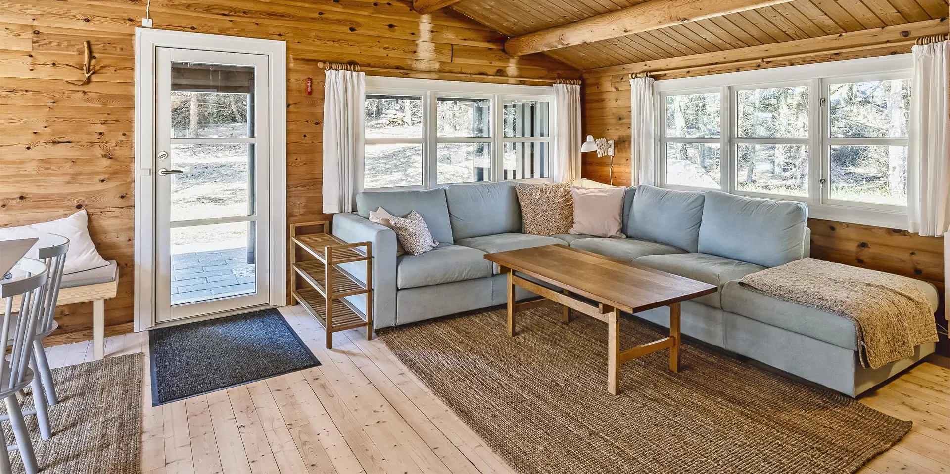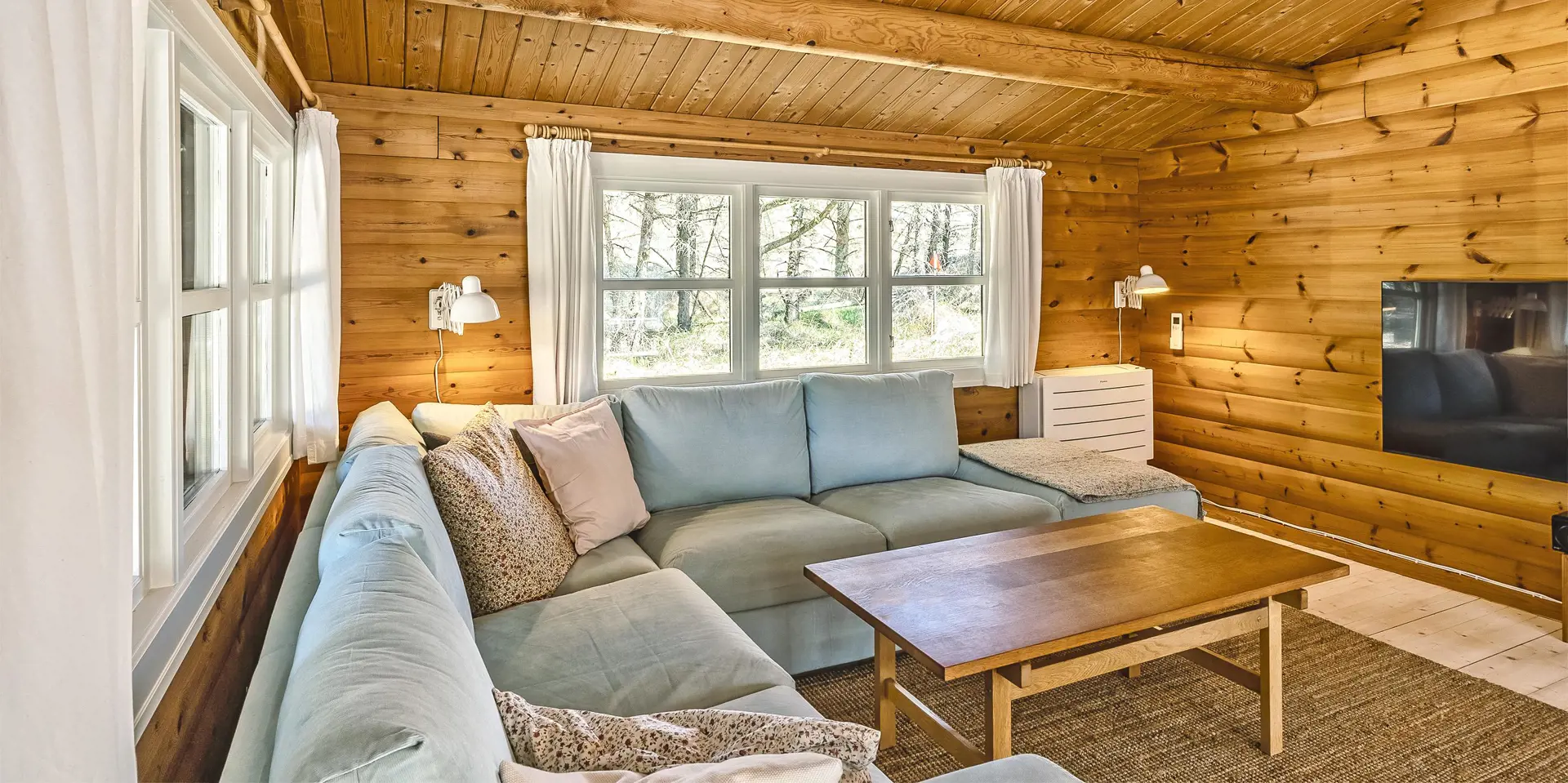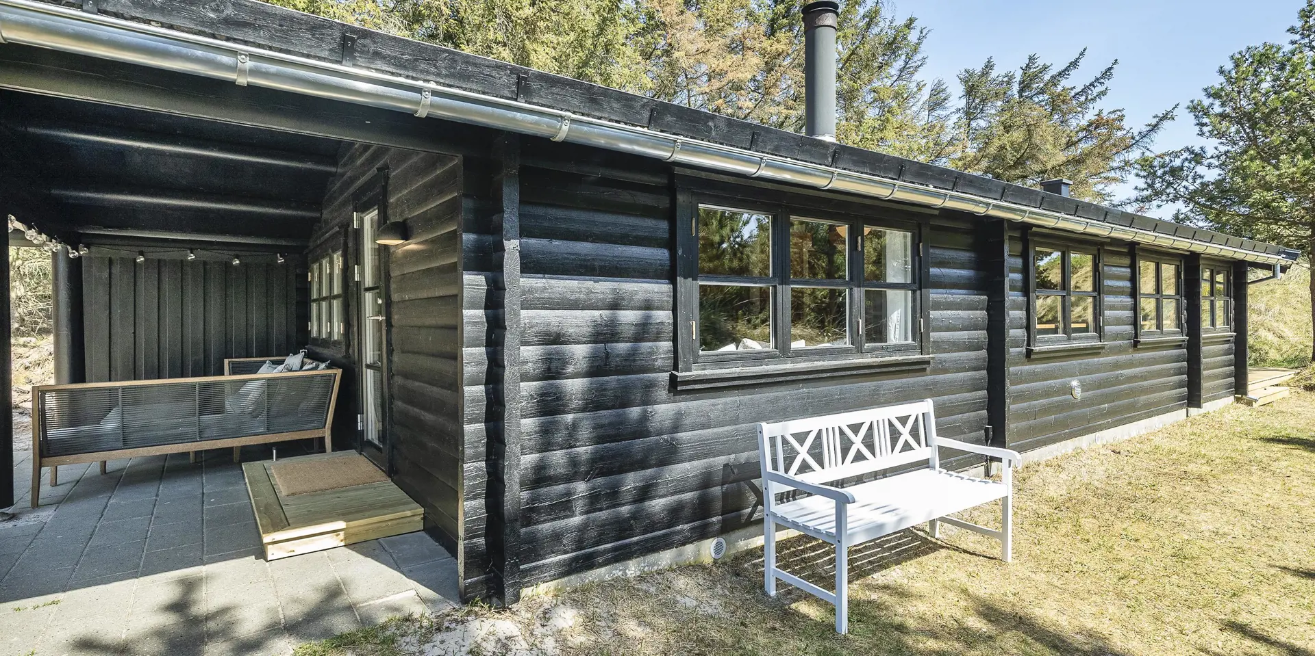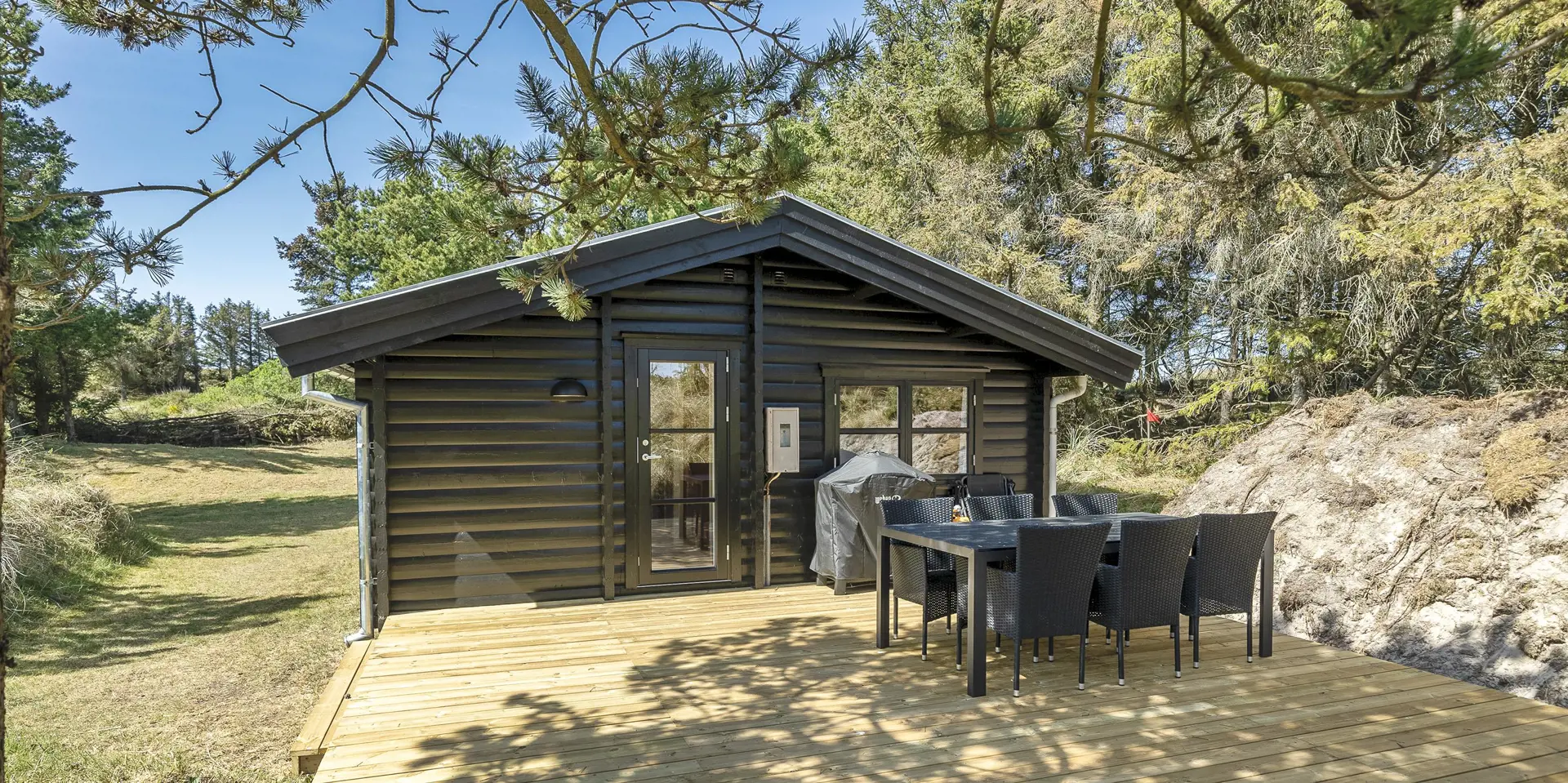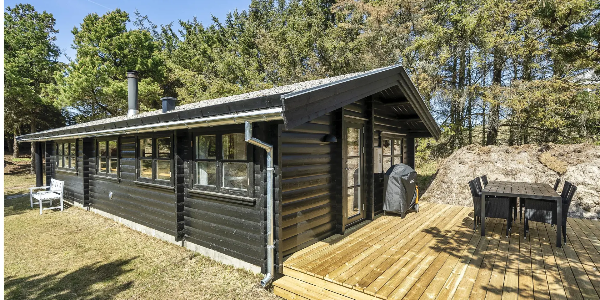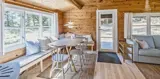 Gemütliches renoviertes Blockhaus, mit freiliegenden runden Balken, auf einem großen abgeschlossenen uneinsehbaren Naturgrundstück. Das Ferienhaus ist für 6 Personen ausgestattet und der Strand ca. 250 Meter vom Haus entfernt. Rund um das Haus erstreckt sich eine dichte Vegetation, die trotz der kurzen Entfernung zum Strand Windschutz bietet. Vom Haus führt ein direkter Weg zum Strand.