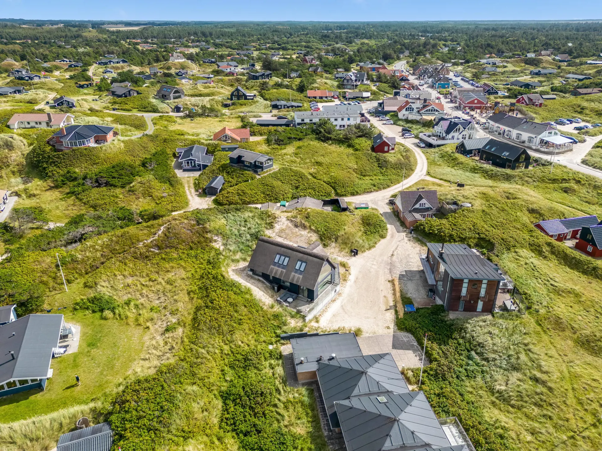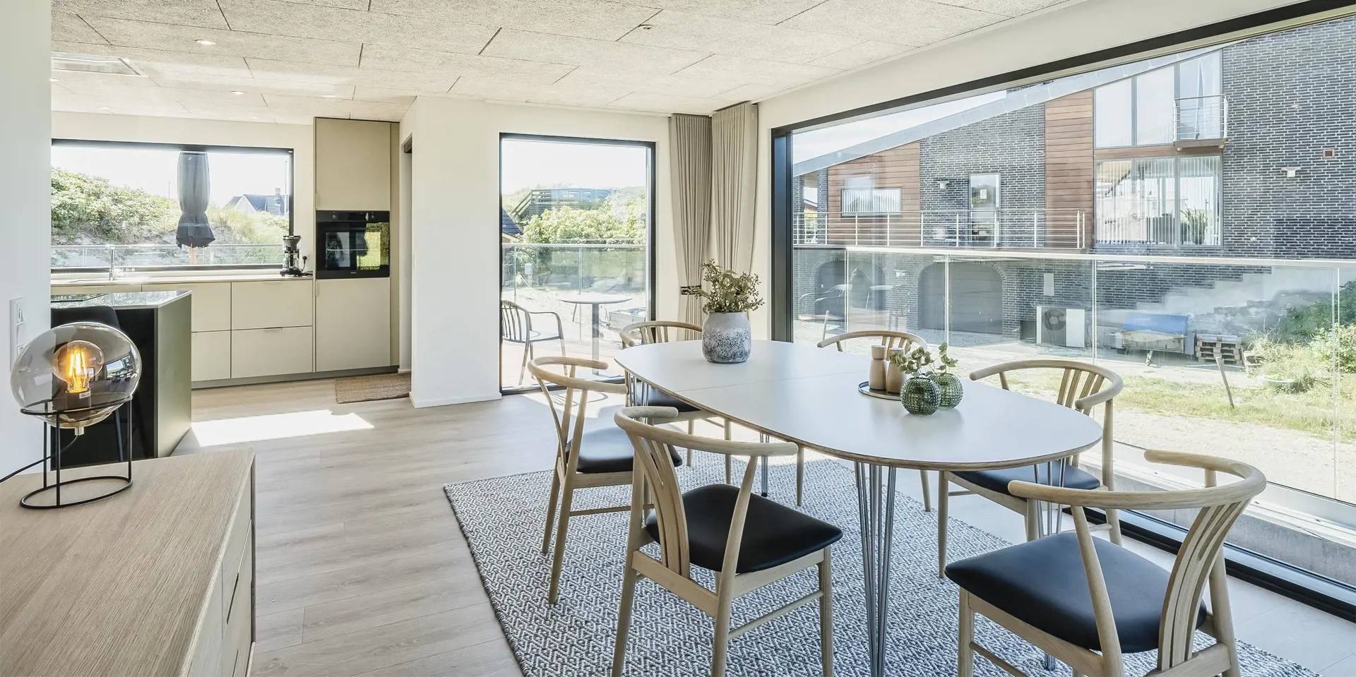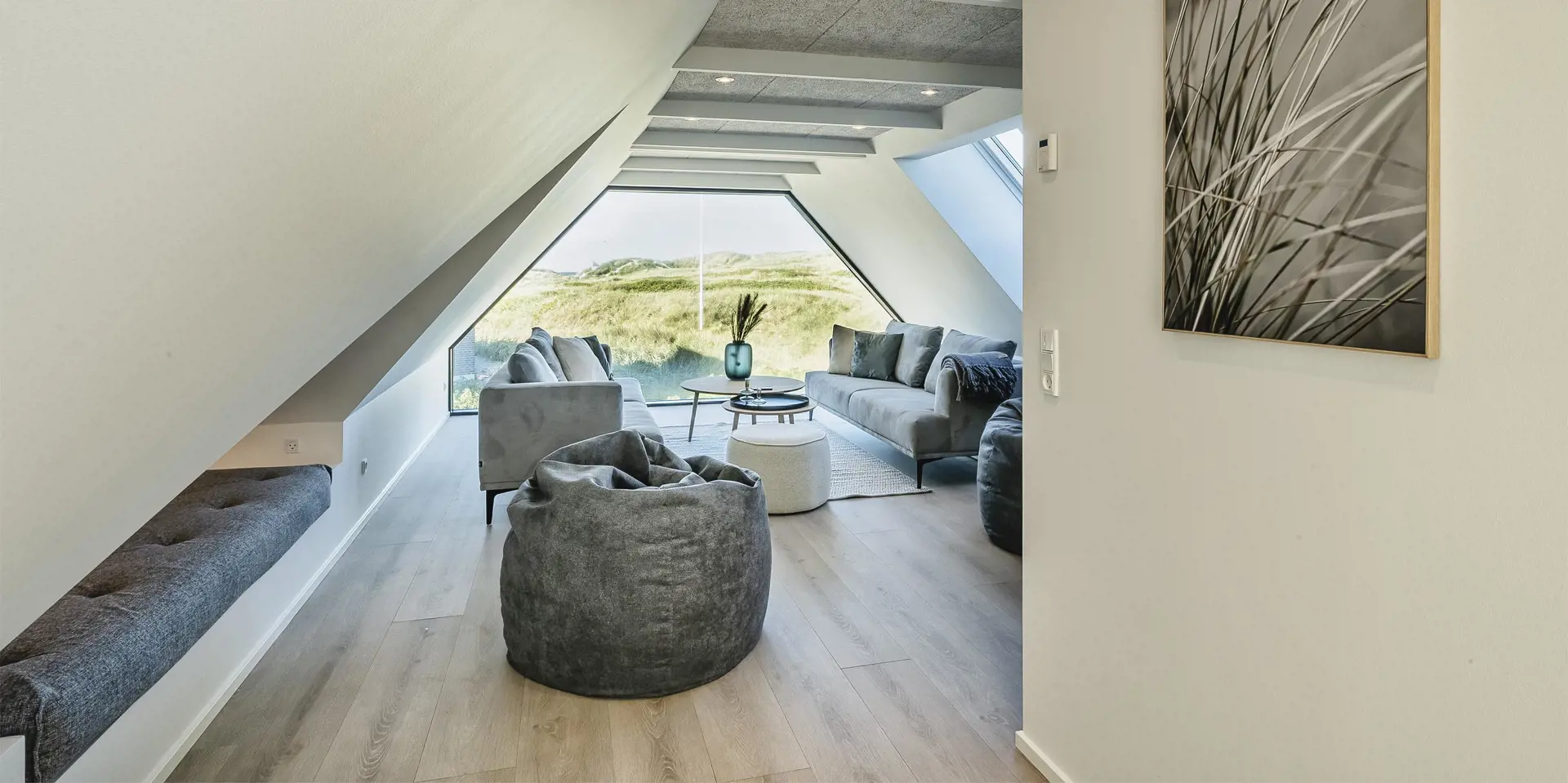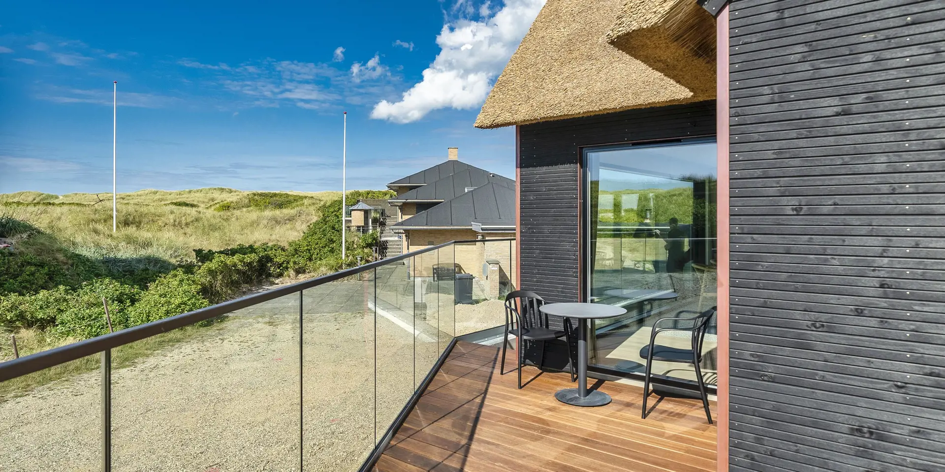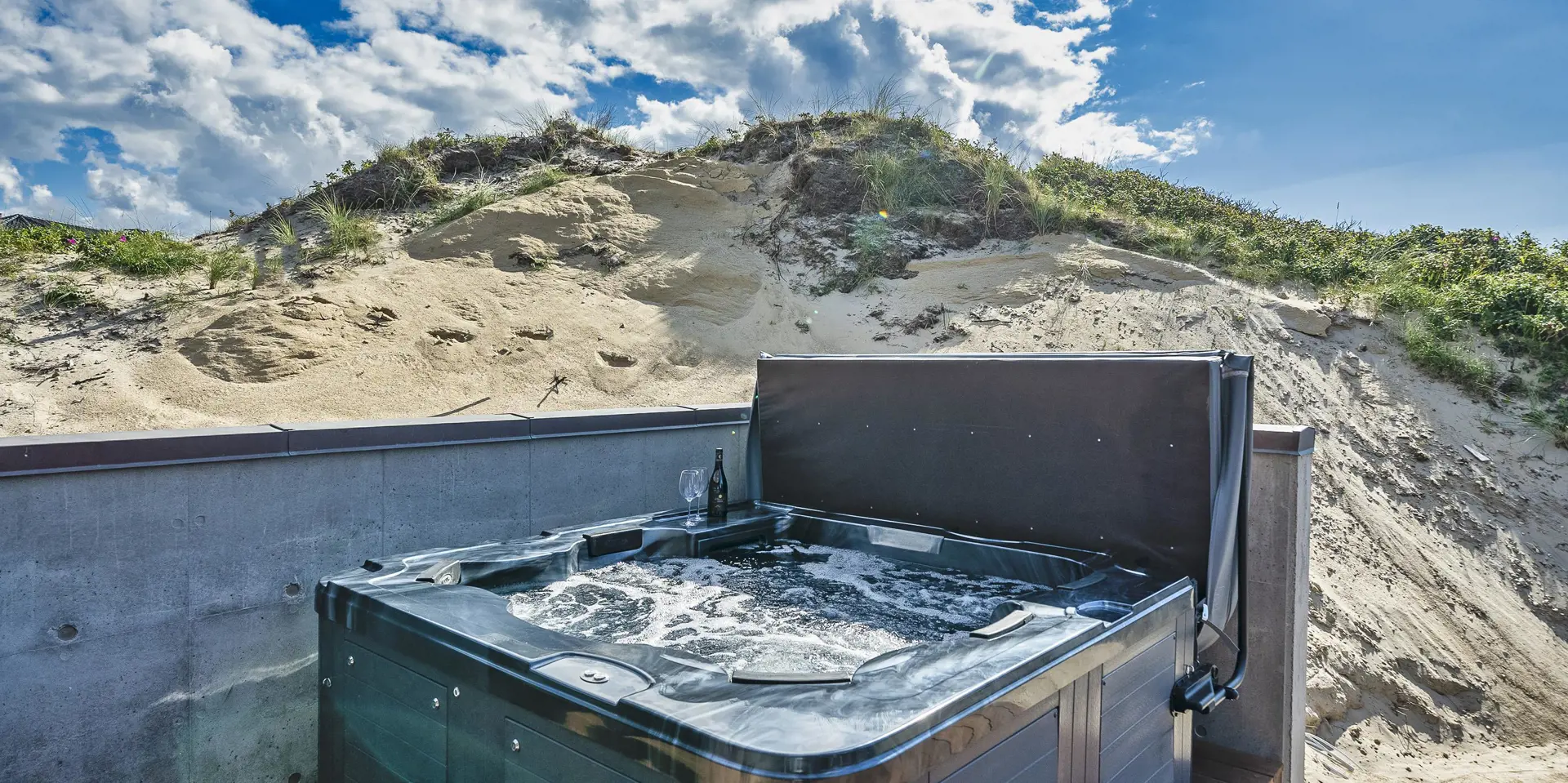 Das Ferienhaus bietet eine wunderbare Atmosphäre im modernen Stil und mit großen Panoramafenstern zum Meer. Es gibt einen Meerblick vom ersten Stock aus. Die Außenanlagen bieten wunderschöne Sonnenuntergänge, die von der großen umlaufenden Holzterrasse aus genossen werden können. Das Ferienhaus liegt auf einem Dünengrundstück und ca. 100 Meter vom Strand entfernt und in kurzer Entfernung zu Einkaufsmöglichkeiten und Restaurants.