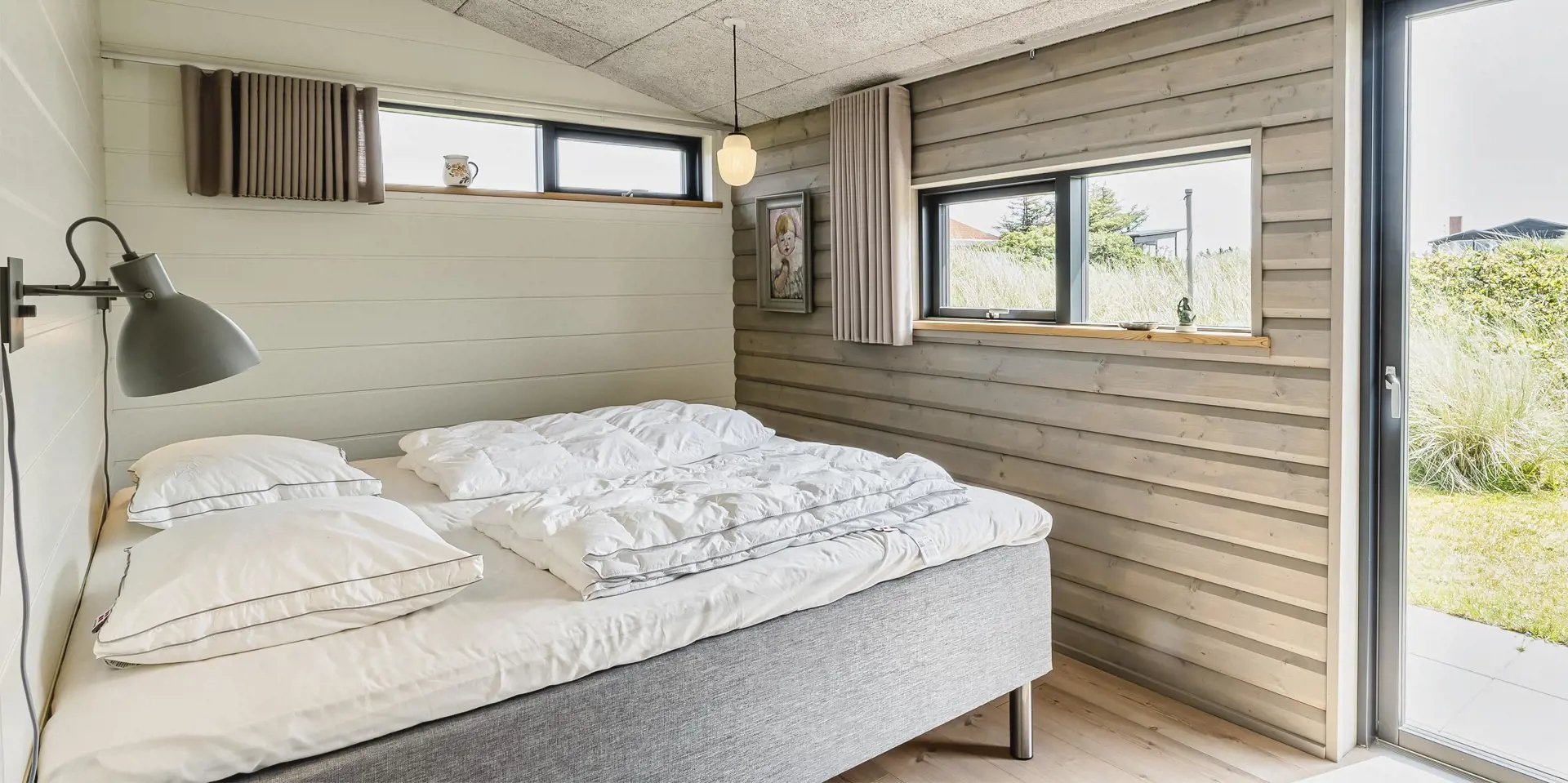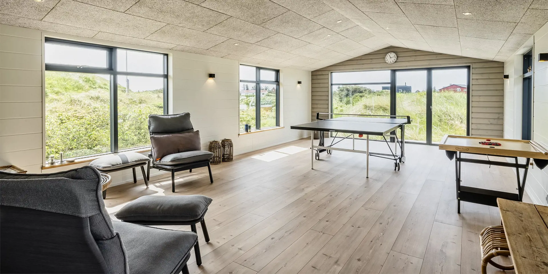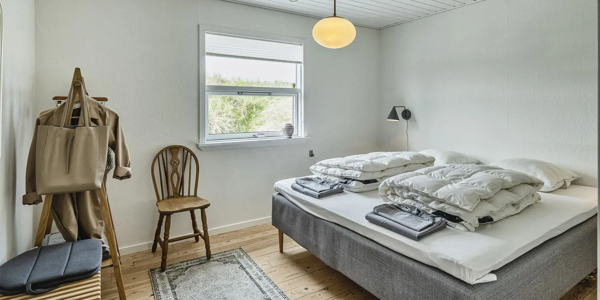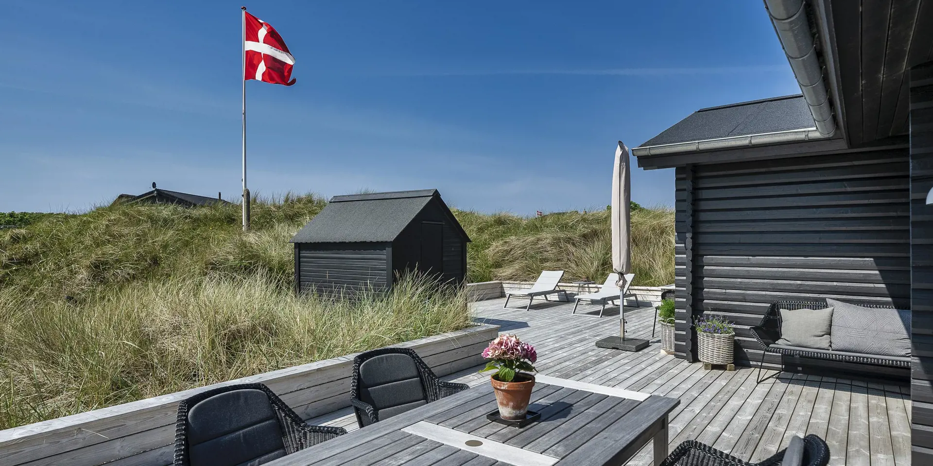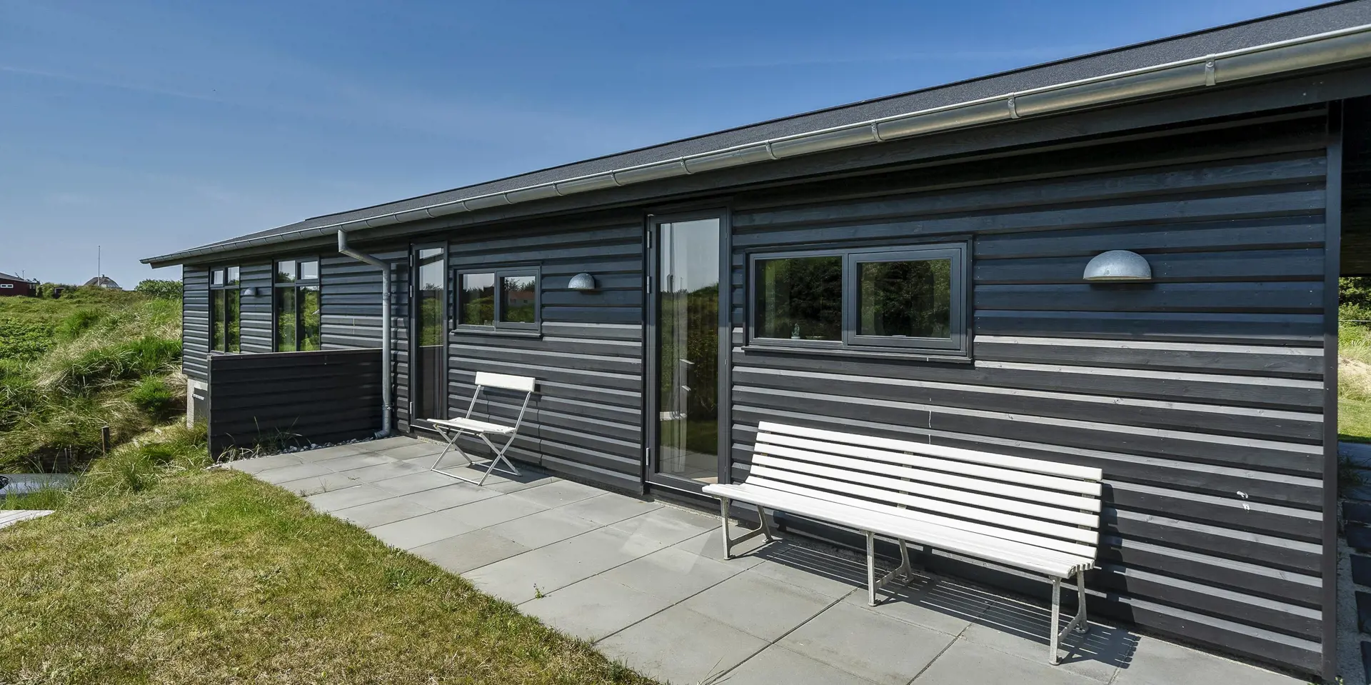 Spannendes und neurenoviertes Ferienhaus für insgesamt 8 Personen (6 Erwachsene und 2 Kindern). Das Gebäude wurde mit hochwertigen Materialien renoviert und in einem modernen und trendigen Design gestaltet, das sich gut in die Umgebung einpflegt. Das Ferienhaus liegt auf einem Dünengrundstück und der Strand ist nur Sage und Schreibe 200 Meter entfernt. Ebenso die Einkaufsmöglichkeiten und die Restaurants am Ort. Das Ferienhaus hat eine gesamte Wohnfläche von 185 m2 und ist in ein Haupthaus und Gästehaus aufgeteilt. Das Ferienhaus spendet eine großartige Atmosphäre im modernen und nordischen Stil. Der Eingangsbereich ist großzügig gehalten und verfügt wie ein Hauswirtschaftsraum über ein Handwaschbecken mit Ablagefläche. Ebenfalls ist hier die Waschmaschine untergebracht. Der Essbereich und das Wohnzimmer sind mit der Küche offengehalten. Der Wohnbereich verfügt über große Panoramafenster und wirkt daher sehr lichtdurchflutet. Das Fernsehprogramm empfangen Sie über Stofa, daher sind nur 5-8 deutsche Fernsehprogramme zu empfangen. Hier im Wohnbereich gibt es zusätzlich eine Warmepumpe. Mit dieser Warmepumpe können Sie die Stromkosten senken, da sie energiesparend ist. Die Küche ist modern und mit vielem Komfort ausgestattet. Sie beinhaltet einen Kochinsel, wo sich der Herd mit Ceranfeld, eine Dunstabzugshaube und der Backofen befindet. Gegenüber ist dann die Einbauküche mit Spüle, Geschirrspülmaschine, einer Mikrowelle und einer Kühl- und Gefrierkombination. Insgesamt gibt es vier Schlafzimmer im Ferienhaus. Zwei davon befinden sich im Haupthaus: DB + DB + DB + 2B. Ein großes Masterbadezimmer mit Handwaschbecken mit großer Ablagefläche, WC und Dusche steht den Gästen zur Verfügung.