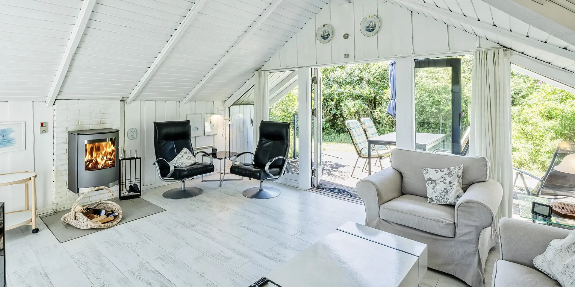 Der Eingangsbereich mit Platz für eine Garderobe. Das Haus ist hell und freundlich in der Ausstattung. Schöner Wohnbereich mit einem hängenden Kamin und offen zur Küche und zum Essbereich. Ein Radio und ein CD-Player befinden sich im Haus, TV-Programme werden über Satelit empfangen und Smart TV gestreamt. Und WLAN-Internetzugang befindet sich ebenfalls im Haus. Die Küche verfügt über eine Geschirrspülmaschine, einem Herd mit Cerankochfeld und einen Kühlschrank und kleinem Gefrierfach. Lichtdurchflutet, da sich hier im Küchenbereich ein Oberlicht befindet. Ein Badezimmer, ausgestattet mit einem WC, einem Handwaschbecken und einer Dusche. Die Waschmaschine ist auch hier im Bad untergebracht. Es gibt insgesamt zwei Schlafzimmer: 2B + 3B. Im Nebengebäude des Hauses befindet sich ein Wäschetrockner. Neben der geschlossenen Holzterrasse und der Südterrasse gibt es eine nach Westen ausgerichtete und teilweise überdachte Terrasse, auf der Sie die Natur und die Sonne genießen können. Hier steht ihnen Holzkohlegrill zur Verfügung. Bitte nach Gebrauch wieder gereinigt zurückstellen. Im Ferienhaus befindet sich eine Wärmepumpe. Mit dieser Wärmepumpe haben Sie die Möglichkeit die Energiekosten zu senken, denn sie ist energiesparend. Es darf ein Haustier mitgebracht werden. Rauchen im Ferienhaus ist verboten. Das Baujahr des Hauses ist von 1977, aber es wurde regelmäßig gewartet.