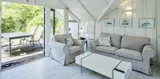 Die Außenanlagen bieten mehrere Terrassen, darunter eine schöne geschlossene Holzterrasse, die teilweise überdacht ist. Hier können die Abende bis in den Frühling/Herbst hinein verlängert und genossen werden. Der Ortskern liegt nur wenige Gehminuten vom Ferienhaus entfernt, das mehrere Restaurants, eine Bäckerei, eine Pizzeria, 2 Lebensmittelgeschäfte, eine Eisdiele mit Café bietet.