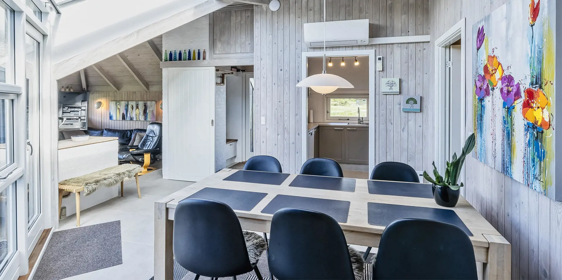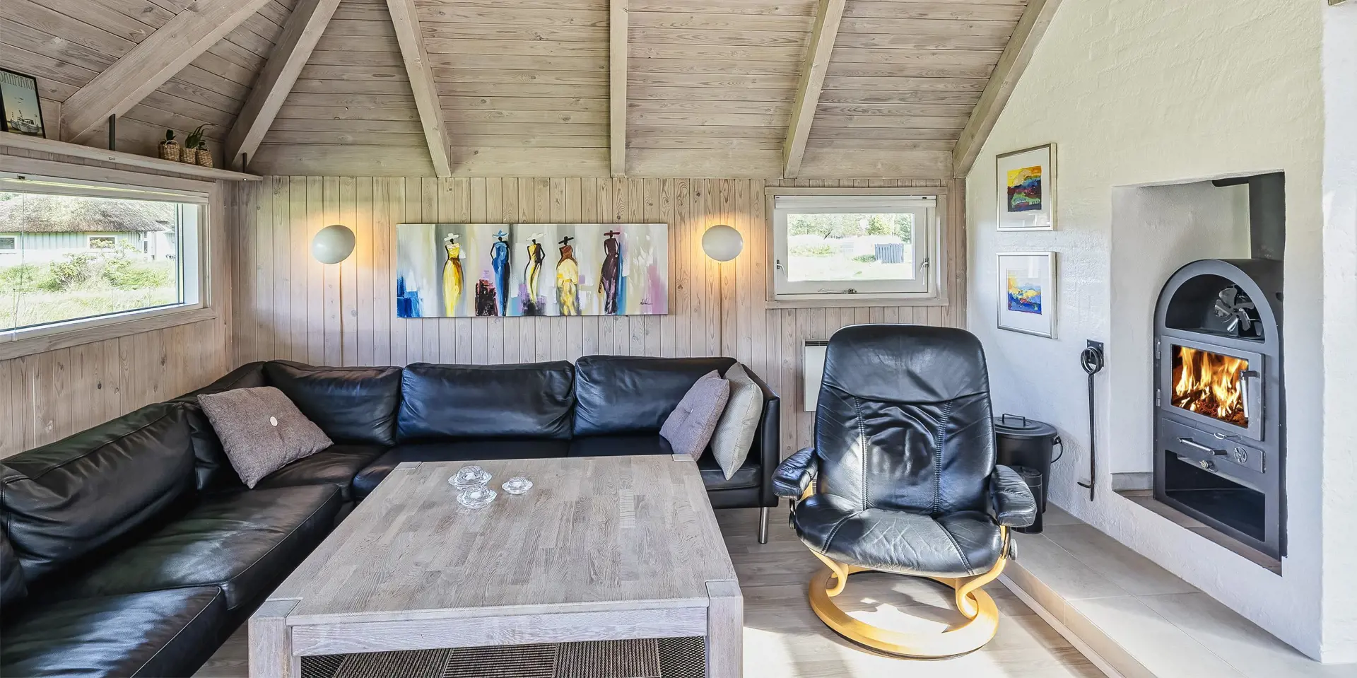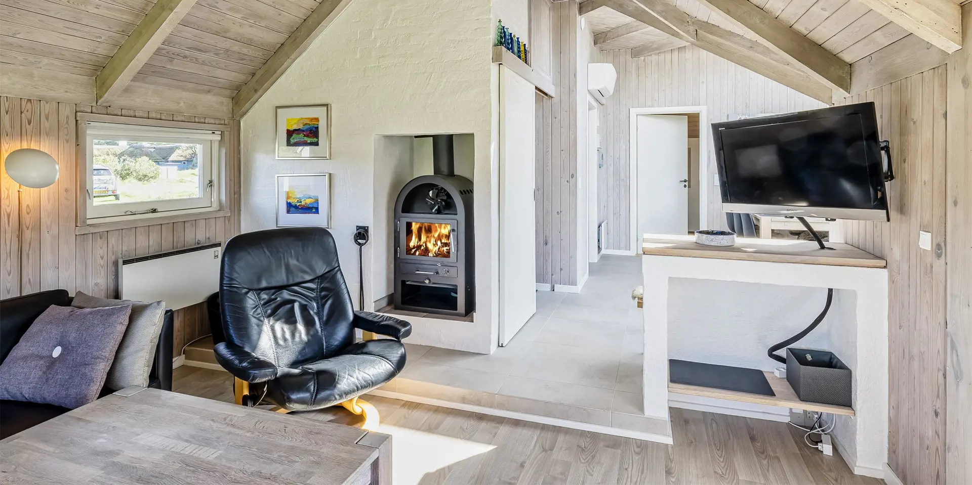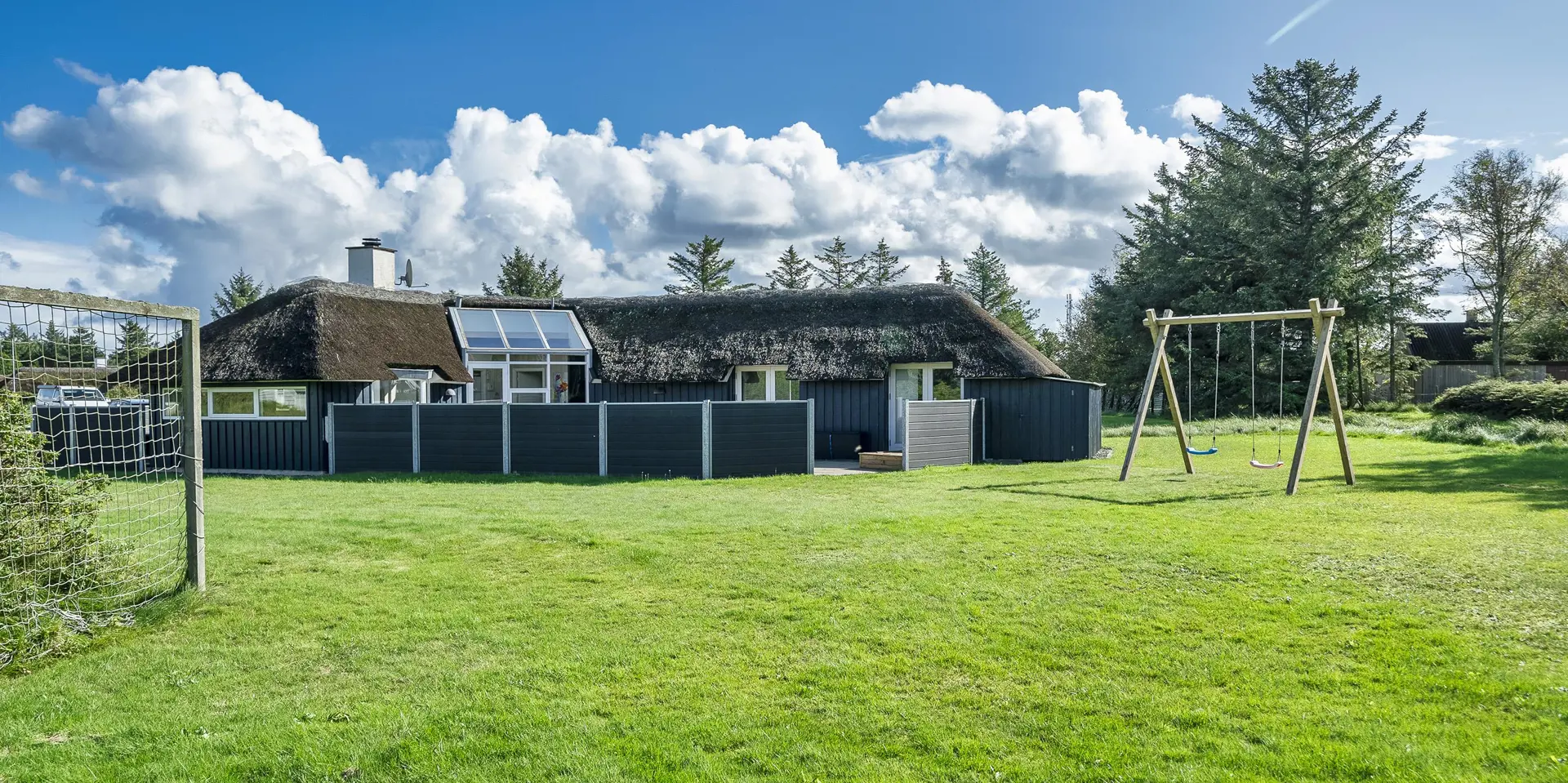 Der Eingangsbereich bietet Platz für die Garderobe und das Schuhwerk. Schöner Wohnbereich mit direktem Blick auf einem Kamin. Ein Fernseher, ein DVD-Abspielgerät, ein Radio, ein CD-Player und Internet W-Lan (Glasfaser 200/200) bietet das Ferienhaus ebenfalls. Die moderne Küche ist mit einem Herd mit Ceranfeld, einem Backofen, einer Geschirrspülmaschine, einer Mikrowelle und einer Kühl- und Gefrierkombination ausgestattet. Im ersten Teil des Flurbereiches ist die Essgruppe untergebracht. Dort befinden sich große Oberlichter und einen Ausgang zur Terrasse so dass dieser Teil lichtdurchflutet scheint. Es kann direkt von der Küche gleich auf den Esstisch servieret werden. Das Badezimmer hat ein großes Wascharrangement, ein WC und eine Dusche, ebenfalls ist das Badezimmer mit einer Fußbodenheizung ausgestattet. Eine Waschmaschine und ein Trockner sind im Bad untergebracht und stehen Ihnen selbstverständlich zur Benutzung bereit. Insgesamt gibt es vier Schafzimmer: DB + DB + 2B + EB. Das eine große Schlafzimmer hat einen Zugang zur Terrasse. Eine Wärmepumpe ist im Ferienhaus installiert. Mit dieser Wärmepumpe haben Sie die Möglichkeit die Stromkosten zu senken, da sie energiesparend ist. Für die kleinen Gäste stehen ein Schaukelstativ, ein Sandkasten und ein Shuffleboard zur Verfügung. Schöne große, teilweise geschlossene Terrasse nach Südwesten ausgerichtet. Auf der Terrasse lassen sich die Tage von morgens bis abends genießen und zusätzlich können Sie den Sonnenuntergang genießen. Im Sommer steht Ihnen ein Grill zur Verfügung. Das Rauchen im Ferienhaus ist untersagt. Es sind keine Haustiere erlaubt. Das Ferienhaus wurde im Jahr 1988 erbaut und im Jahre 2023 renoviert.