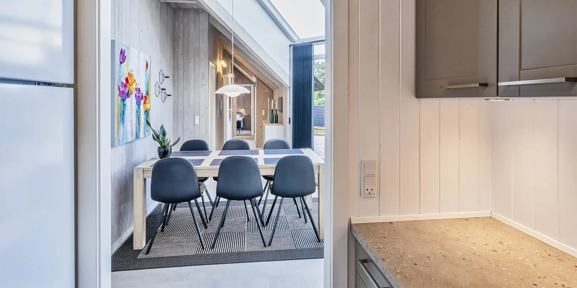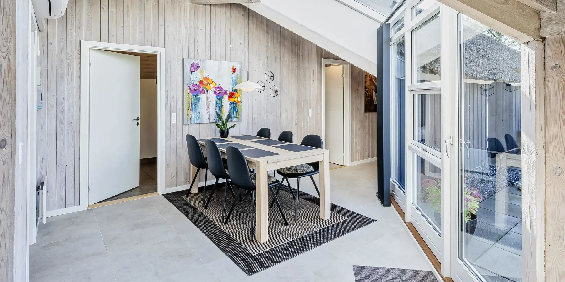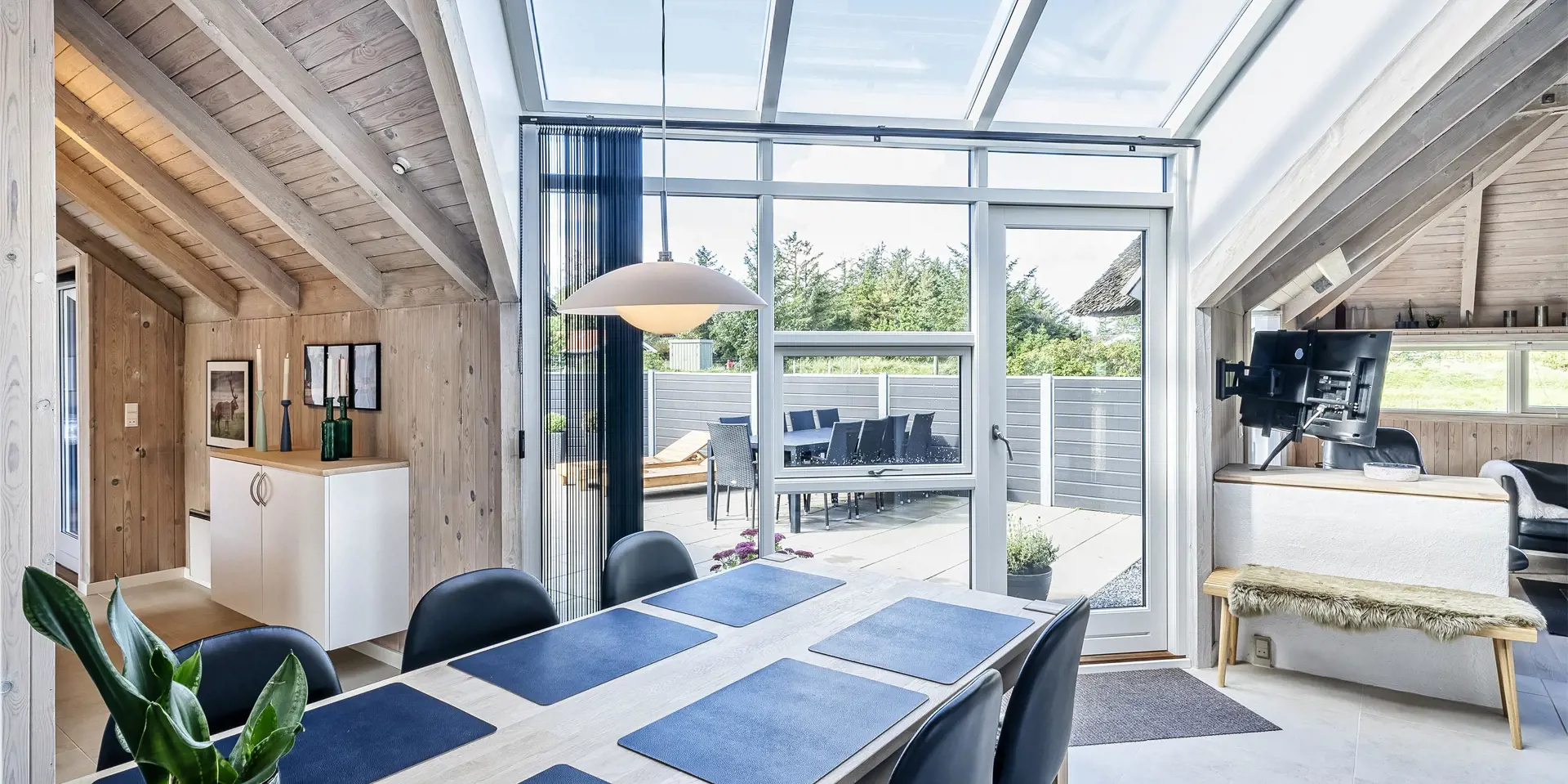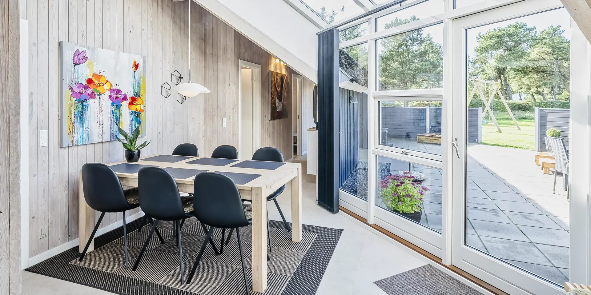 Der Eingangsbereich bietet Platz für die Garderobe und das Schuhwerk. Schöner Wohnbereich mit direktem Blick auf einem Kamin. Ein Fernseher, ein DVD-Abspielgerät, ein Radio, ein CD-Player und Internet W-Lan (Glasfaser 200/200) bietet das Ferienhaus ebenfalls. Die moderne Küche ist mit einem Herd mit Ceranfeld, einem Backofen, einer Geschirrspülmaschine, einer Mikrowelle und einer Kühl- und Gefrierkombination ausgestattet. Im ersten Teil des Flurbereiches ist die Essgruppe untergebracht. Dort befinden sich große Oberlichter und einen Ausgang zur Terrasse so dass dieser Teil lichtdurchflutet scheint. Es kann direkt von der Küche gleich auf den Esstisch servieret werden. Das Badezimmer hat ein großes Wascharrangement, ein WC und eine Dusche, ebenfalls ist das Badezimmer mit einer Fußbodenheizung ausgestattet. Eine Waschmaschine und ein Trockner sind im Bad untergebracht und stehen Ihnen selbstverständlich zur Benutzung bereit. Insgesamt gibt es vier Schafzimmer: DB + DB + 2B + EB. Das eine große Schlafzimmer hat einen Zugang zur Terrasse. Eine Wärmepumpe ist im Ferienhaus installiert. Mit dieser Wärmepumpe haben Sie die Möglichkeit die Stromkosten zu senken, da sie energiesparend ist. Für die kleinen Gäste stehen ein Schaukelstativ, ein Sandkasten und ein Shuffleboard zur Verfügung. Schöne große, teilweise geschlossene Terrasse nach Südwesten ausgerichtet. Auf der Terrasse lassen sich die Tage von morgens bis abends genießen und zusätzlich können Sie den Sonnenuntergang genießen. Im Sommer steht Ihnen ein Grill zur Verfügung. Das Rauchen im Ferienhaus ist untersagt. Es sind keine Haustiere erlaubt. Das Ferienhaus wurde im Jahr 1988 erbaut und im Jahre 2023 renoviert.