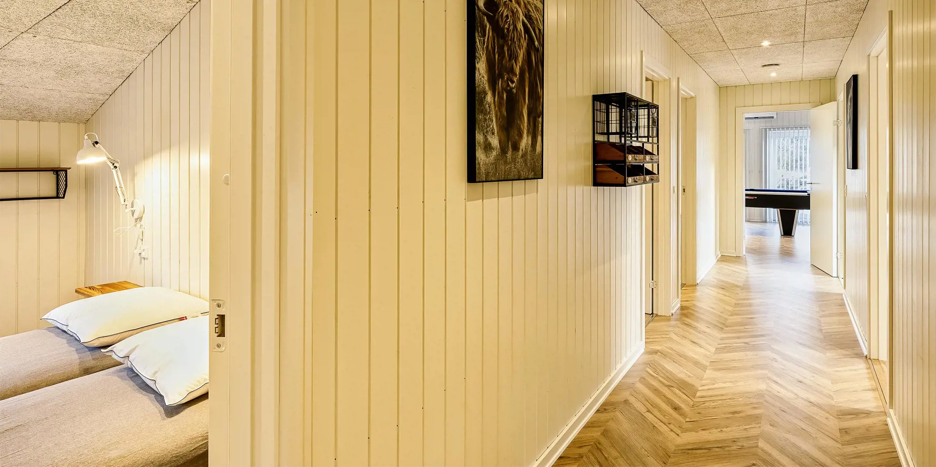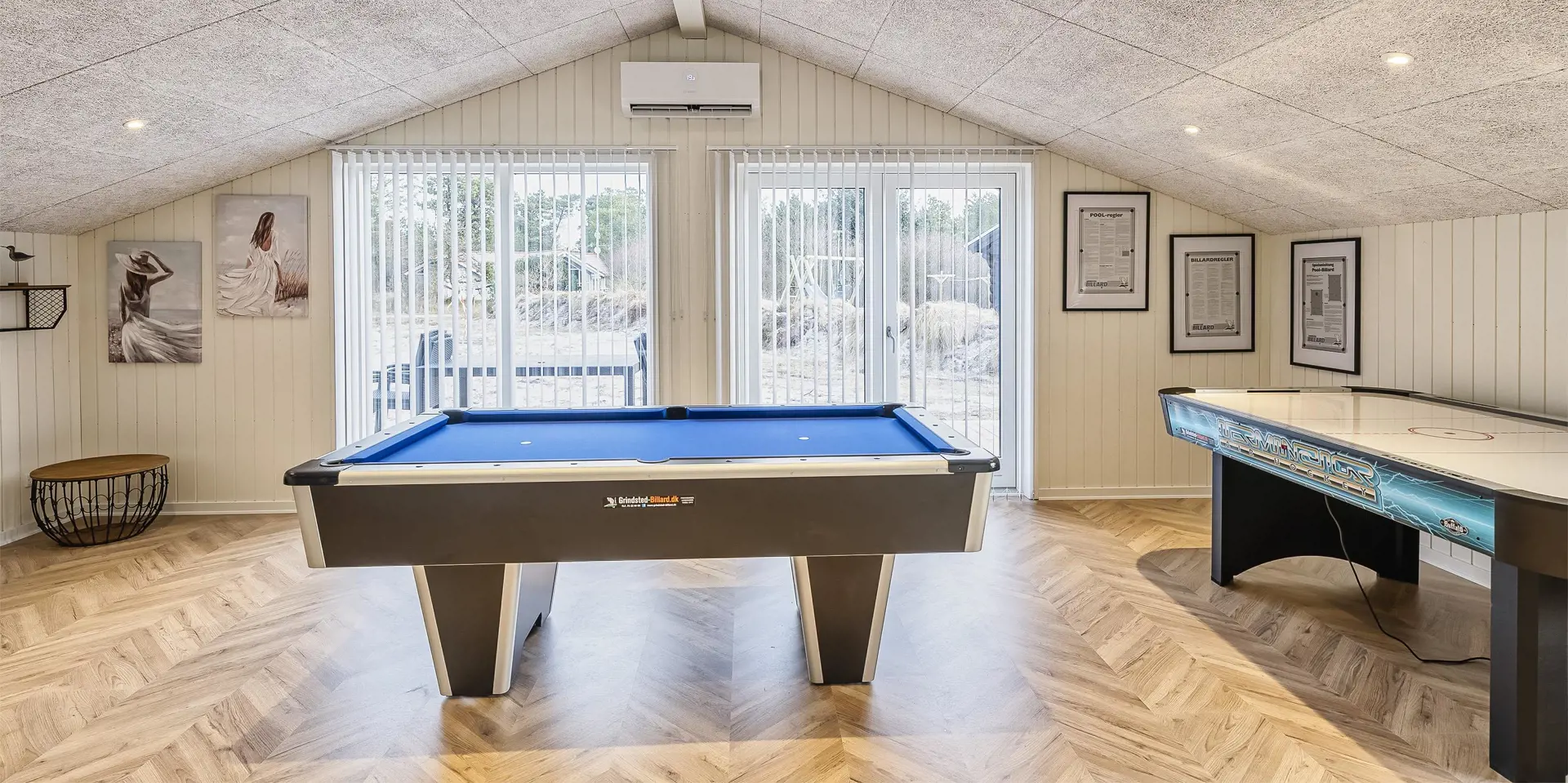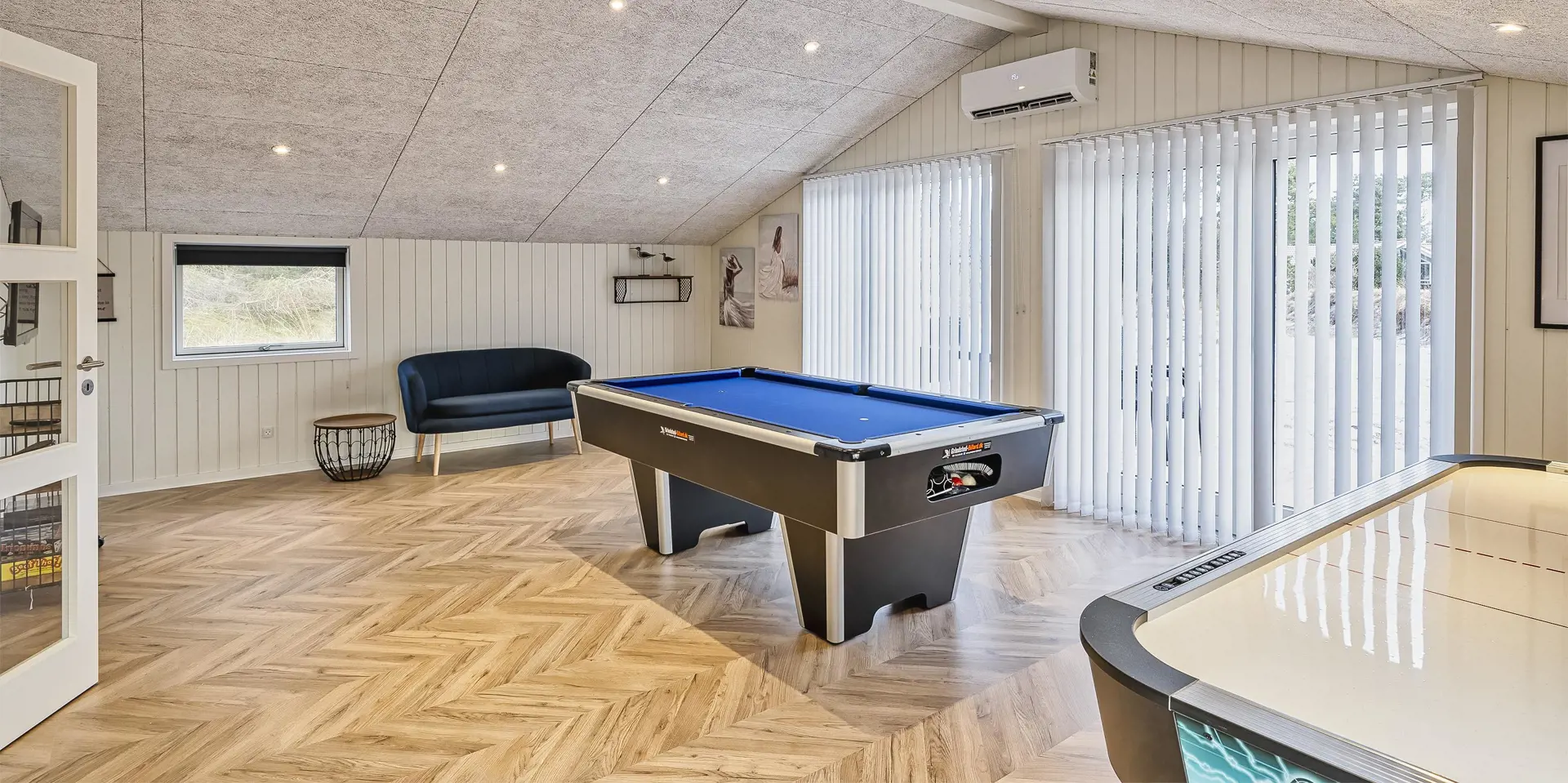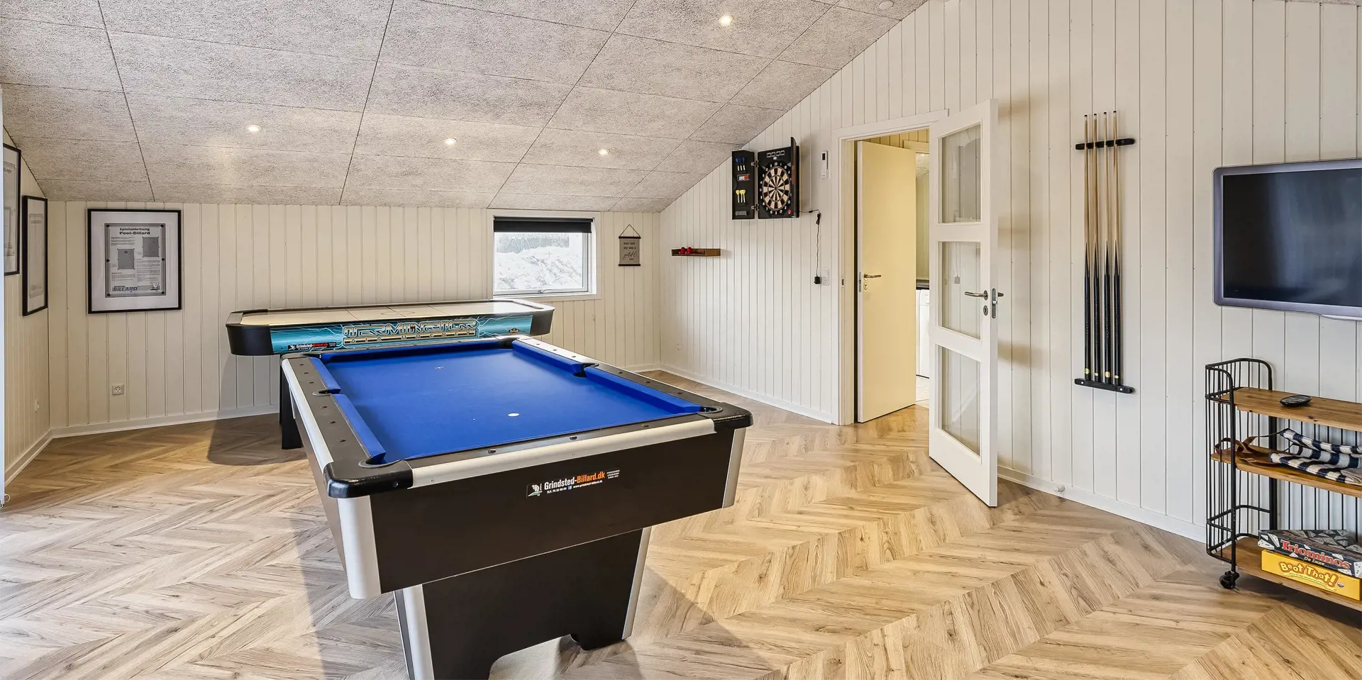 In dem Eingangsbereich des Hauses ist Platz für die Garderobe und das Schuhwerk. Desweiteren stehen hier die Waschmaschine und der Trockner. Auf insgesamt 166 m2 bietet dieses Ferienhaus genügend Platz und Komfort. Es strahlt eine gemütliche Atmosphäre aus. Der Wohnbereich ist mit dem Essbereich zusammen und hat einen offenen großzügigen Küchenbereich. Im Wohnbereich befindet sich ein Kaminofen. Außerdem befindet sich auch die Wärmepumpe im Wohnbereich. Mit dieser Wärmepumpe haben Sie die Möglichkeit die Stromkosten zu senden, da sie energiesparend ist.Das deutsche Fernsehrprogramm empfangen sie über den Anbieter Stofa, daher sind nur 5-8 deutsche Kanäle zu empfangen. Die Küche ist modern und komfortabel ausgestattet mit einem Herd mit Cerankochfeld, einem Backofen in arbeitshöhe, einer Geschirrspülmaschine, einer Mikrowelle und einer Kühl- und Gefrierkombination. Es stehen den Gästen zwei schöne neue Badezimmer zur Verfügung. Beide ausgestattet mit Fußbodenheizung, einem WC, einen Handwaschbecken und einer Dusche. In dem einem Badezimmer befindet sich zusätzlich eine Sauna. Insgesamt gibt es vier Schlafzimmer im Ferienhaus, alle verfügen über je einem Doppelbett. Ein Aktivitätsraum mit Billardtisch, Dartscheibe und Air Hockey, wo sich Groß und Klein austoben können ist gegeben. Das Ferienhaus verfügt über ein W-Lan-Anschluss. Es ist einen Hund erlaubt. Das Rauchen im Ferienhaus ist nicht gestattet. Das Ferienhaus ist im Jahr 1983 erbaut worden. Der Neuere Teil des Hauses ist angebaut im Jahr 2023 und ebenfalls im bestehenden Haus wurde in 2023 renoviert. Eine schöne Holzterrasse gibt dem Ferienhaus einen besonderen Abschluss. Ein Teil der Terrasse ist großzügig überdacht. Es steht den Gästen ein Gasgrill zur Verfügung (der Mieter muss das Gas für den Grill sselbst besorgen). Auf dem großzügigen Terrassenbereich können die Abende bis spät in den Frühling oder auch Herbst genossen werden. Gute Parkmöglichkeiten sind am Ferienhaus gegeben. Das Grundstück ist 3000 m2 groß. Für die Kleinen Gäste befindet sich auf dem Grundstück noch eine Schaukel und einen Spielturm. Hier können sie toben und raufen was das Herz begehrt.