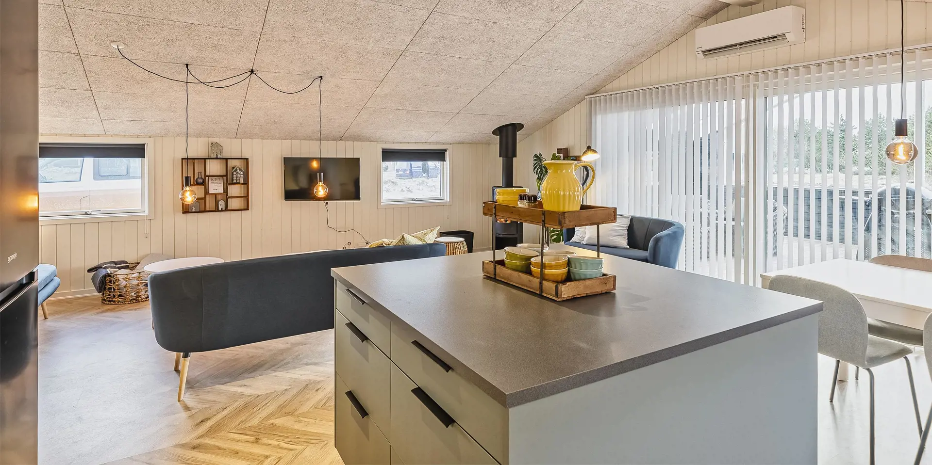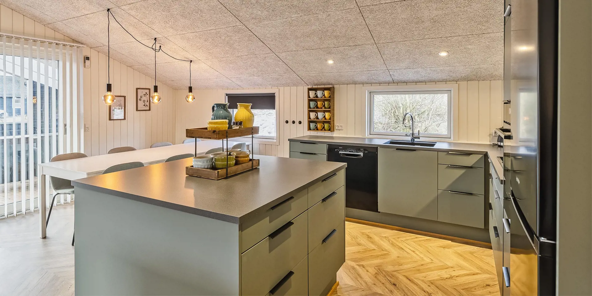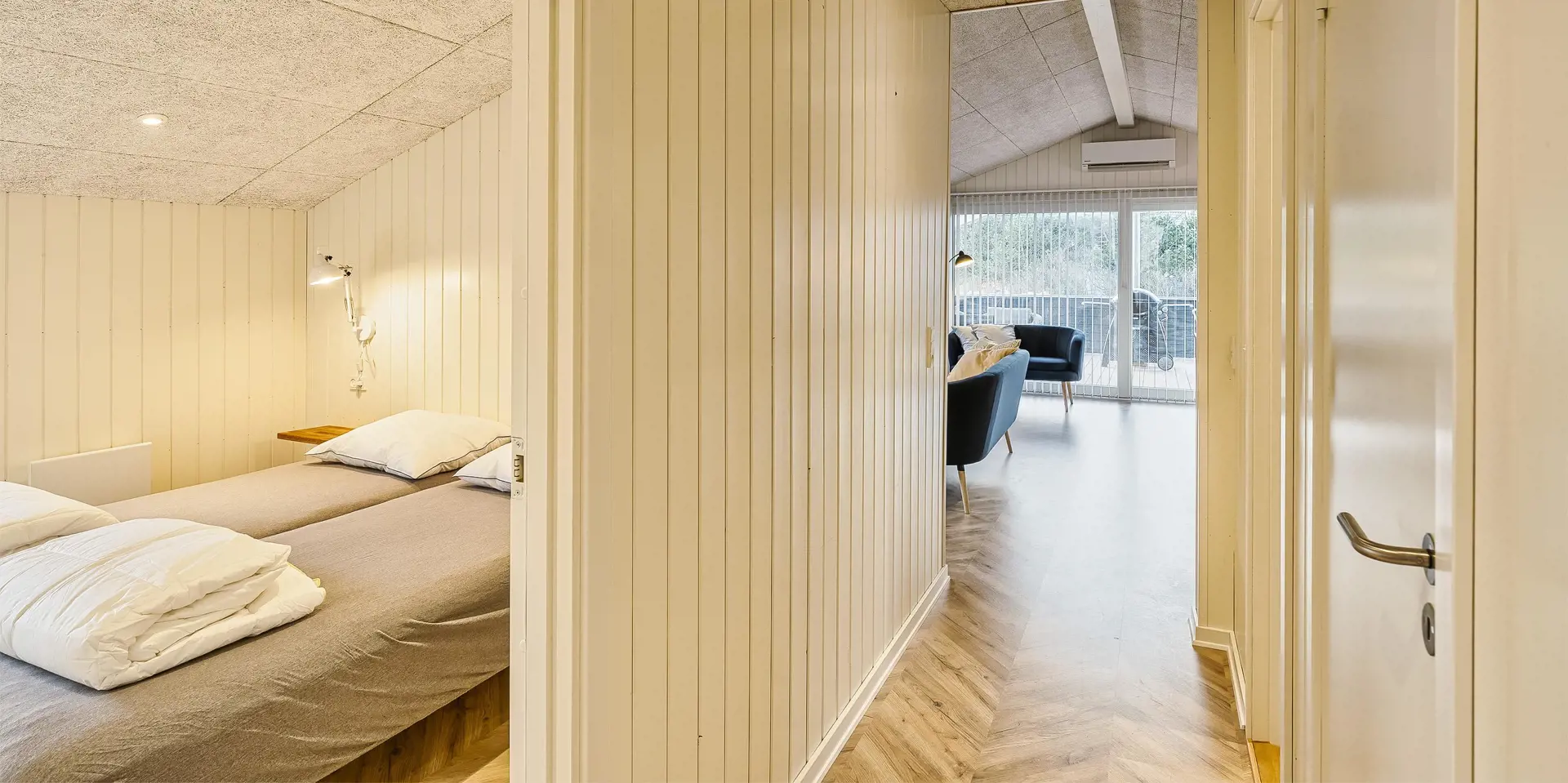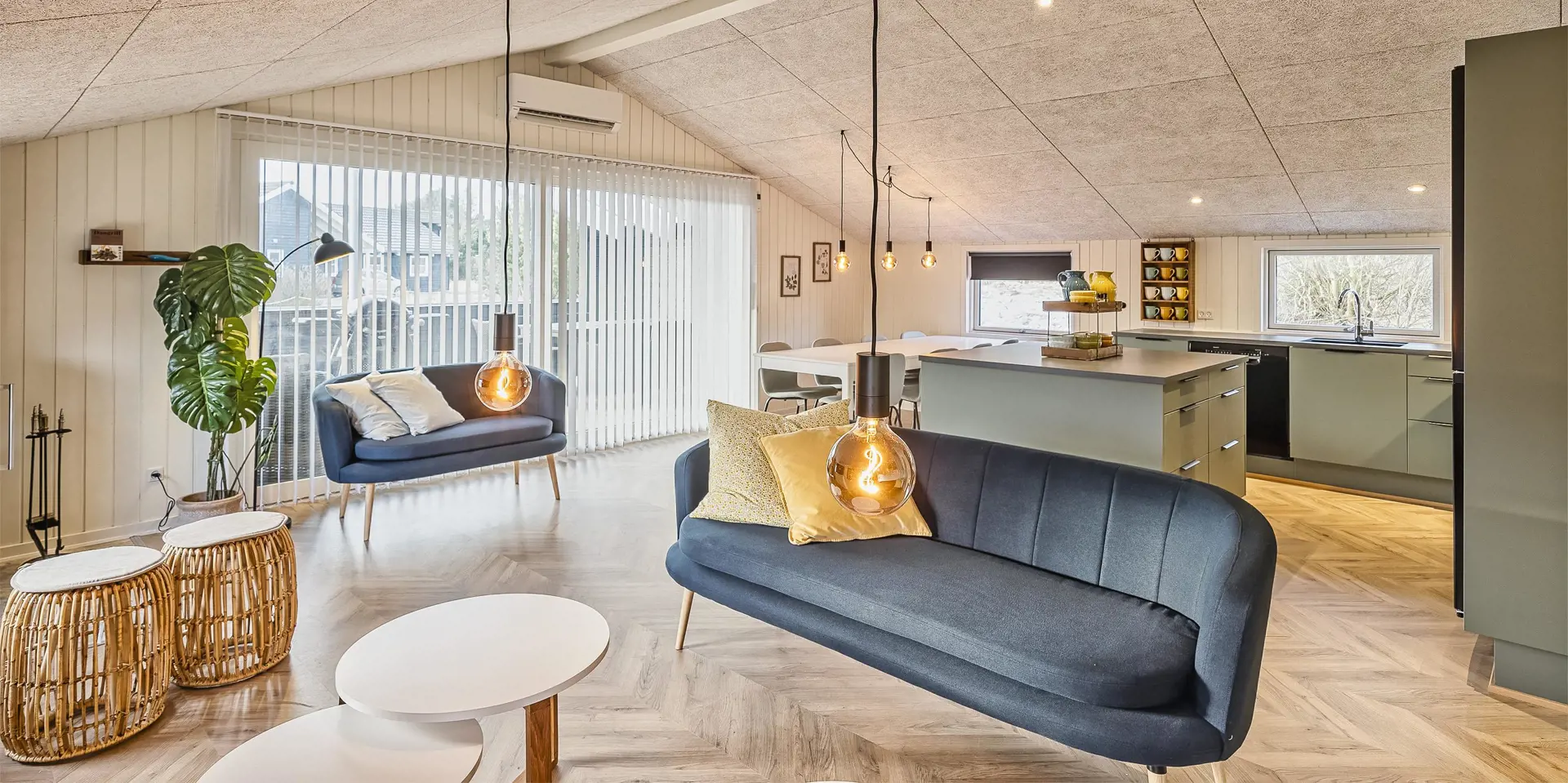 In dem Eingangsbereich des Hauses ist Platz für die Garderobe und das Schuhwerk. Desweiteren stehen hier die Waschmaschine und der Trockner. Auf insgesamt 166 m2 bietet dieses Ferienhaus genügend Platz und Komfort. Es strahlt eine gemütliche Atmosphäre aus. Der Wohnbereich ist mit dem Essbereich zusammen und hat einen offenen großzügigen Küchenbereich. Im Wohnbereich befindet sich ein Kaminofen. Außerdem befindet sich auch die Wärmepumpe im Wohnbereich. Mit dieser Wärmepumpe haben Sie die Möglichkeit die Stromkosten zu senden, da sie energiesparend ist.Das deutsche Fernsehrprogramm empfangen sie über den Anbieter Stofa, daher sind nur 5-8 deutsche Kanäle zu empfangen. Die Küche ist modern und komfortabel ausgestattet mit einem Herd mit Cerankochfeld, einem Backofen in arbeitshöhe, einer Geschirrspülmaschine, einer Mikrowelle und einer Kühl- und Gefrierkombination. Es stehen den Gästen zwei schöne neue Badezimmer zur Verfügung. Beide ausgestattet mit Fußbodenheizung, einem WC, einen Handwaschbecken und einer Dusche. In dem einem Badezimmer befindet sich zusätzlich eine Sauna. Insgesamt gibt es vier Schlafzimmer im Ferienhaus, alle verfügen über je einem Doppelbett. Ein Aktivitätsraum mit Billardtisch, Dartscheibe und Air Hockey, wo sich Groß und Klein austoben können ist gegeben. Das Ferienhaus verfügt über ein W-Lan-Anschluss. Es ist einen Hund erlaubt. Das Rauchen im Ferienhaus ist nicht gestattet. Das Ferienhaus ist im Jahr 1983 erbaut worden. Der Neuere Teil des Hauses ist angebaut im Jahr 2023 und ebenfalls im bestehenden Haus wurde in 2023 renoviert. Eine schöne Holzterrasse gibt dem Ferienhaus einen besonderen Abschluss. Ein Teil der Terrasse ist großzügig überdacht. Es steht den Gästen ein Gasgrill zur Verfügung (der Mieter muss das Gas für den Grill sselbst besorgen). Auf dem großzügigen Terrassenbereich können die Abende bis spät in den Frühling oder auch Herbst genossen werden. Gute Parkmöglichkeiten sind am Ferienhaus gegeben. Das Grundstück ist 3000 m2 groß. Für die Kleinen Gäste befindet sich auf dem Grundstück noch eine Schaukel und einen Spielturm. Hier können sie toben und raufen was das Herz begehrt.