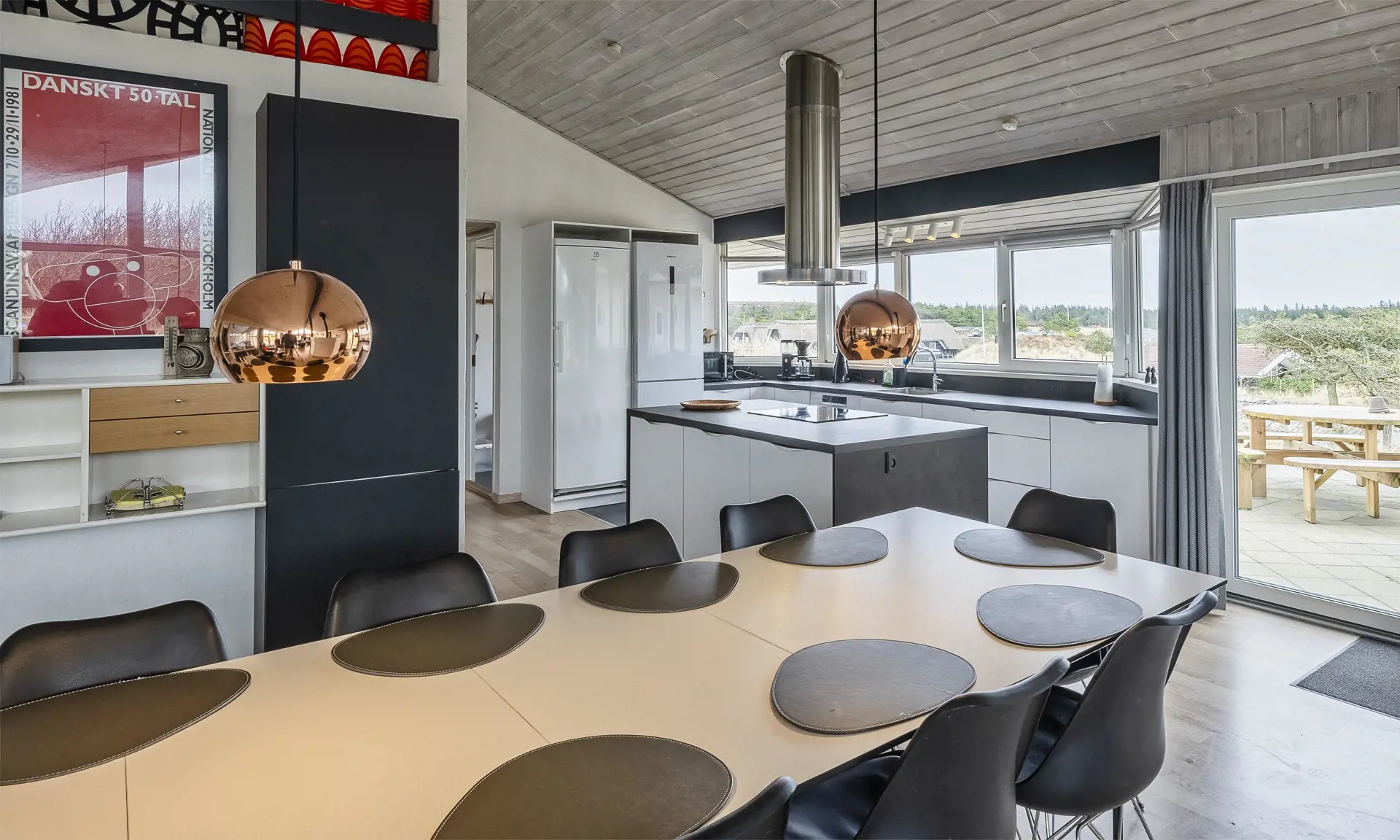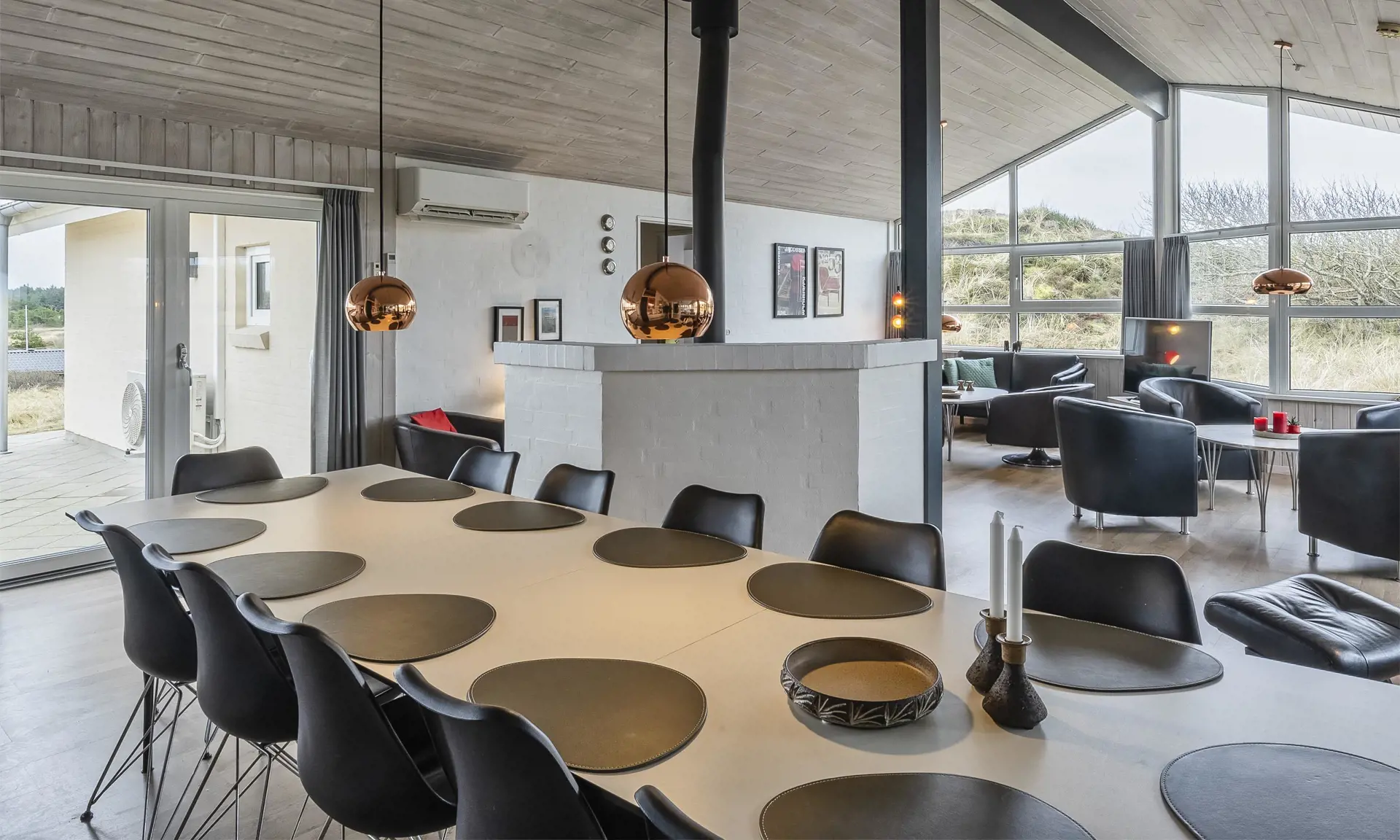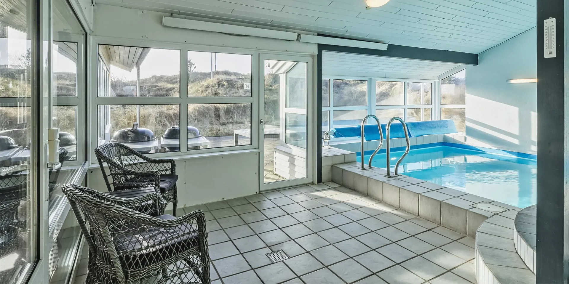 Das Poolhaus bietet auf insgesamt 223 qm Wohnfläche reichlich Platz für all seine Gäste. Der Eingangsbereich bietet Platz für Garderobe und Schuhwerk. Schönes lichtdurchflutet Wohnbereich und offen zum Essbereich und der Küche. Im mittleren Bereich des Wohn- und Essbereiches und der Küche befinde sich der Kaminofen. Dadurch entstehen eine schöne Atmosphäre und Gemütlichkeit. Ein TV-Gerät, ein Radio und ein CD-Player steht Ihnen auch zur Verfügung. Das Fernsehprogramm ist über den Anbieter Stofa, daher gibt es nur ca. 5-8 deutsche und ca. 4 dänische Kanäle. Die Küche verfügt über einen guten Komfort und ist mit einem Herd mit Cerankochfeld, einer Geschirrspülmaschine, einer Mikrowelle, einer Kühl- und Gefrierkombination (94 ltr. Gefriervermögen) und einem zusätzlichen Kühlschrank ausgestattet. Von der Küche aus gibt es Zugang zur Terrasse. Das Haus verfügt über zwei schöne Badezimmer. Beide sind mit einer Fußbodenheizung versehen. In einem der Badezimmer sind der Trockner und eine Waschmaschine untergebracht. In beiden Bädern befinden sich ein WC, ein Handwaschbecken und während und eine Dusche. In dem Bad ohne die Waschmaschine und Trockner gibt es eine Sauna. Das Haus verfügt über insgesamt 6 Schlafzimmer. 5 Schlafzimmer mit je 1 Doppelbett und 1 Schlafzimmer mit 2 Einzelbetten (6 Schlafzimmer: DS + DS + DS + DS + DS + 2ES). Der Poolraum ist separat und der Swimmingpool hat eine Größe von ca. 7,7 x 3 x 1,3 meter ( Länge x Breite x Tiefe). Der gesamte Poolbereich ist mit einer Fußbodenheizung ausgestattet. Der Whirlpool ist ein Standwasser-Whirlpool ( für ca. 5 Personen). Das Ferienhaus verfügt zusätzlich über eine Wärmepumpe. Mit dieser Wärmepumpe haben Sie die Möglichkeit die Stromkosten zu senken, da Sie energiesparend ist. Auf dem 3800 qm grossen Naturgrundstück befindet sich eine Schaukel und eine Sandkiste für die Kleinen Gäste. Großzügiger gefliester Terrassenbereich und im Sommer stehen Ihnen 2 Holzkohlegrills zur Verfügung. Bitte nach Gebrauch wieder gereinigt zurückstellen. Im Haus gibt es einen Internetanschluss (W-Lan). Das Rauchen im Ferienhaus ist verboten. Es ist ein Haustier erlaubt. Es gibt gute Parkmöglichkeiten am Ferienhaus. Das Ferienhaus ist in 1993 erbaut worden und renoviert in 2021. Die Außenanlagen bieten eine große offene Terrasse, auf der die Abende bis weit in den Frühling/Herbst hinein verlängert und genossen werden können. Es fallen zusätzliche Kosten für den Wasserverbrauch an. Fragen sie im Büro nach bezüglich des Betrages.