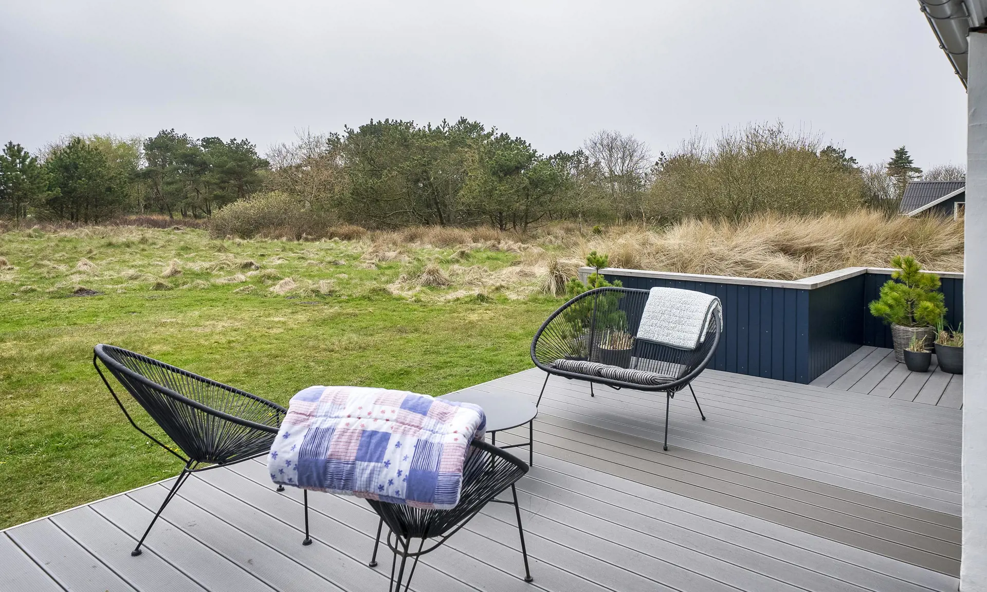 Gemütlich neu renoviertes Ferienhaus auf einem schönen Naturgrundstück gelegen. Das Ferienhaus bietet für 6 Personen genügend Platz. Der Strand ist ca. 1000 Meter vom Ferienhaus fußläufig erreichbar. Gute Parkmöglichkeiten am Ferienhaus vorhanden. Der Wohnbereich ist offen gehalten zusammen mit dem Speiseplatz und der Küche. Eine Gemütliche Sofaecke mit tollem Ausblick. Zwischen der Sofaecke und der Leseecke im Haus befindet sich ein hängender Kamin. Dieser sorgt für eine wohlige Wärme und Gemütlichkeit. Deutsche Fernsehprogramme kann auch empfangen werden. Es gibt YouSee App für das Fernsehen und Smart TV. Desweiteren befinden sich auch Bluethooth Lautsprecher. Die modern und gut eingerichtete Küche verfügt über einen Herd mit Ceranfeld, einem Backofen, einer Mikrowelle, einer Geschirrspülmaschine und einer Kühl- und Gerfrierrkombination. Das Badezimmer ist mit einer Fußbodenheizung ausgestattet und hat ein Handwaschbecken, ein WC und eine Dusche. Insgesamt stehen den Gästen drei Schlafzimmer zur Verfügung. Alle drei Schlafzimmer sind mit Doppelbetten (DB + DB + DB). Das Ferienhaus verfügt über einen Internetanschluss (W-Lan). Es ist maximal ein Haustier erlaubt. Das Ferienhaus wurde im Jahre 1978 erbaut und im Jahr 2024 renoviert. Das Rauchen im Ferienhaus ist nicht erlaubt. Rund ums Haus befinden sich drei schöne Terrassenbereiche. Einer davon ist auch teilweise überdacht. Hier kann zu jedem Tag und Saisonzeit der Sonne gefolgt werden bei einer Tasse Kaffee am nachmittag oder mit einem Grillabend.