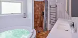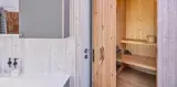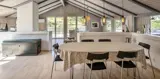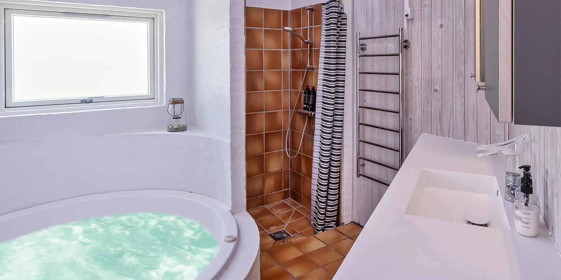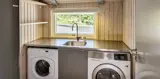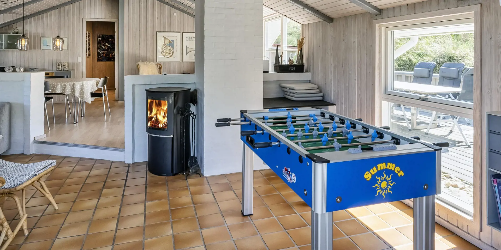 Das Wohnzimmer ist mit einem Essbereich und einer gemütlichen Wohnecke eingerichtet, wo sich die Familie um den Kaminofen versammeln kann. Den Kaminofen angefeuert, strahlt er eine angenehme Wärme und Gemütlichkeit aus. Ein Tischfussball ist hier auch aufgestellt, so das ein einem nicht langweilig wird. Zusätzlich befindet sich eine Wärmepumpe im Ferienhaus und mit dieser Wärmepumpe haben Sie die Möglichkeit die Stromkosten zu senken, denn sie ist energiesparend. Das Ferienhaus verfügt über einen kostenlosen W-Lan-Zugang. Das deutsche Fernsehprogramm empfangen Sie über eine Sat-Anlage. Der Küchenbereich ist offengehalten und lässt Sie am Geschehen im Hause teilhaben, auch wenn Sie dabei sind z.B. das Mittagessen vorzubereiten. Die Oberlichter über dem Handwaschbecken spenden viel Licht in den Bereich. Die Küche verfügt über einen Herd mit Cerankochfeld, einem Backofen in arbeitshöhe, einer Mikrowelle, einer Geschirrspülmaschine und einer Kühl- und Gefrierkombination. Die Küche ist mit einer Fußbodenheizung versehen ebenso die Bäder. Das Badezimmer verfügt über ein WC, ein Handwaschbecken, eine Dusche, ein Standwasser-Whirlpool und eine Sauna, wo Sie entspannende Wellness-Momente genießen können. Es gibt auch ein Gäste-WC mit Dusche sowie einen praktischen Hauswirtschaftsraum mit Waschmaschine und Trockner. Das Ferienhaus verfügt insgesamt vier komfortable Schlafzimmer. Drei der Schlafzimmer verfügen je über ein Doppelbett (DS+DS+DS) und ein Schlafzimmer mit zwei Einzelbetten (2ES). Das Ferienhaus bietet eine große, geschützte und geschlossene Terrasse, auf der Sie Ihre Mahlzeiten im Freien genießen oder einfach mit einem guten Buch und einer Tasse Kaffee entspannen können. Das Rauchen im Ferienhaus ist nicht erlaubt. Es sind keine Haustiere erlaubt. Baujahr des Hauses ist von 1995.