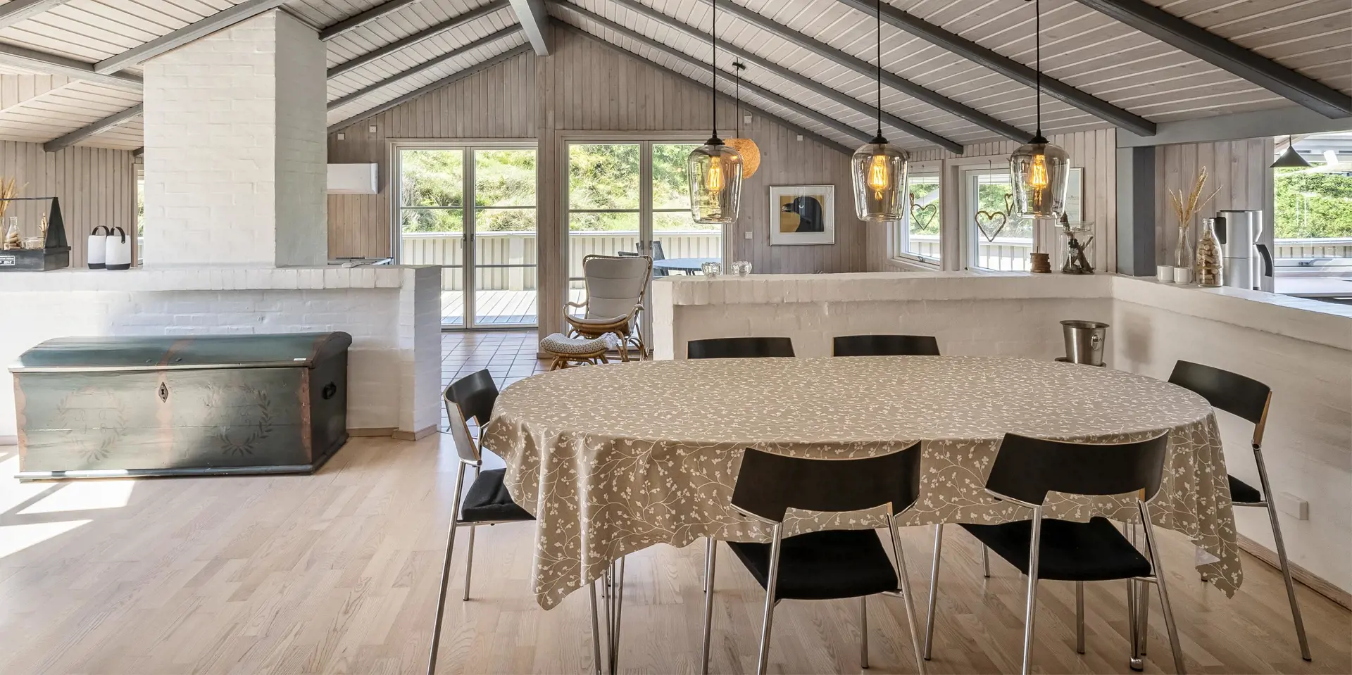 Gemütliches Energiespar-Ferienhaus für 8 Personen, gelegen auf einem schönen, ungestörten Naturgrundstück inmitten der Dünen. Der Strand ist nur ca. 150 Meter vom Ferienhaus entfernt. Einkaufsmöglichkeiten und gemütlichen Restaurants befinden sich fußläufig in der Nähe und auch im Ortskern von Vejers Strand.