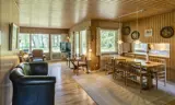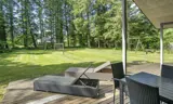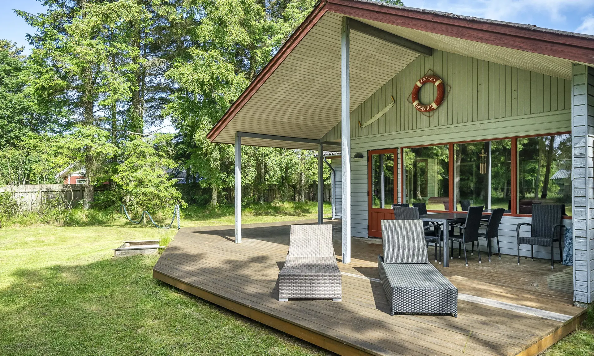 Vom Wohnzimmer aus haben Sie Zugang zu einer schönen überdachten Terrasse, auf der Sie unabhängig vom Wetter Ihren Morgenkaffee oder ein gutes Abendessen im Freien genießen können. Die Terrasse bietet mehrere gemütliche Ecken, in denen Sie entspannen und den Blick auf den großen, ungestörten Garten genießen können.