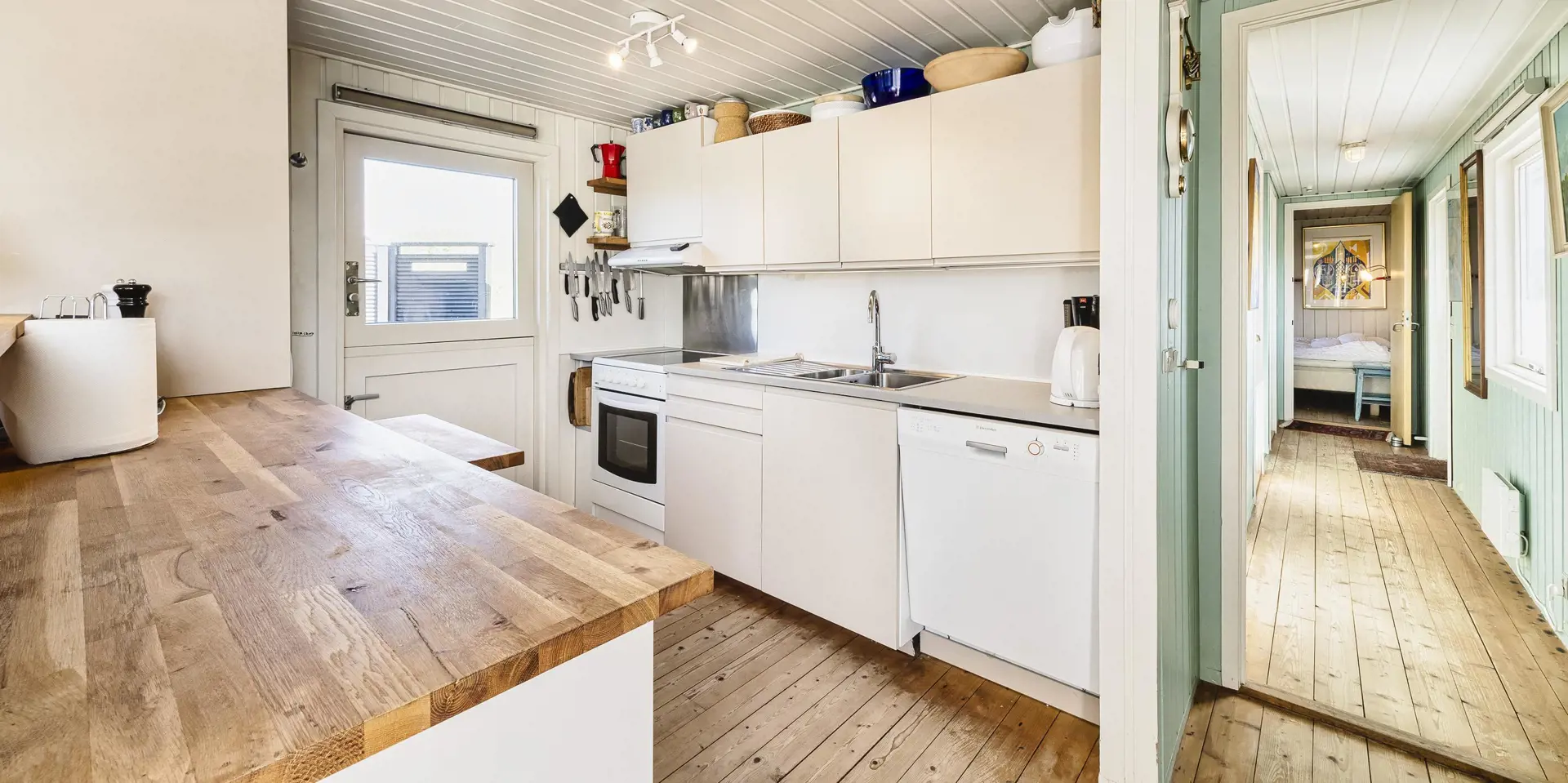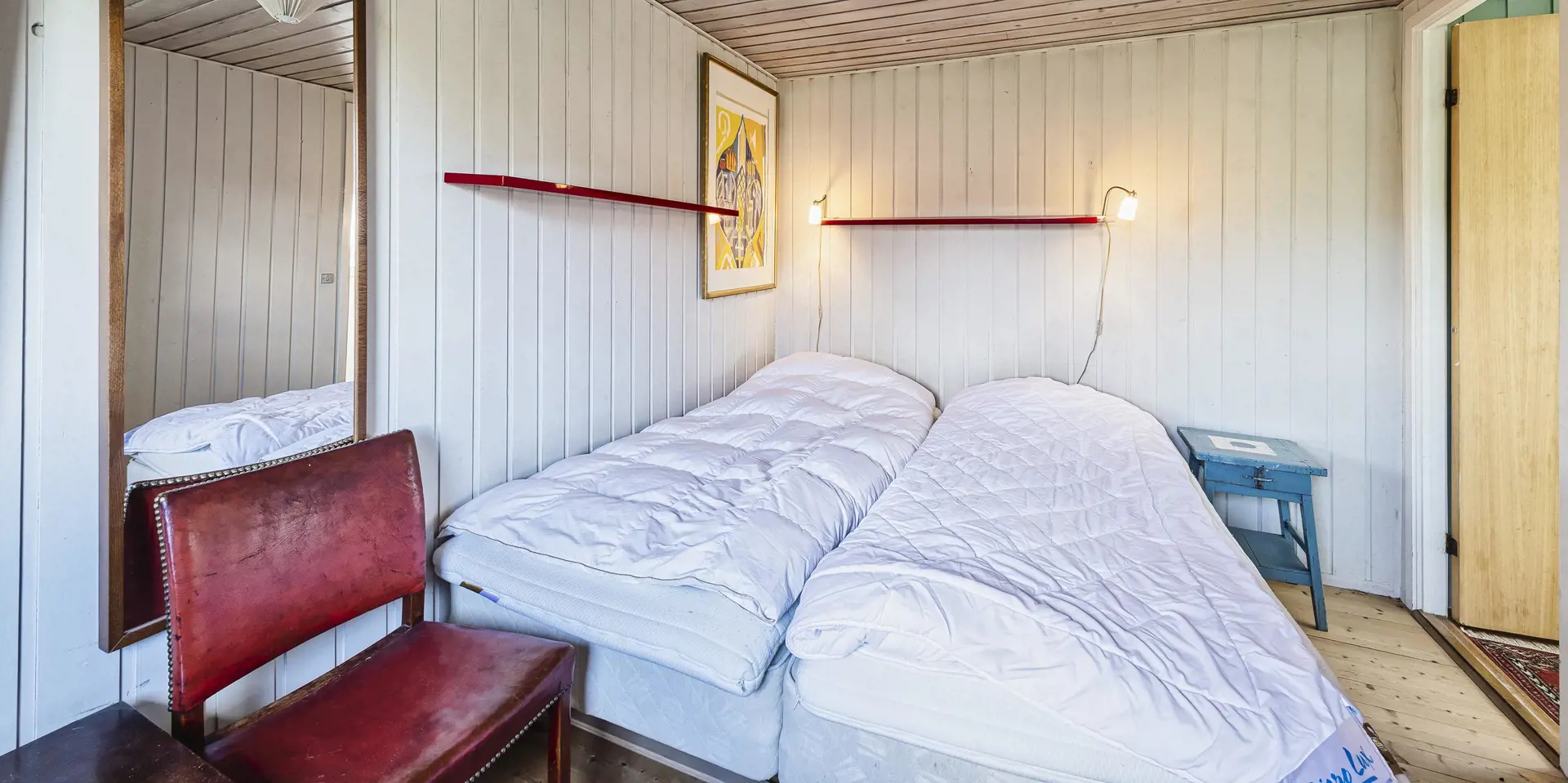 Das Wohnzimmer verfügt über Holzfüße und einen Kamin. Über eine Satellitenschüssel können Sie deutsche Fernsehprogramme empfangen, aber auch dänische Fernsehprogramme sind empfangbar. Chromecast. Der Wohn- und Essbereich führt zum großzügigen Wintergarten und bietet einen fantastischen Blick auf das Meer. Hier ist eine Infrarotheizung. Darüber hinaus gibt es im Wohnzimmer und in der Küche eine Wärmepumpe. Mit dieser Wärmepumpe haben Sie die Möglichkeit, die Stromkosten zu senken, da die Wärmepumpe energiesparend ist. Die offene Küche ist mit Elektroherd und Backofen, Geschirrspüler, Mikrowelle und Kühlschrank mit kleinem Gefrierfach ausgestattet. Die zum Haus gehörende Waschmaschine befindet sich ebenfalls in der Küchenabteilung. Das Badezimmer verfügt über eine Toilette, ein Waschbecken und eine Dusche. Fußbodenheizung und ein normaler Heizkörper sind vorhanden. Die beiden Schlafzimmer sind jeweils mit einem Einzelbett ausgestattet. Darüber hinaus verfügt das Ferienhaus über Internetanschluss (W-Lan/1000 Mbit) und wurde 1974 erbaut. Ace Mind max. 3 Haustiere erlaubt. Das Rauchen ist nicht gestattet.
