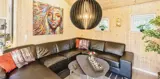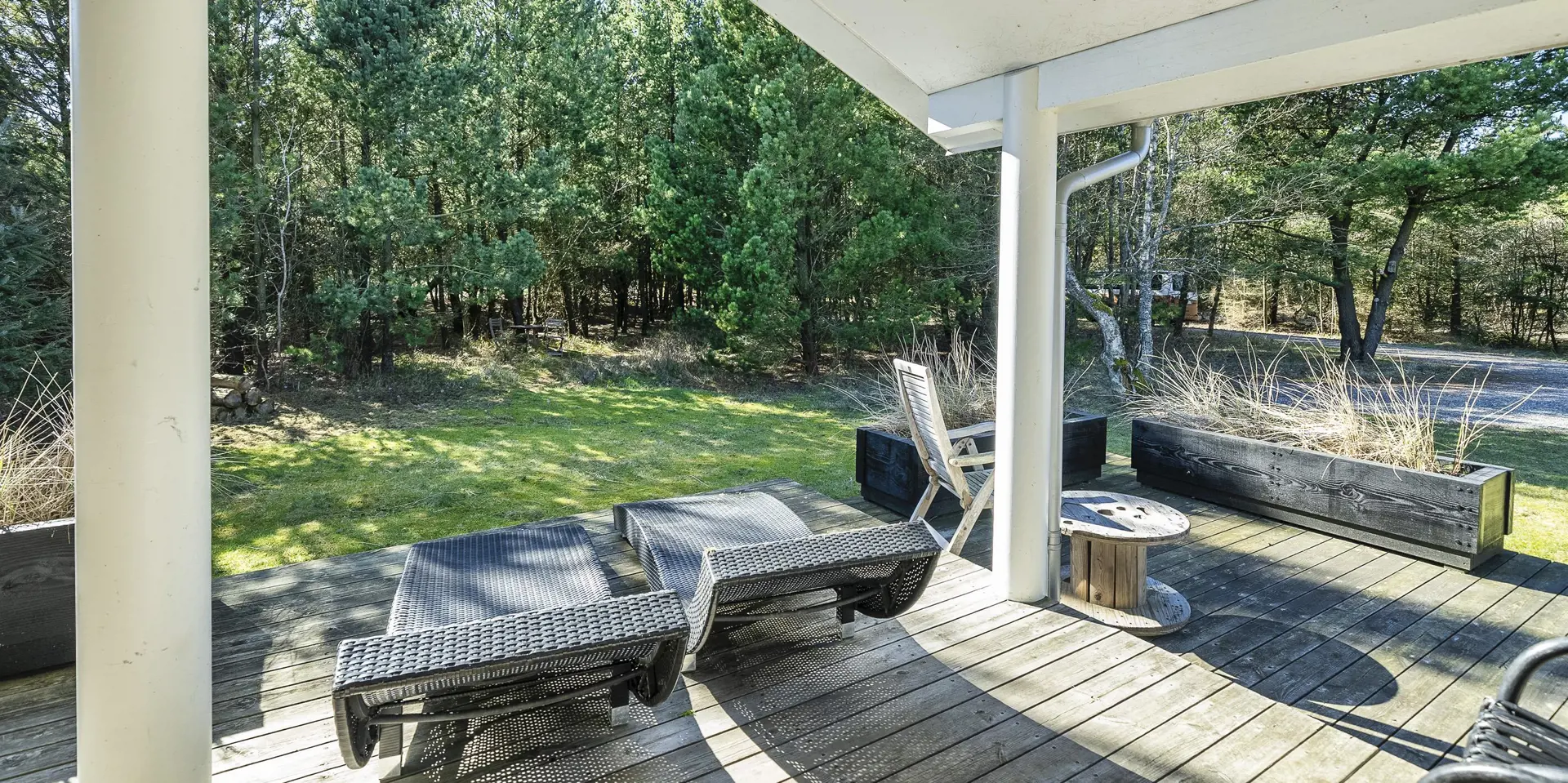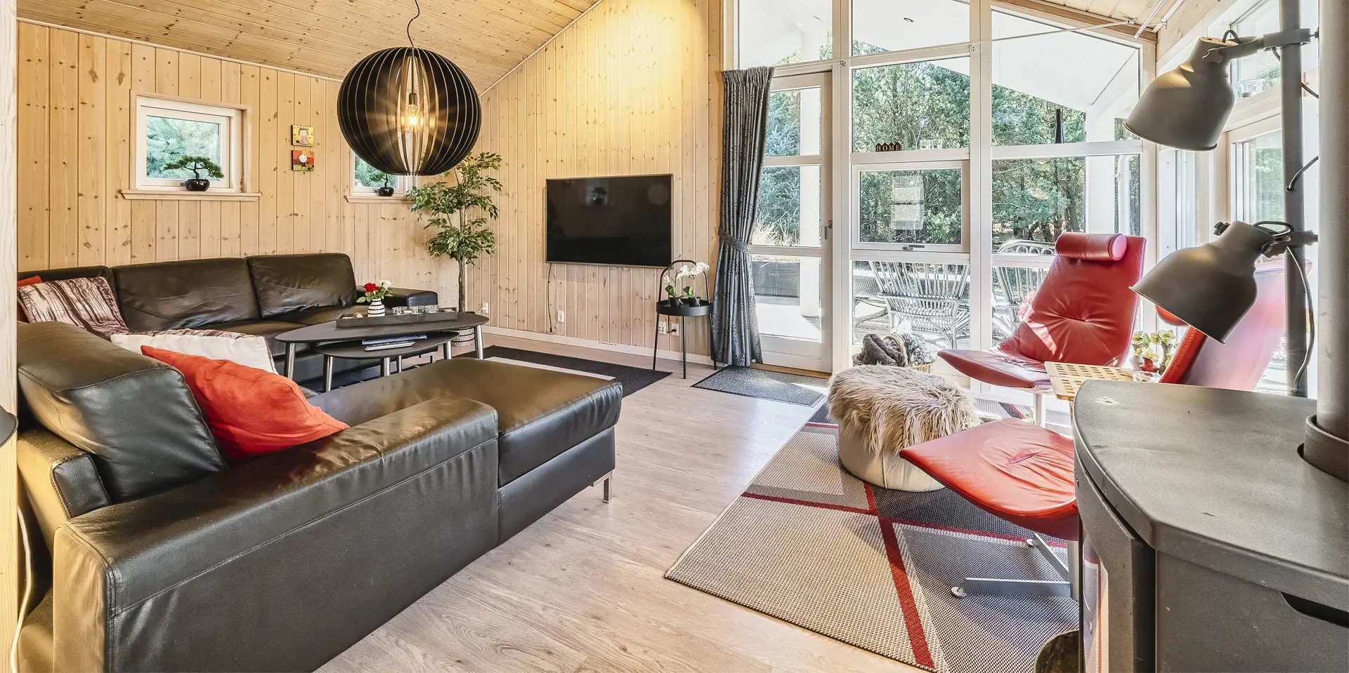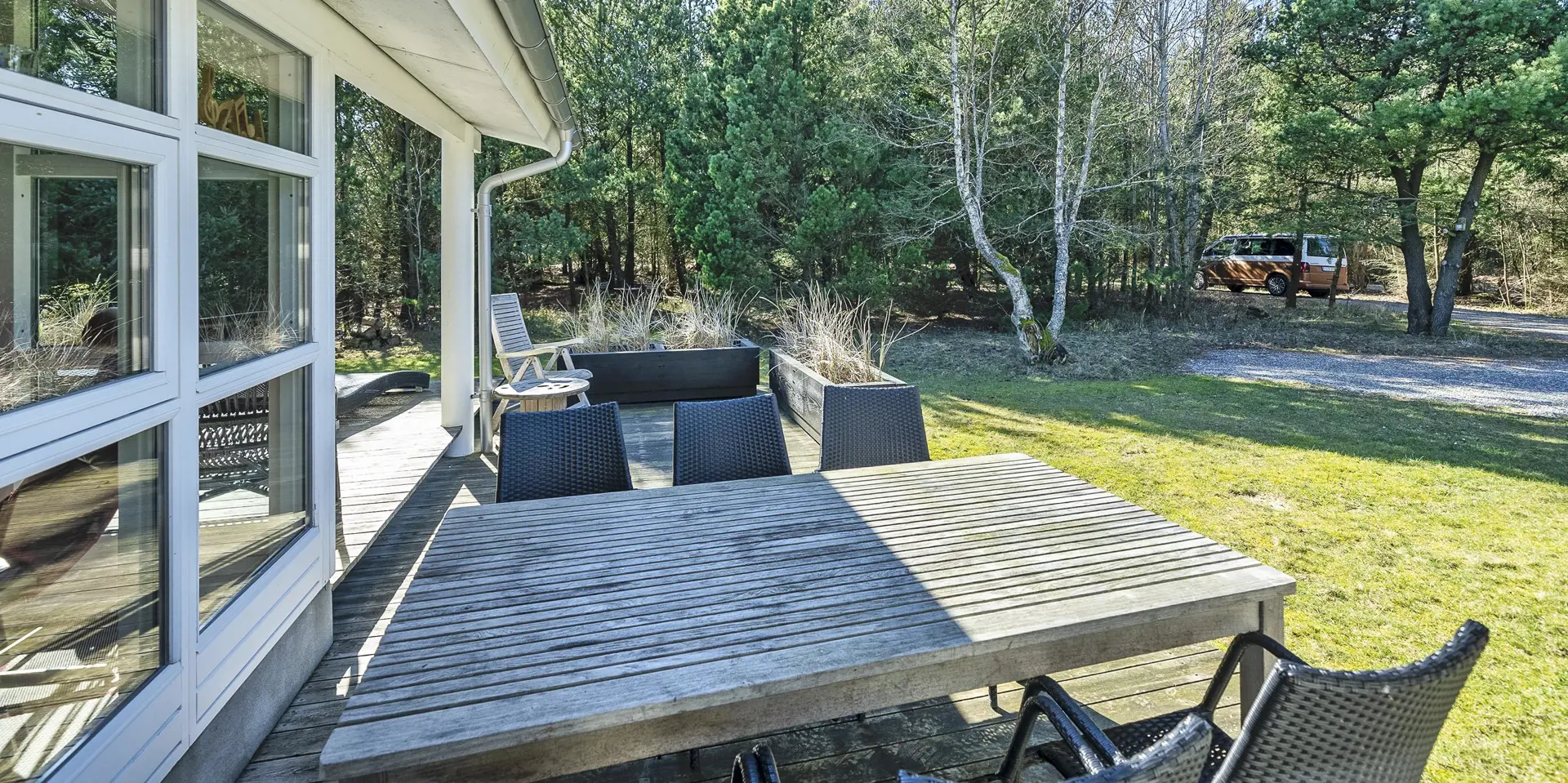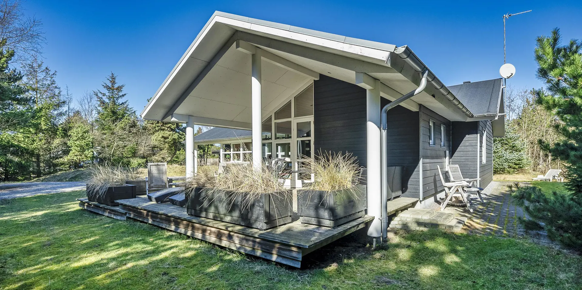 Modernes und gut ausgestattetes Ferienhaus für 6 Personen, ca. 1.500 Meter vom Strand entfernt, auf einem großen, teilweise umzäunten Grundstück gelegen. Rund um das Haus sind viele Bäume gefällt worden, so dass die Sonne wirklich hereinkommt und Sie sie auf der schönen Terrasse genießen können. Große Holzterrasse auf mehreren Ebenen und eine teilweise überdachte Terrasse. Das Haus besteht aus: Eingangshalle mit Garderobenplatz und Waschmaschine. Von der Eingangshalle aus betreten Sie die große Wohnküche mit Gewölbedecke, teils gefliest, teils mit Parkettboden. Helle und freundliche Eckküche mit Backofen, Cerankochfeld, Geschirrspüler, Mikrowelle und Kühl-/Gefrierschrank. Großes Esszimmer mit viel Tageslicht durch 2 Oberlichter. Von der Küche-Esszimmer gibt es 2 Dachböden. Vom Esszimmer geht man eine Stufe hinauf in ein gemütliches Wohnzimmer mit Holzofen, TV mit TV-Kanälen über Stofa (kleines Paket). Smart TV. Drahtloses Internet (50/50). Playstation 3 und verschiedene Spiele. Wärmepumpe. Es gibt 3 Schlafzimmer: DS + DS + DS + DS. Hauptbadezimmer mit Dusche/WC, Sauna und Whirlpool. Gästetoilette mit Dusche. 2 kleine Hunde mit einer Rückenhöhe von max. 40 cm sind erlaubt - oder ein großer Hund. Katzen sind nicht erlaubt! Fahrradschuppen und mehr auf dem Grundstück. Baujahr 2009.